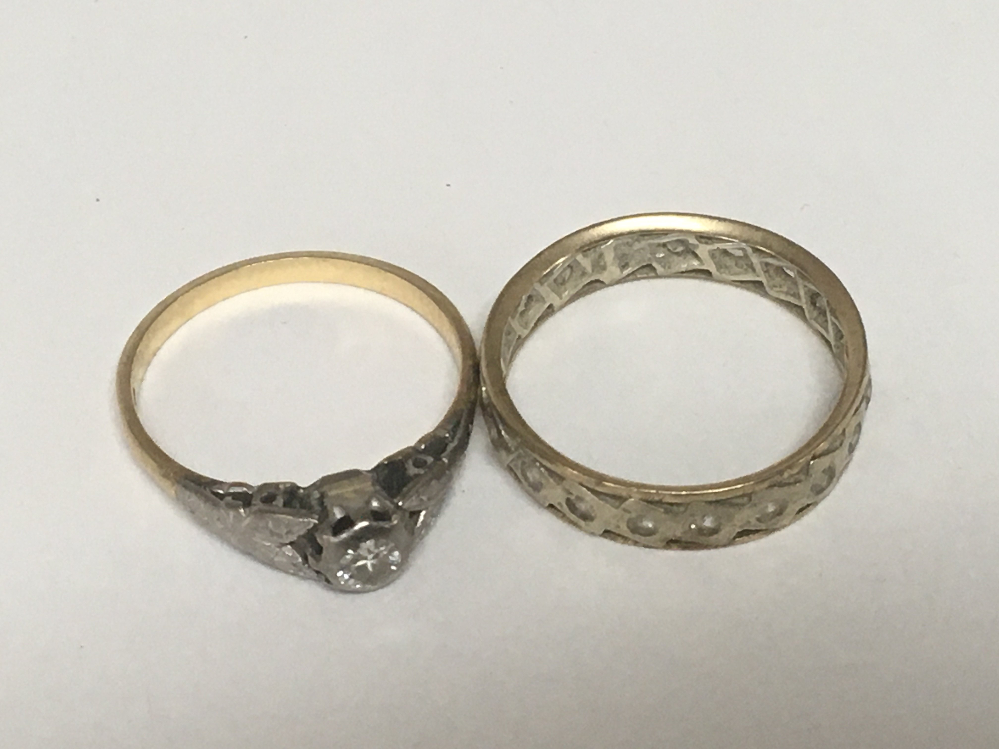 An 18carat gold ring set with a small diamond weight 2g and a gold eternity ring weight 2g. (2)
