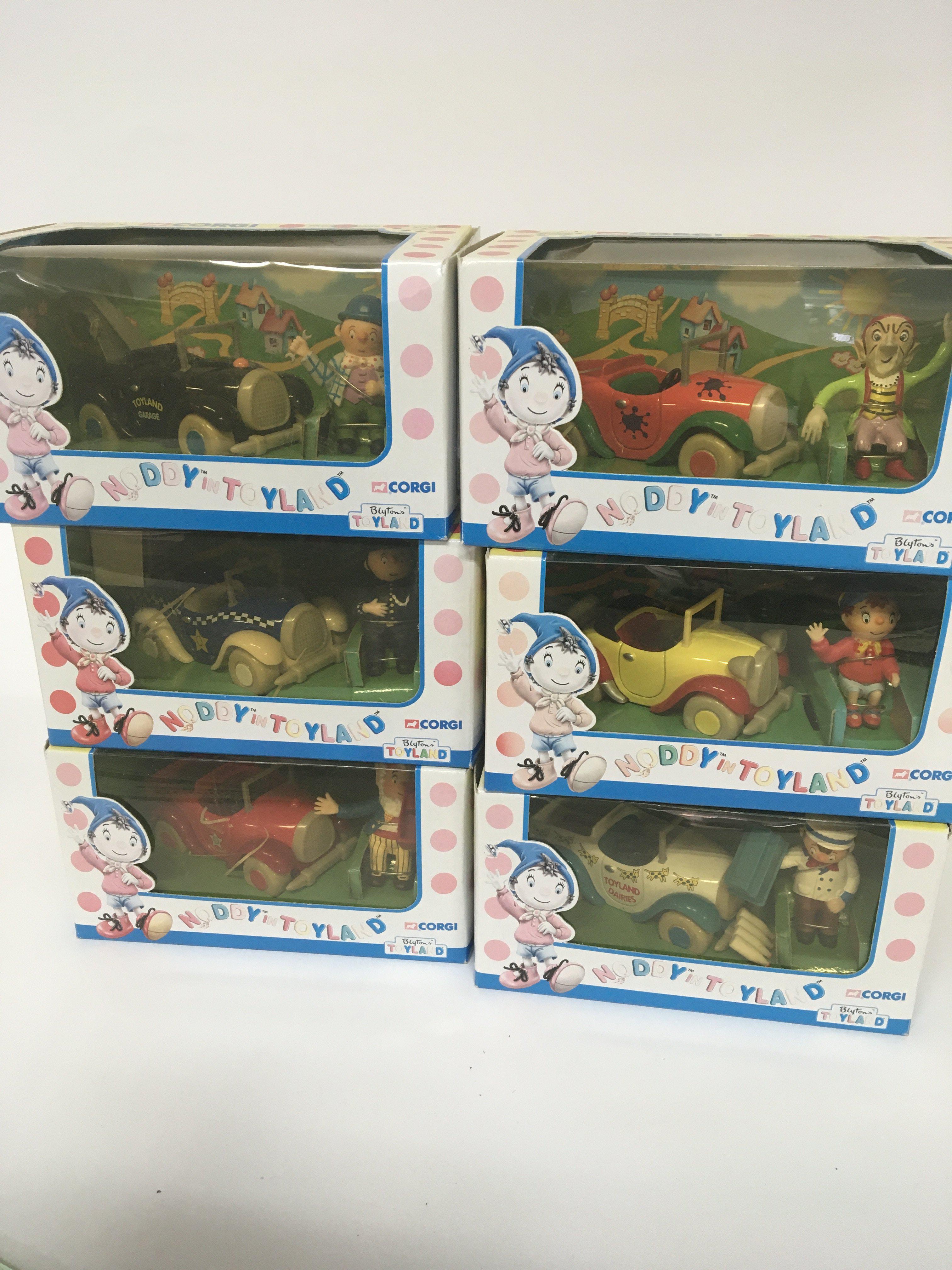 A collection of six boxed Corgi Noddy in Toyland figures with cars.
