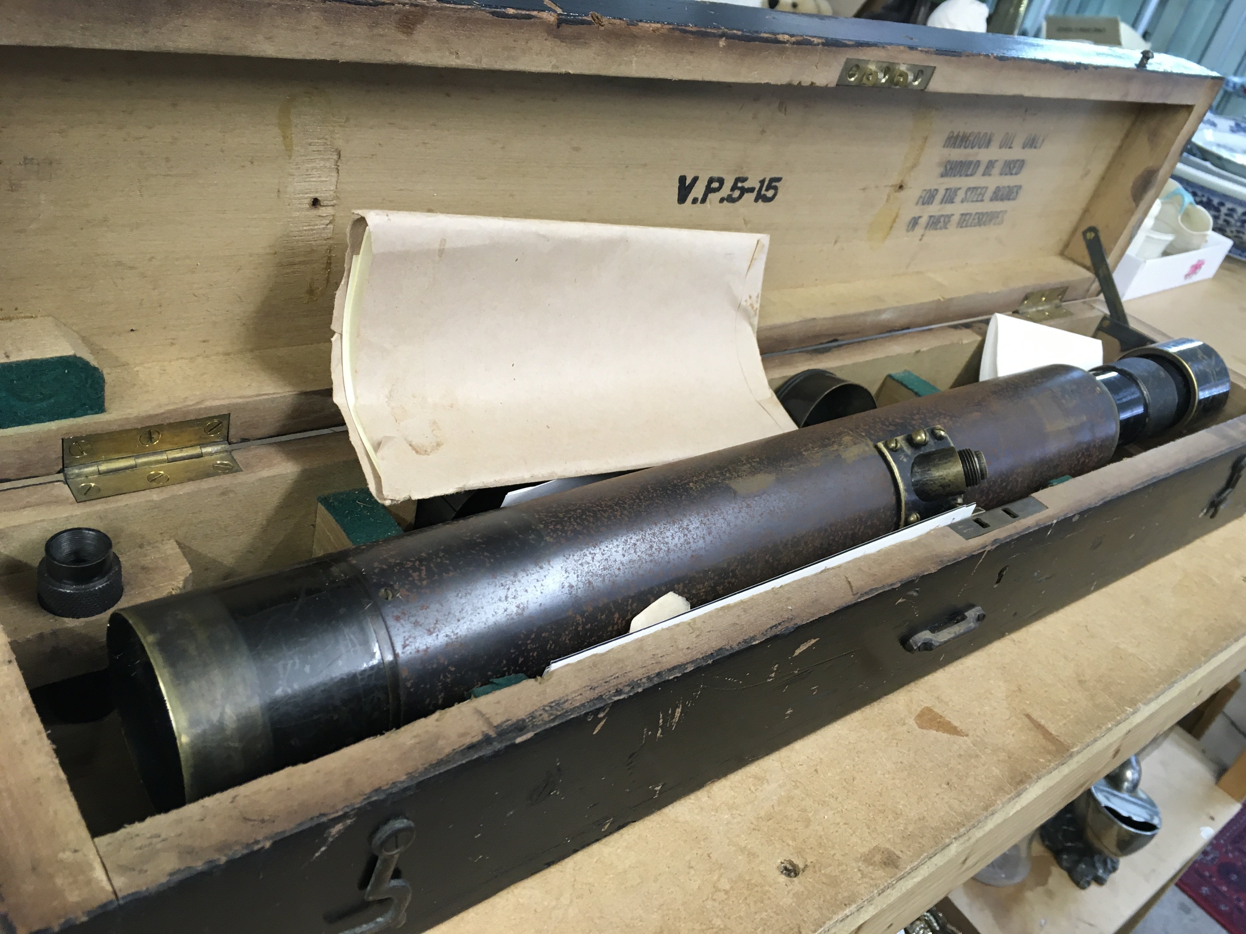A Cased WW1 Naval Gunsight Telescope sight by W Ottway & Co Ealing. V P 5 to15 Day & Night Sight 1908. Serial no 1064