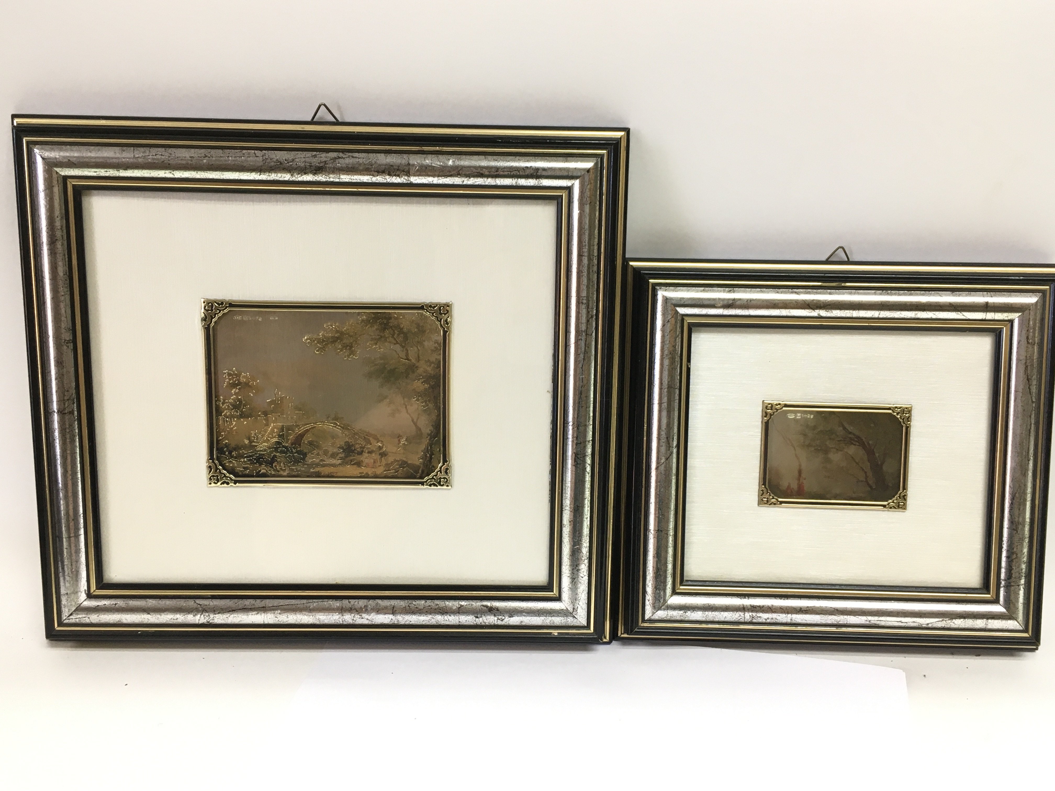 Two framed Italian silver pictures, dimensions 22.5x20.5cm & 30cmx26.5cm