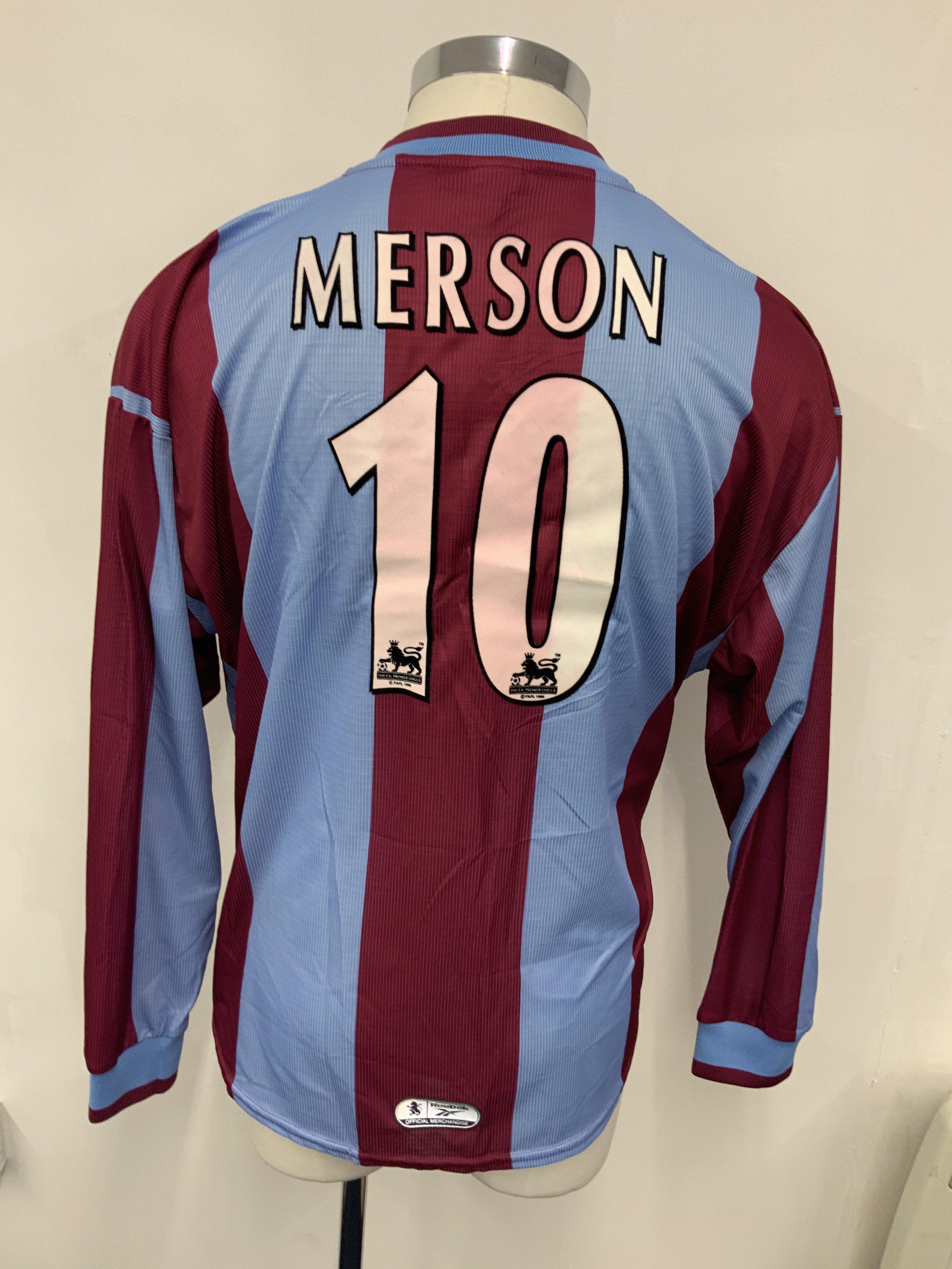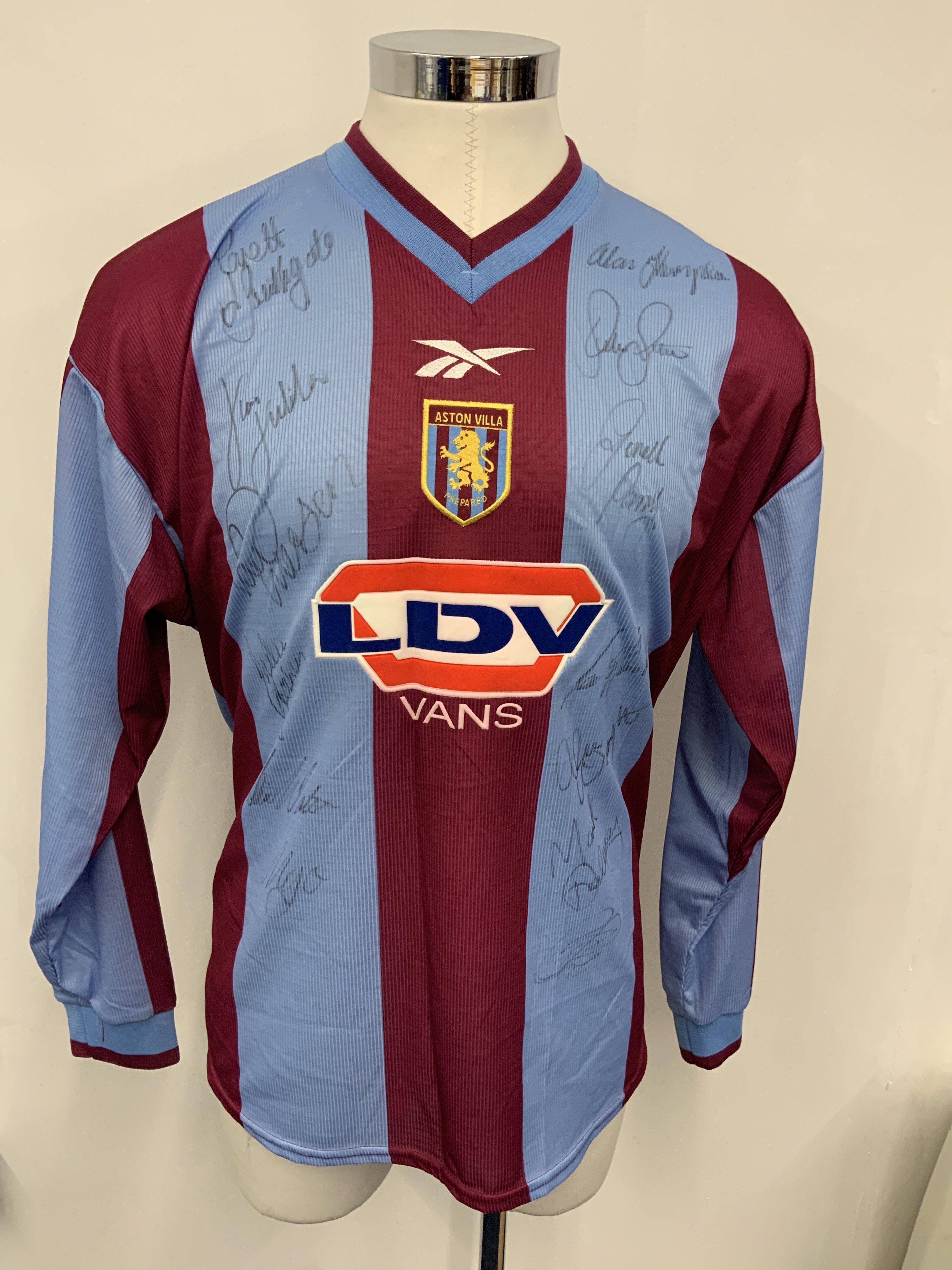 1999 - 2000 Aston Villa Signed Football Shirt: Long sleeve number 10 Merson shirt without sleeve badging. Obtained by Merson and signed to front by him and 12 others including Southgate Joachim Thompson Wright and Delaney. Villa got to the FA Cup final this season.
