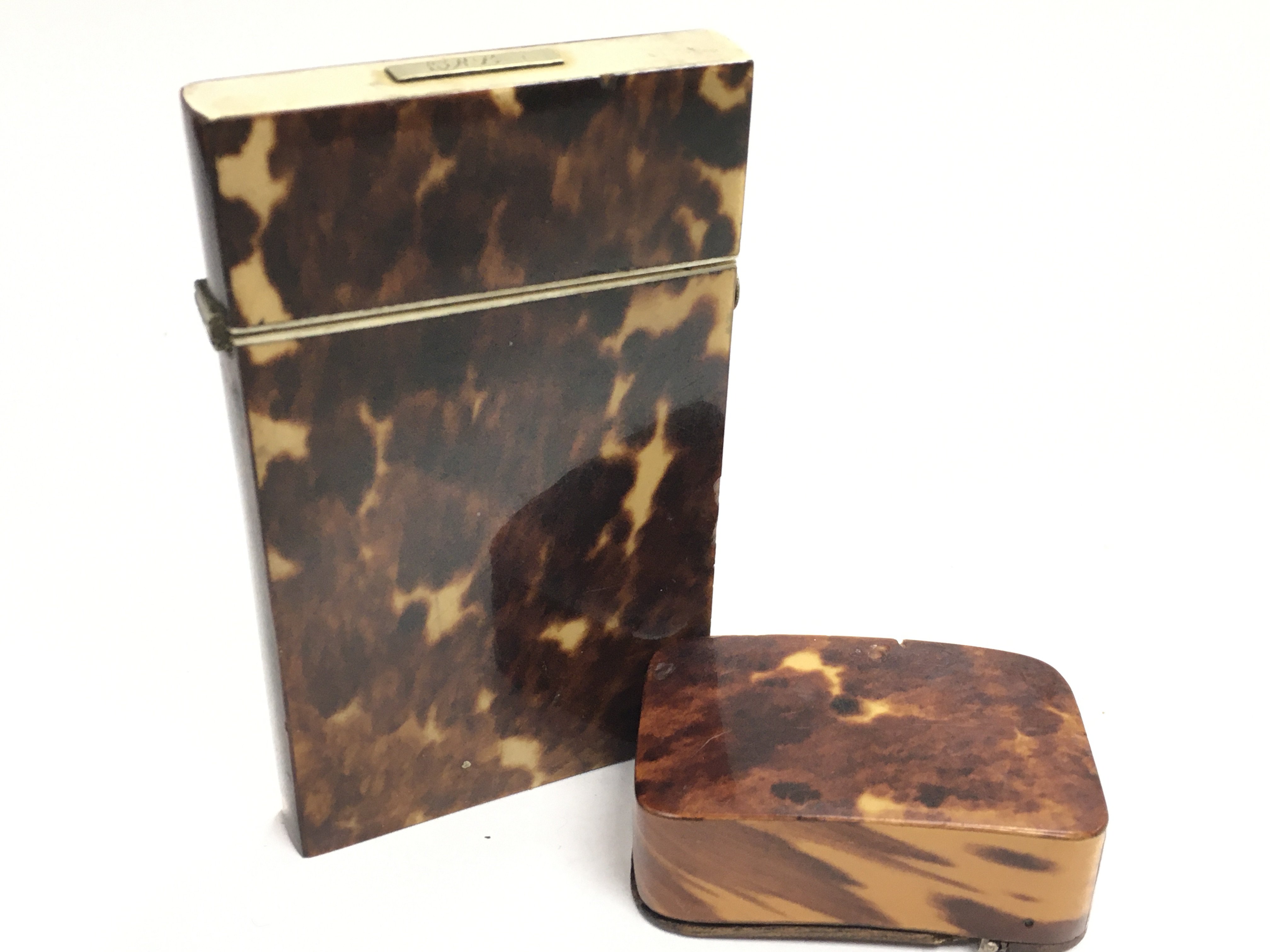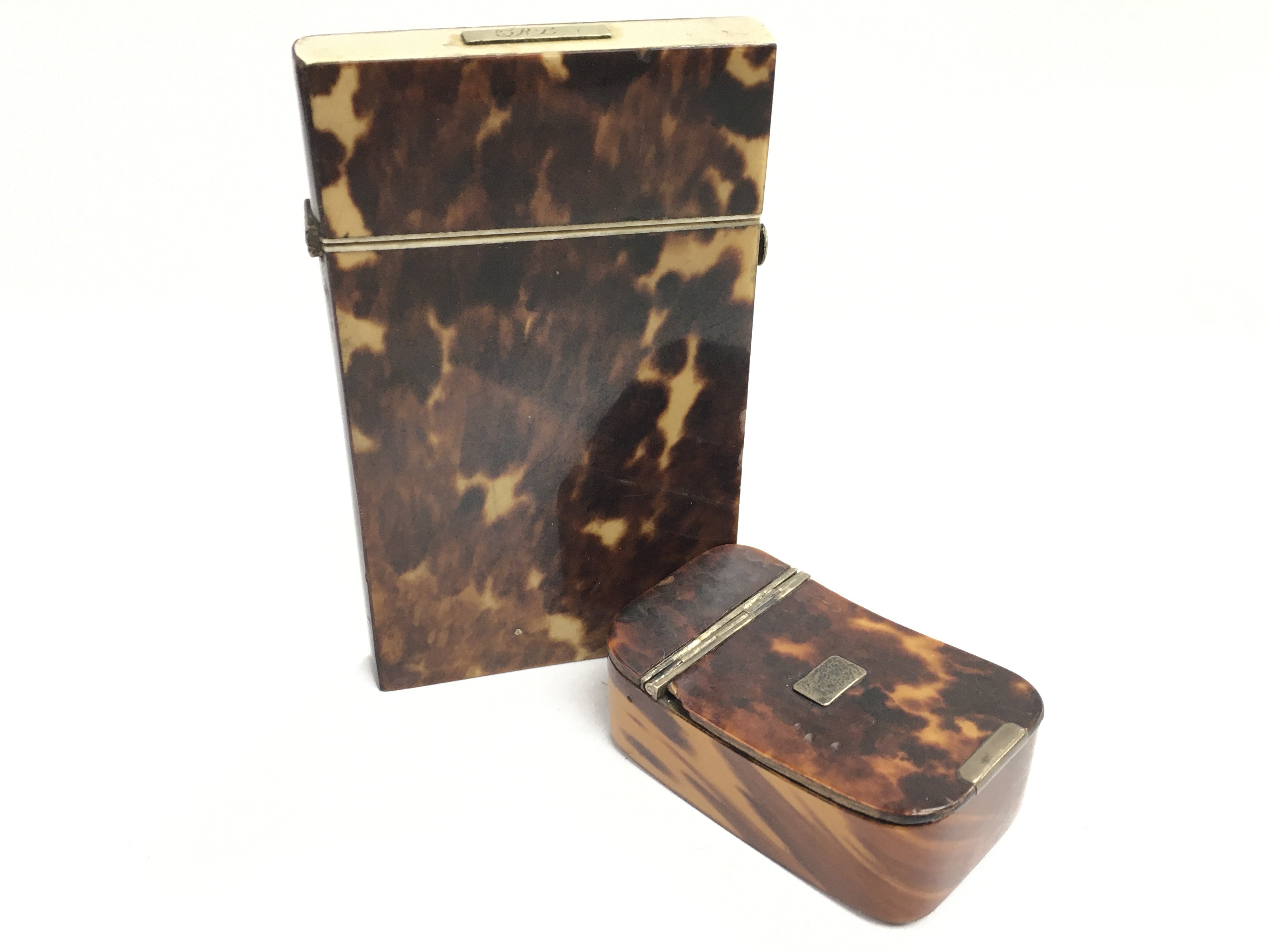 A tortoiseshell snuff box and card case, dimensions 1.7x3.3x5.2cm & 1x5.5x9cm Postage category A