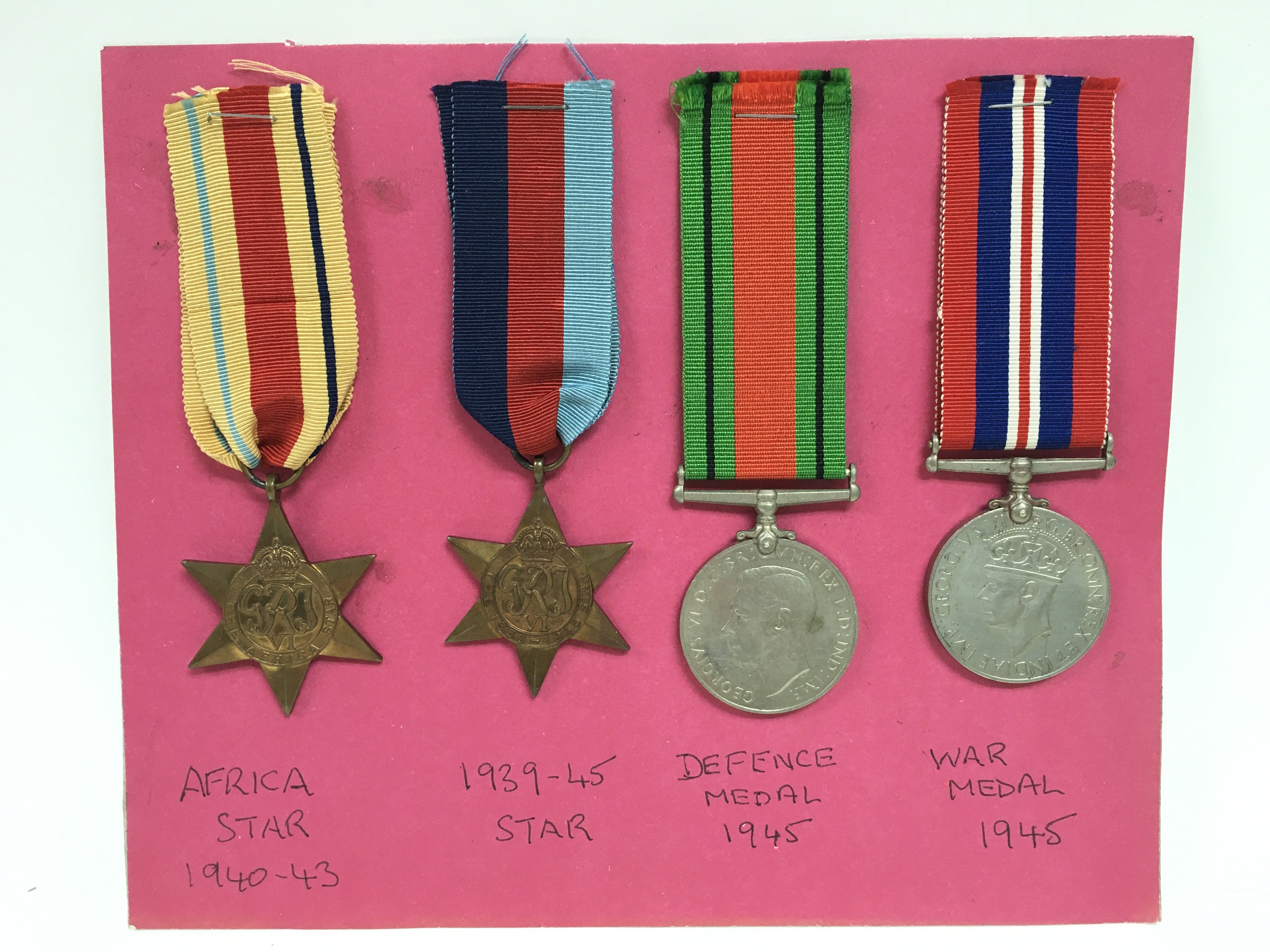 World War Two medals including an African Star, 1939-45 star, Defence and war medals. Postage category A