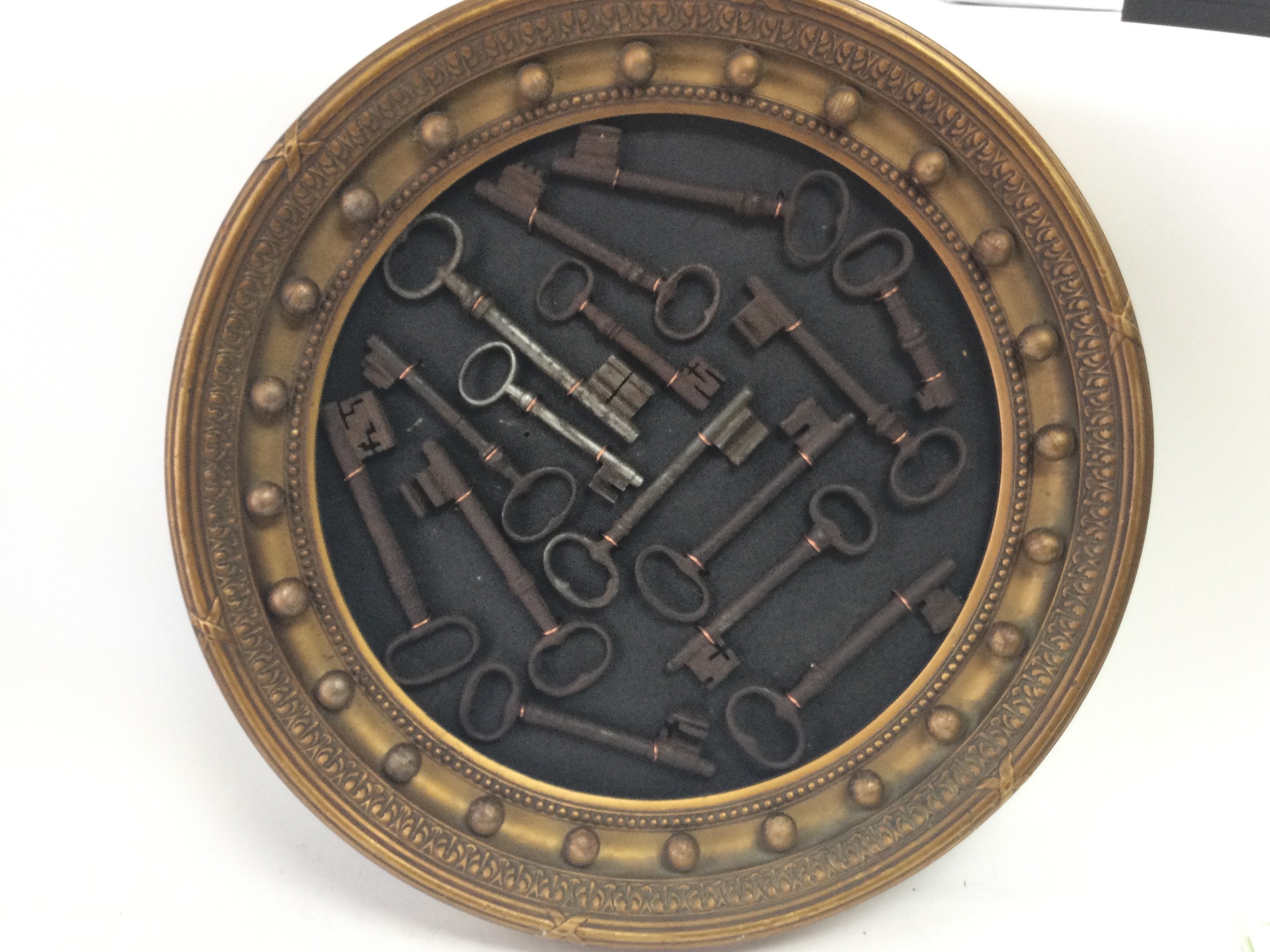 A collection of Georgian antique keys in a round gilt frame. Diameter of 42cm. Postage category C