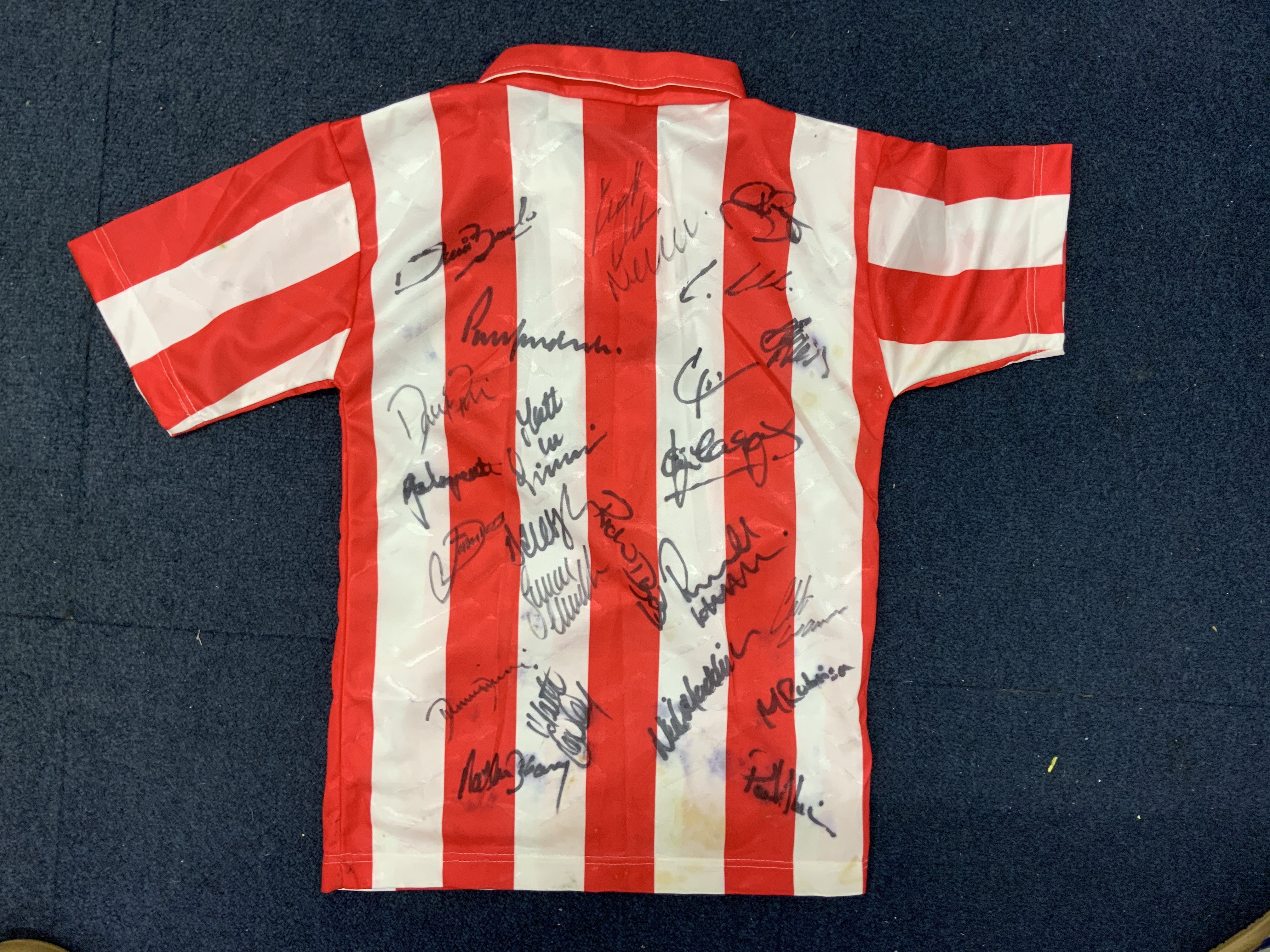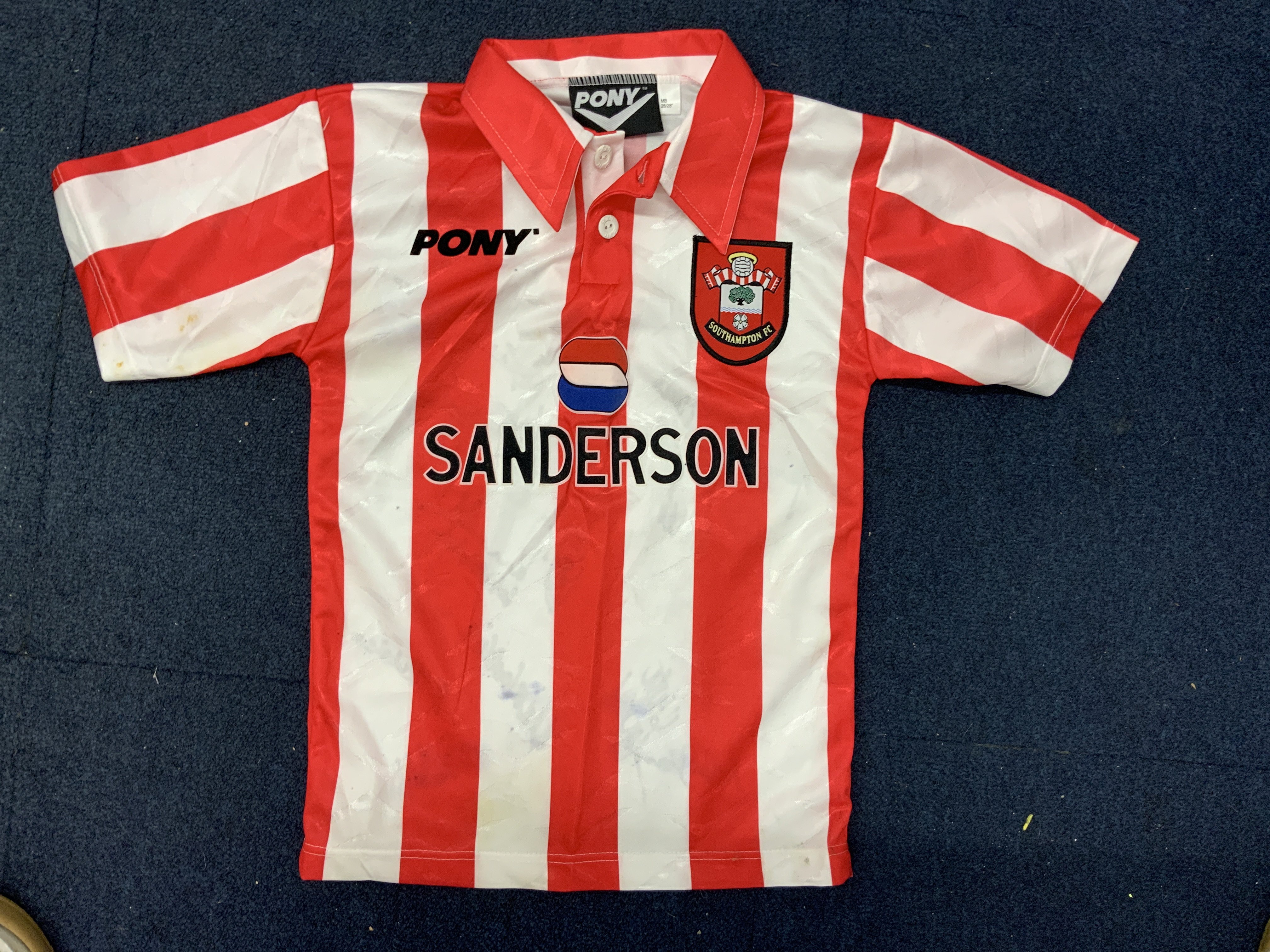 Southampton 1995 - 1997 Signed Football Shirt: Kids size home shirt signed to rear by 23 players including Le Tissier. Few small marks.