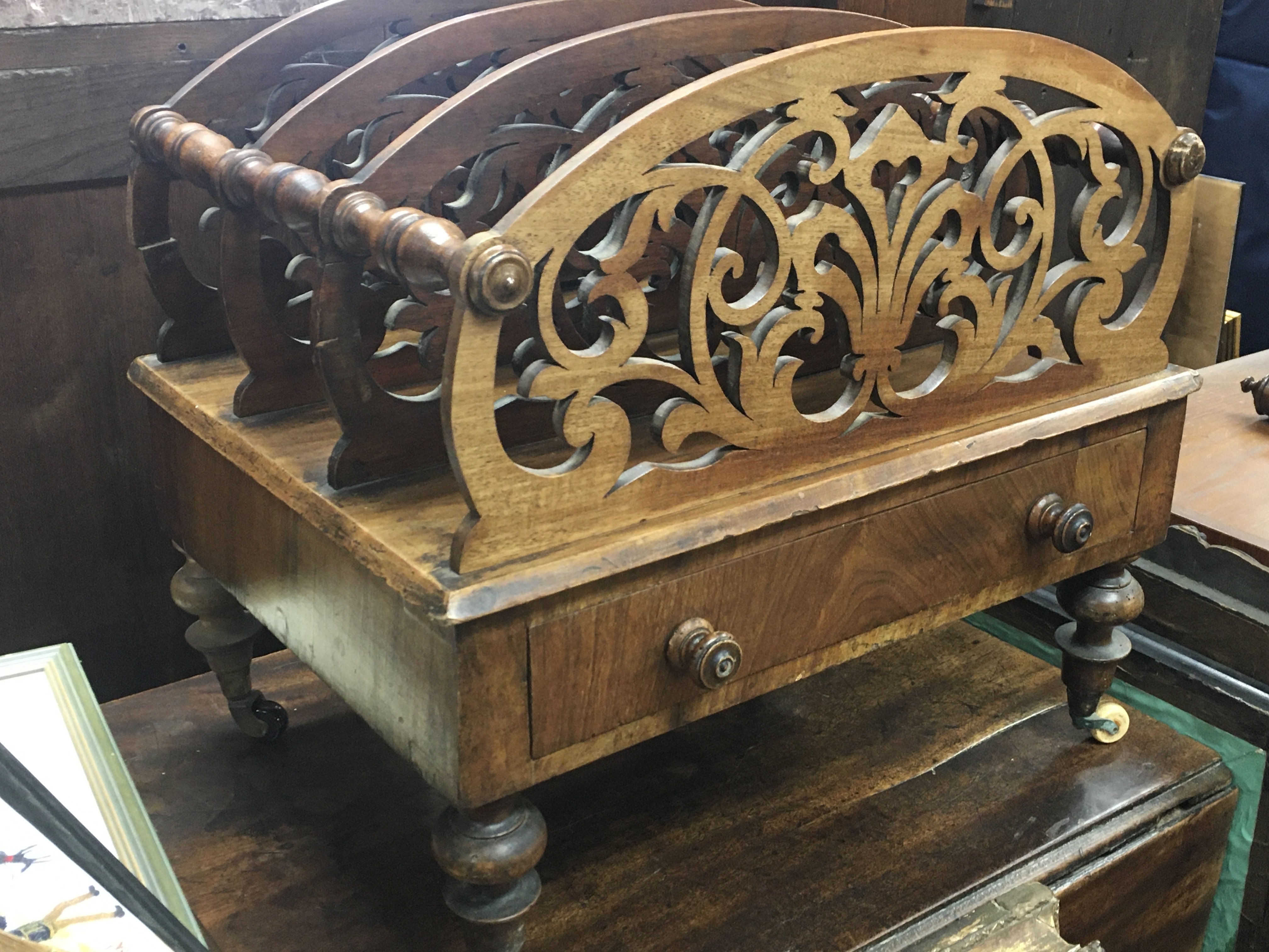 A walnut Canterbury, dimensions 36x50x46cm. This lot cannot be posted