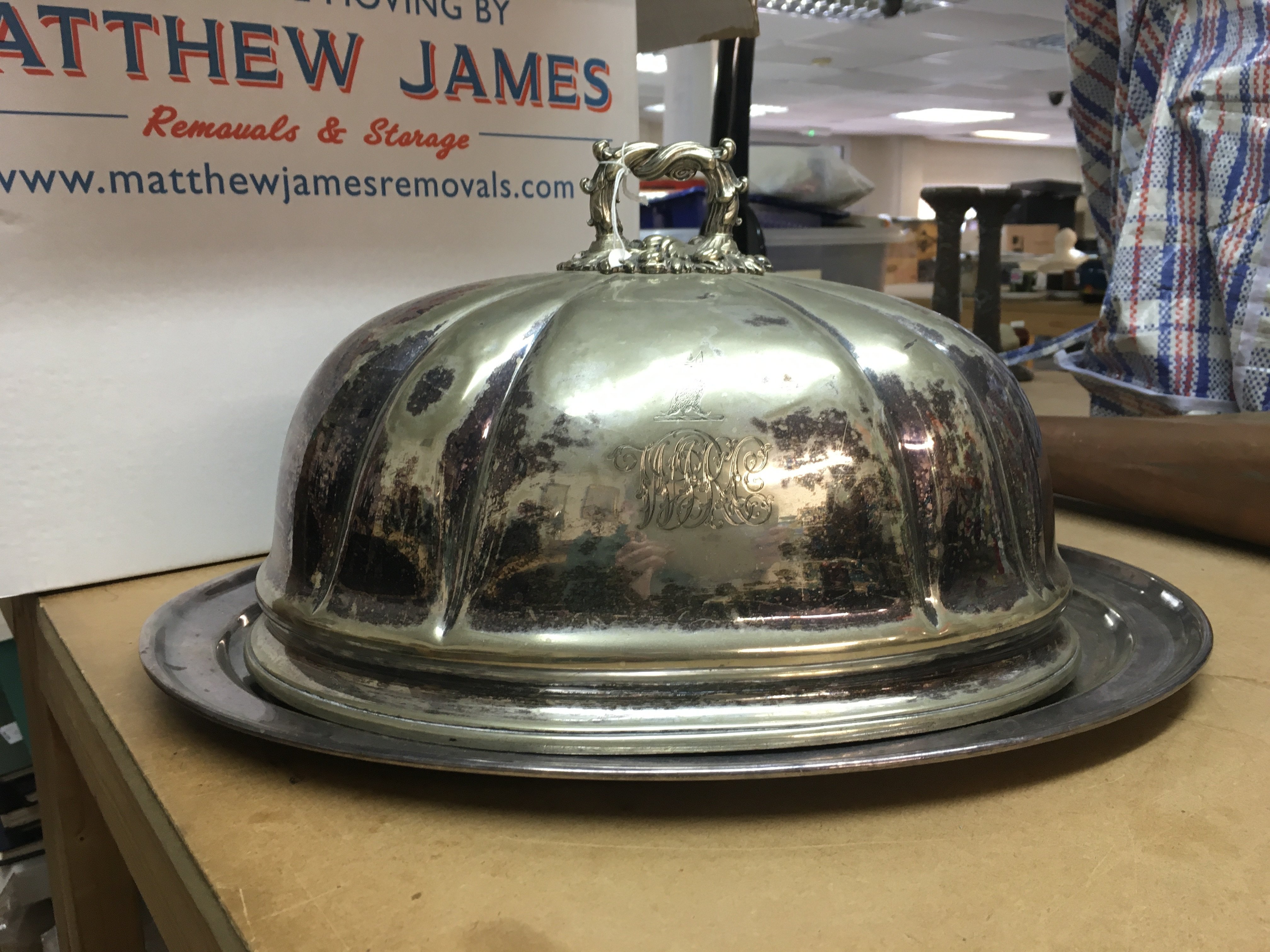 A silver plated dish with tray, 46cm wide