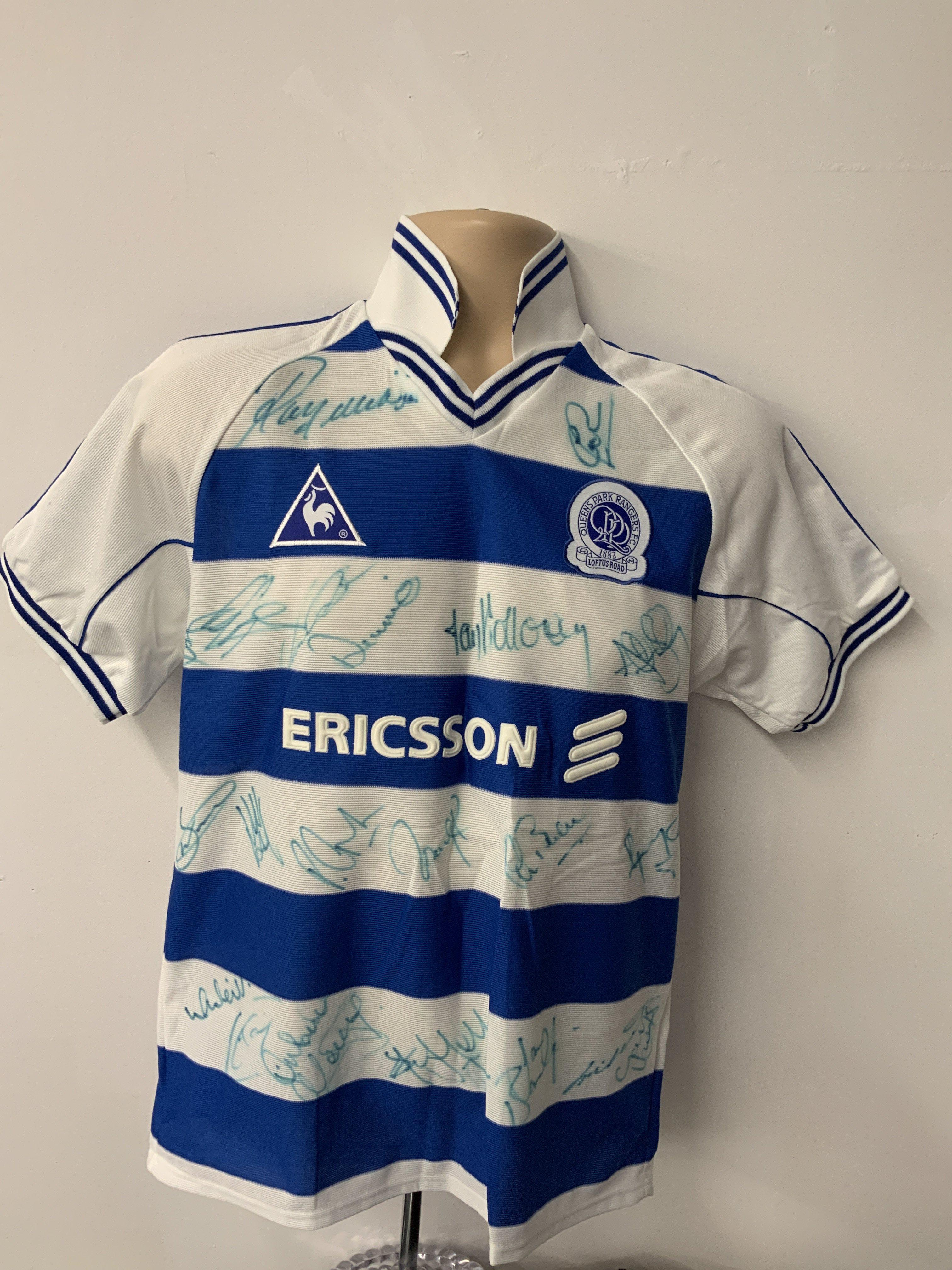 QPR Signed Home Football Shirts: 1999 - 2000 size 38/40 and 2000 - 2001 size 30/32 both multi signed to front. (2)