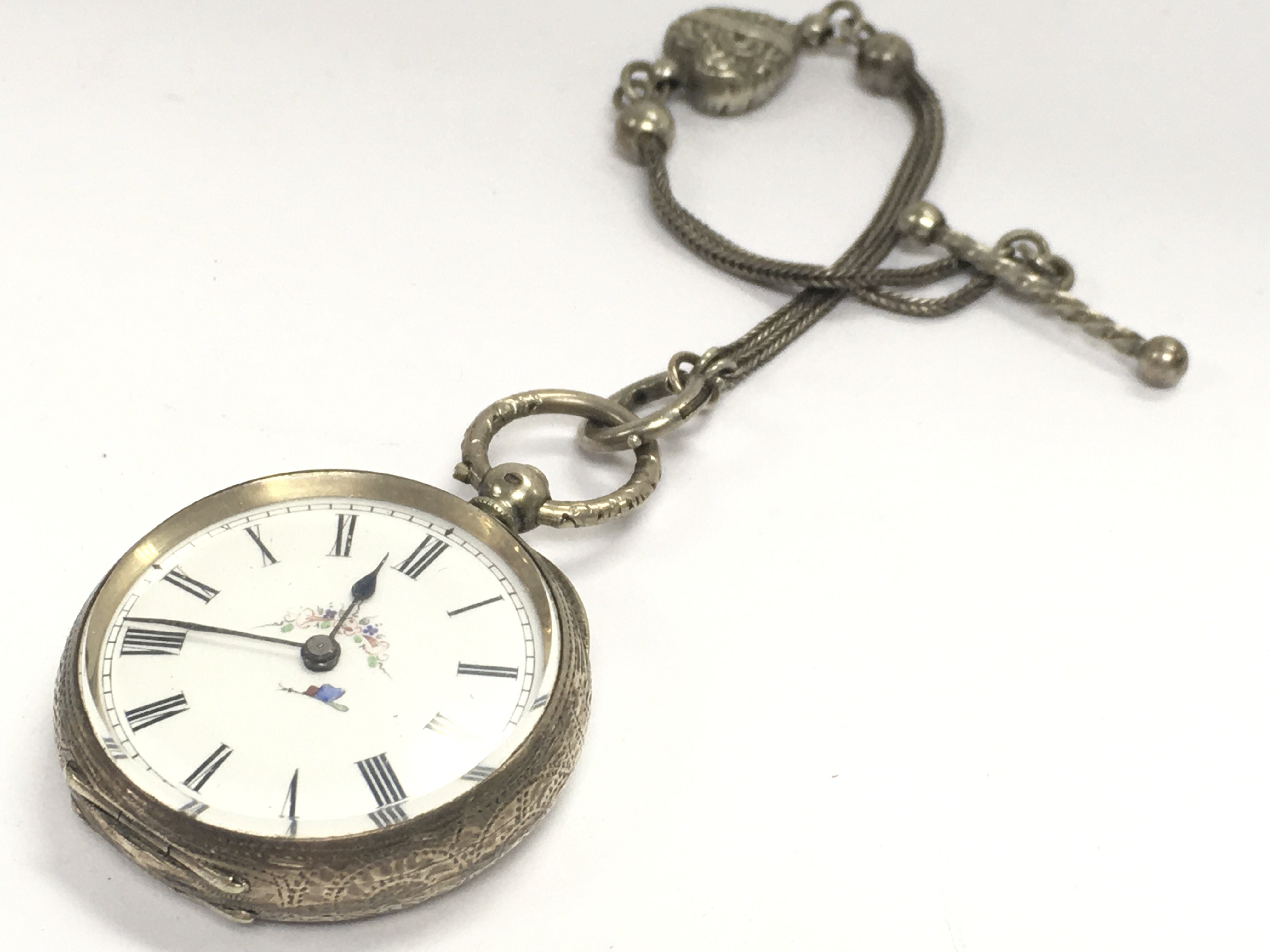 A silver pocket watch and silver albertina . This lot cannot be posted
