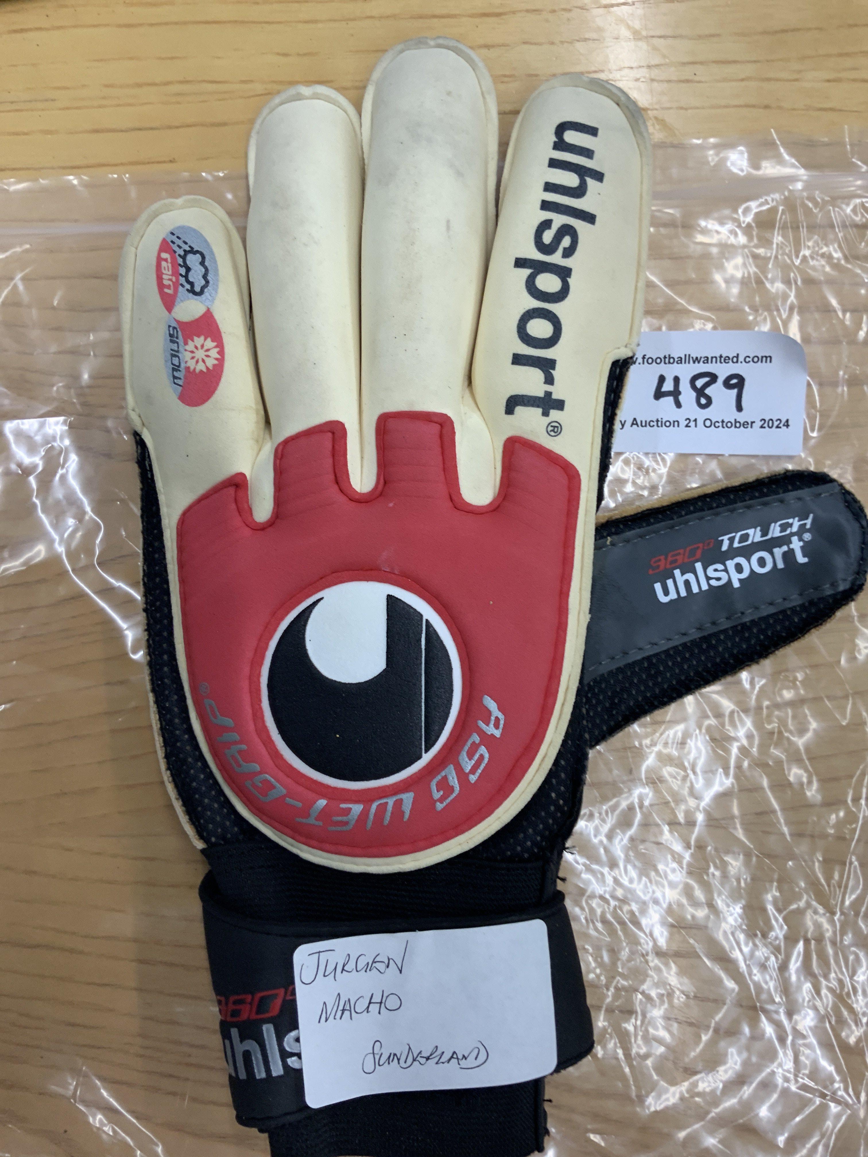 Jurgens Macho Sunderland Match Worn Football Goalkeeper Glove: One Uhlsport worn glove from his Fulham days. Signed to palm.