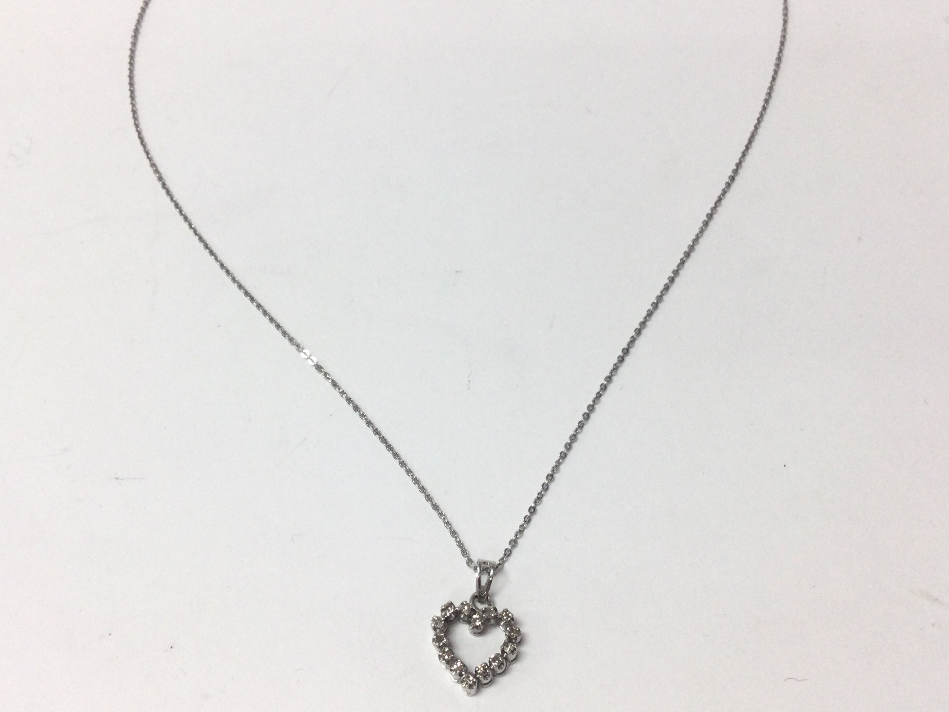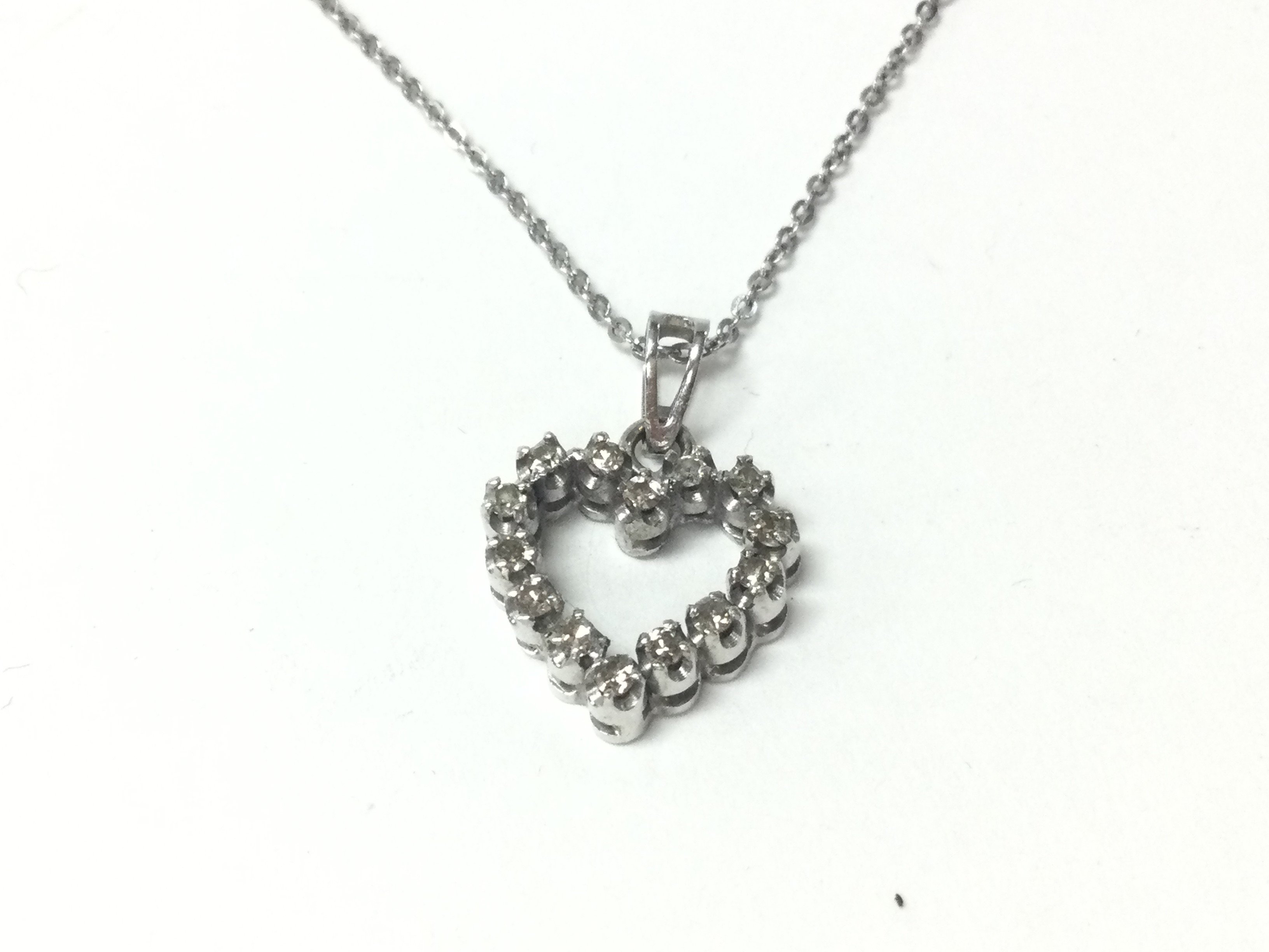 An 18ct white gold diamond set heart pendant on a silver chain. Postage A