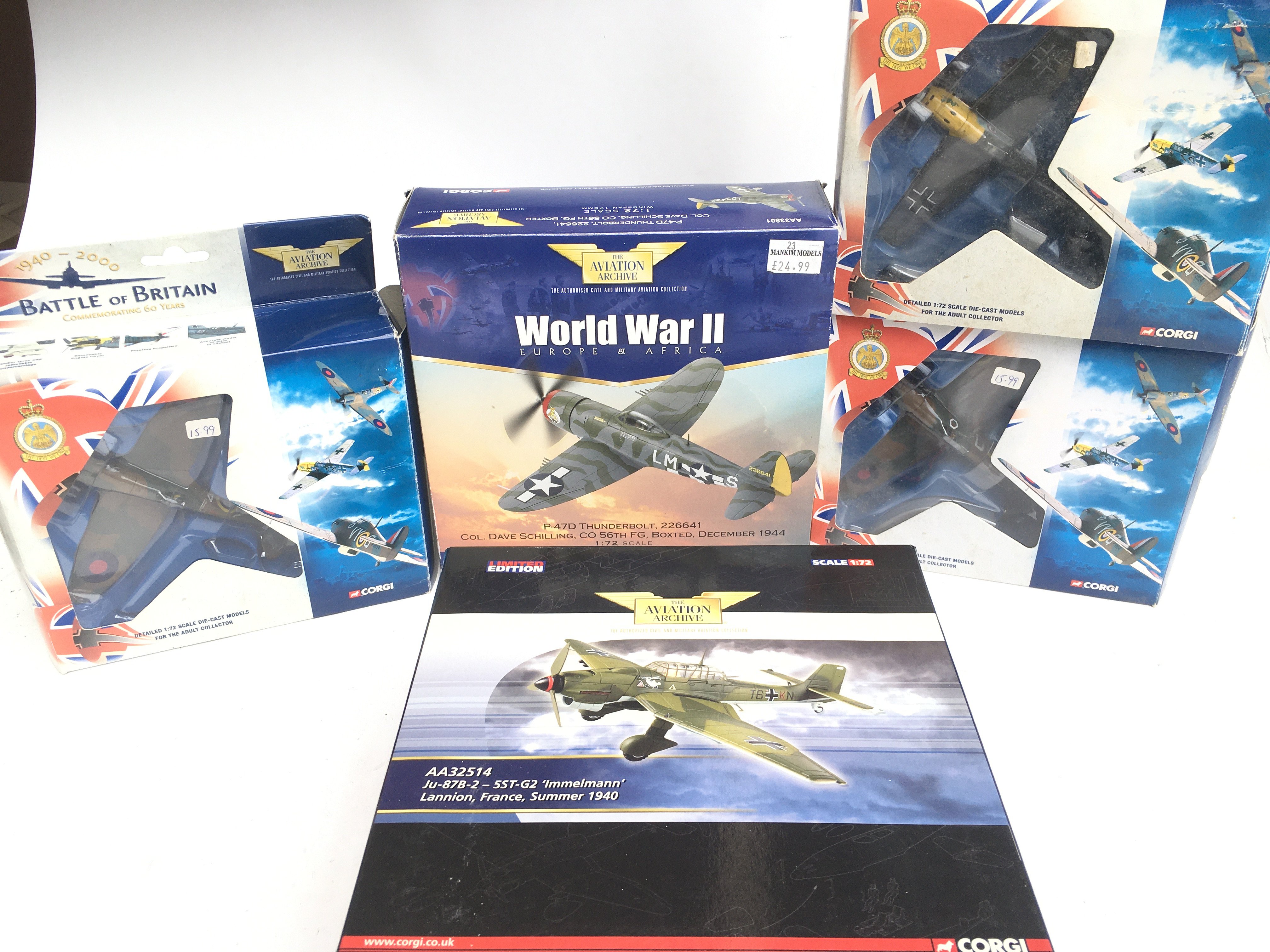 5 Boxed Corgi Aviation Archive Models including The Battle Of Britain. Etc.