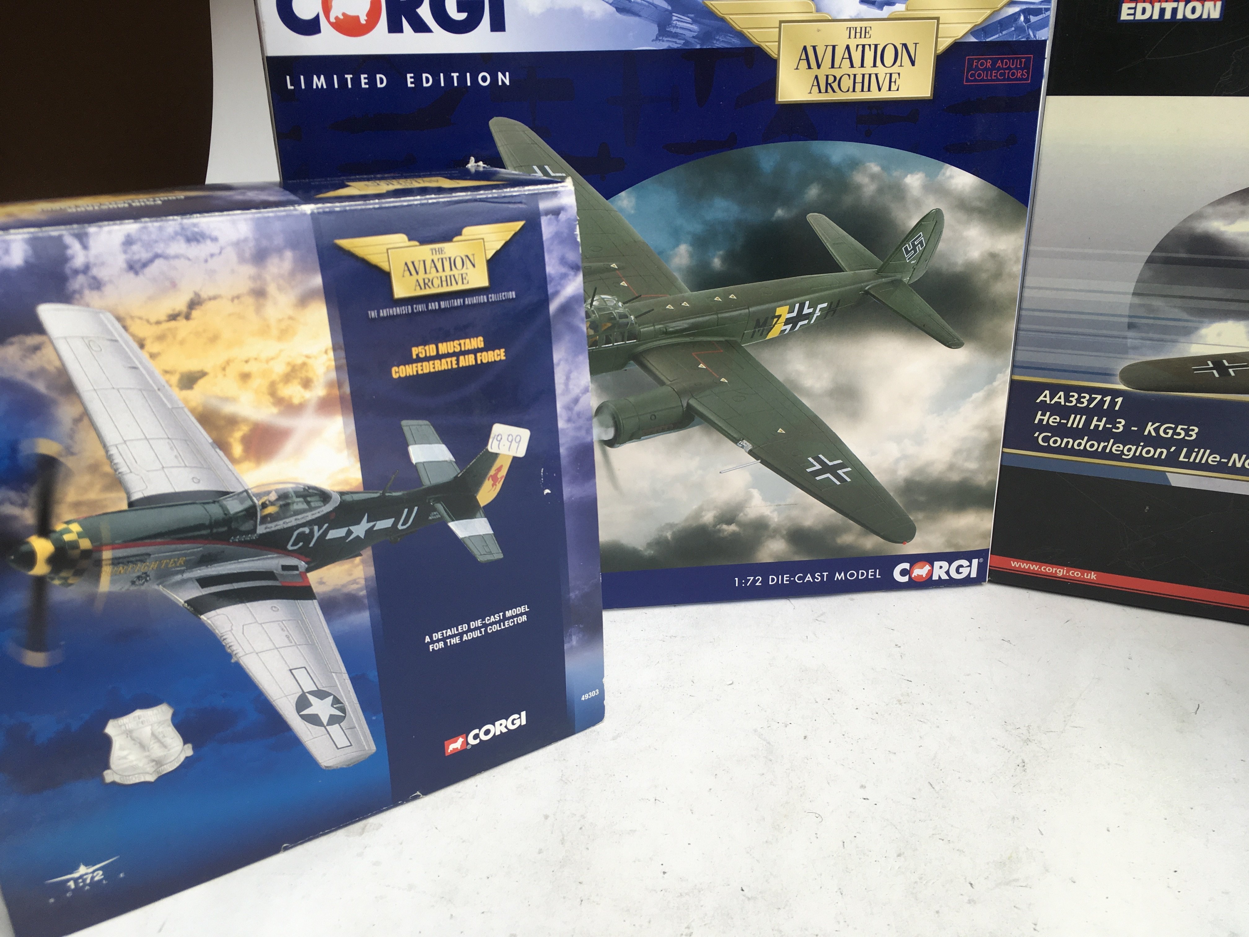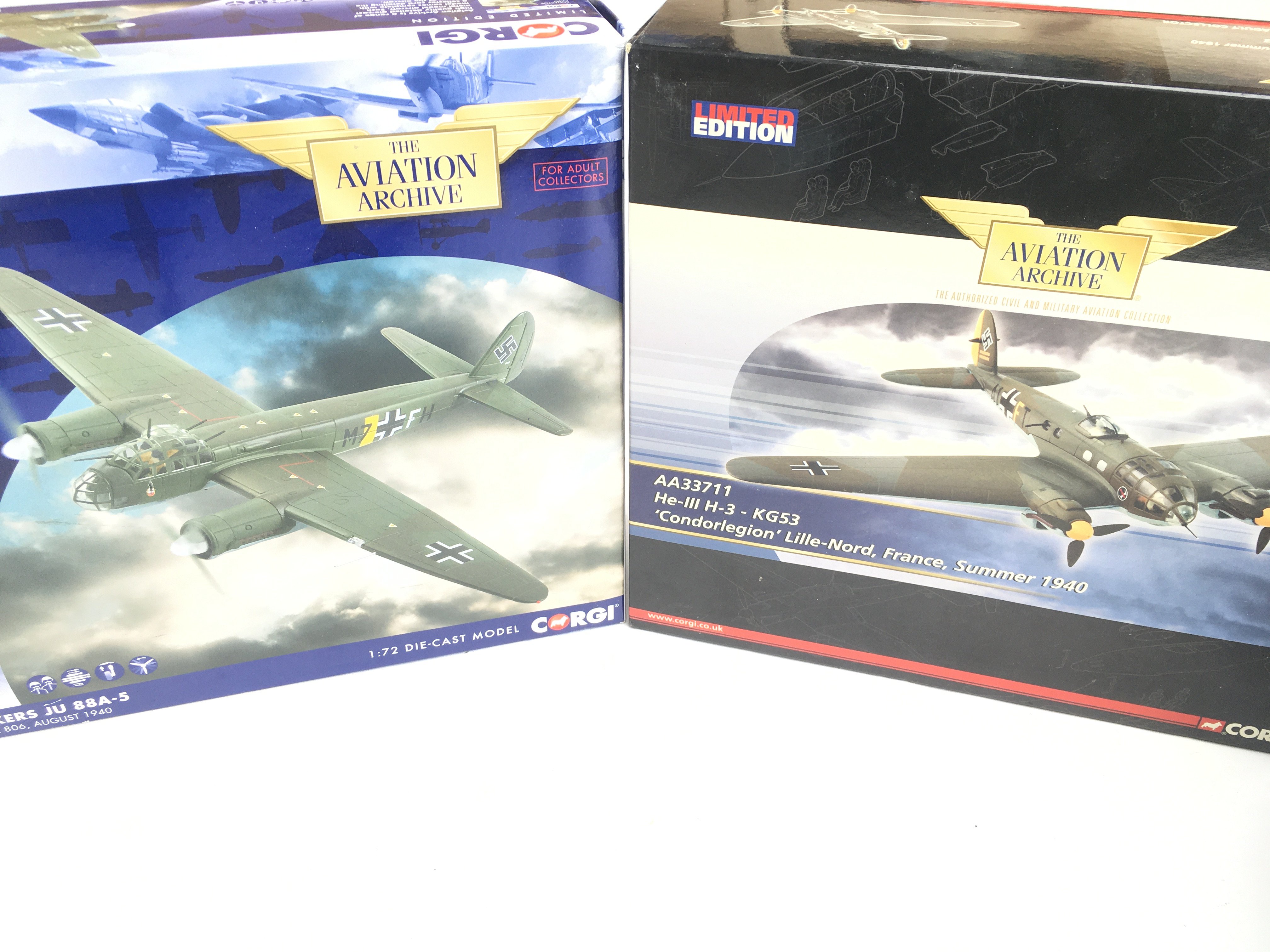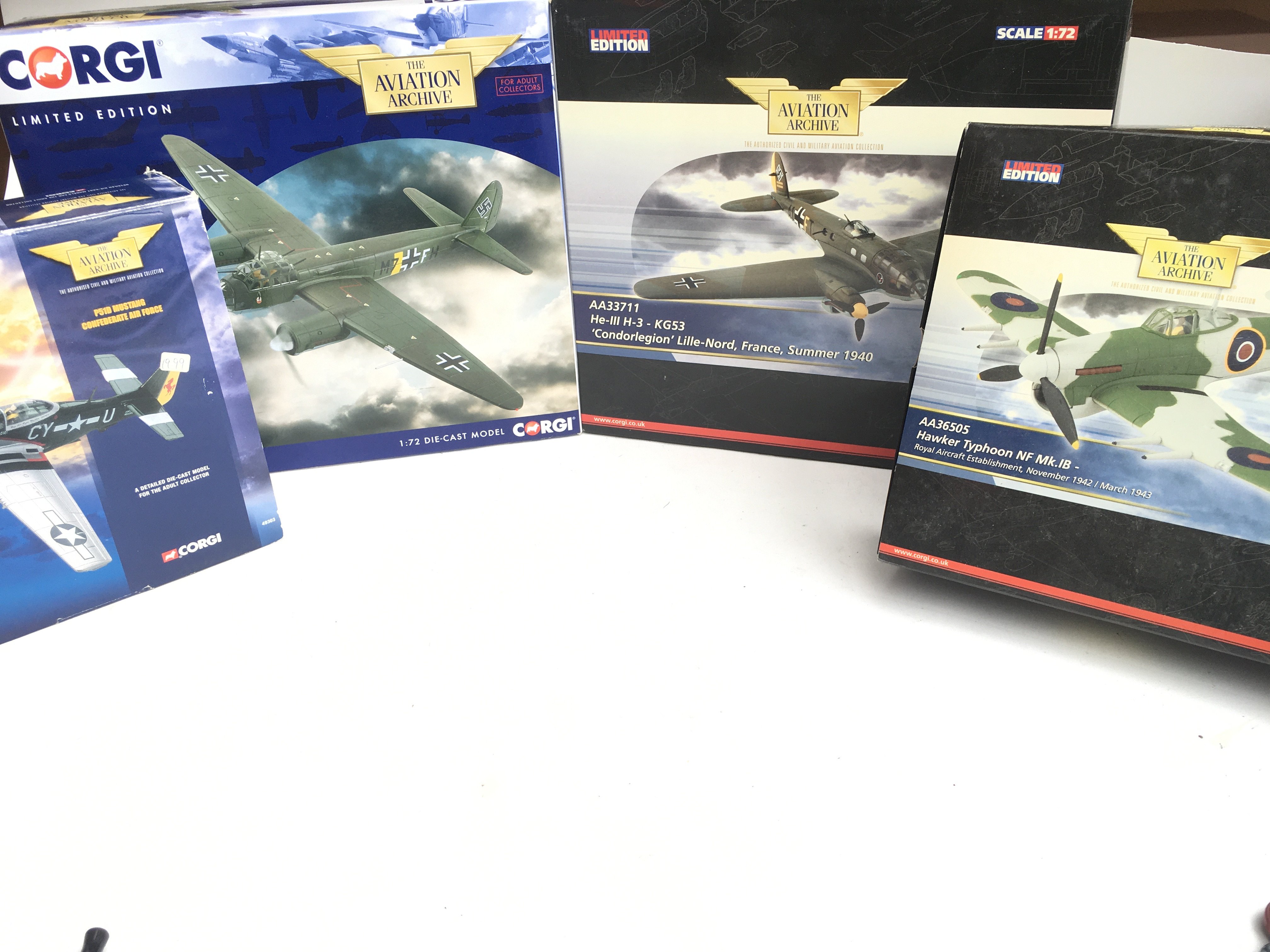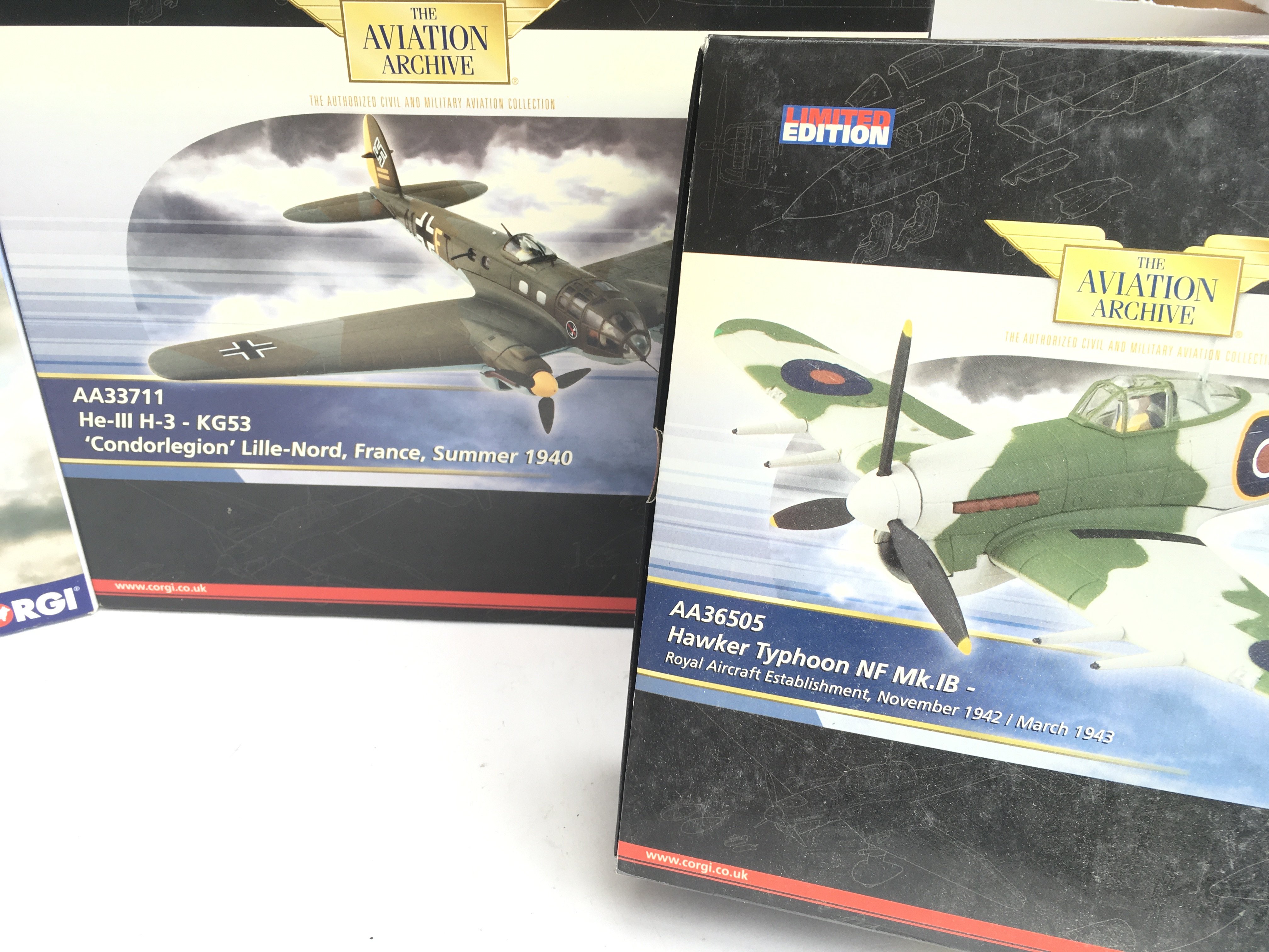 4 x Boxed Corgi Aviation Models. Including a Junkers Ju 88A-5. A Hawker Typhoon. Etc.
