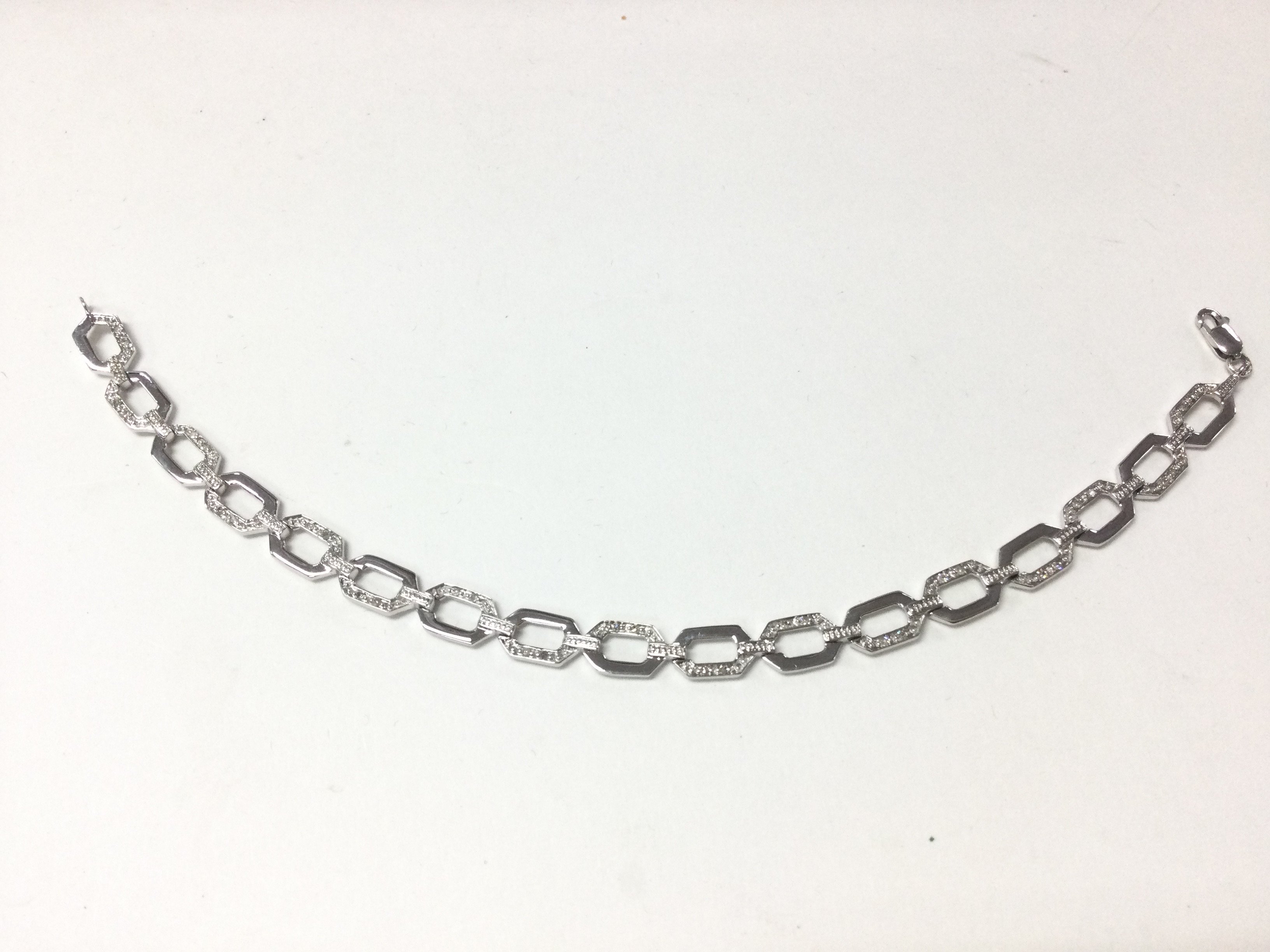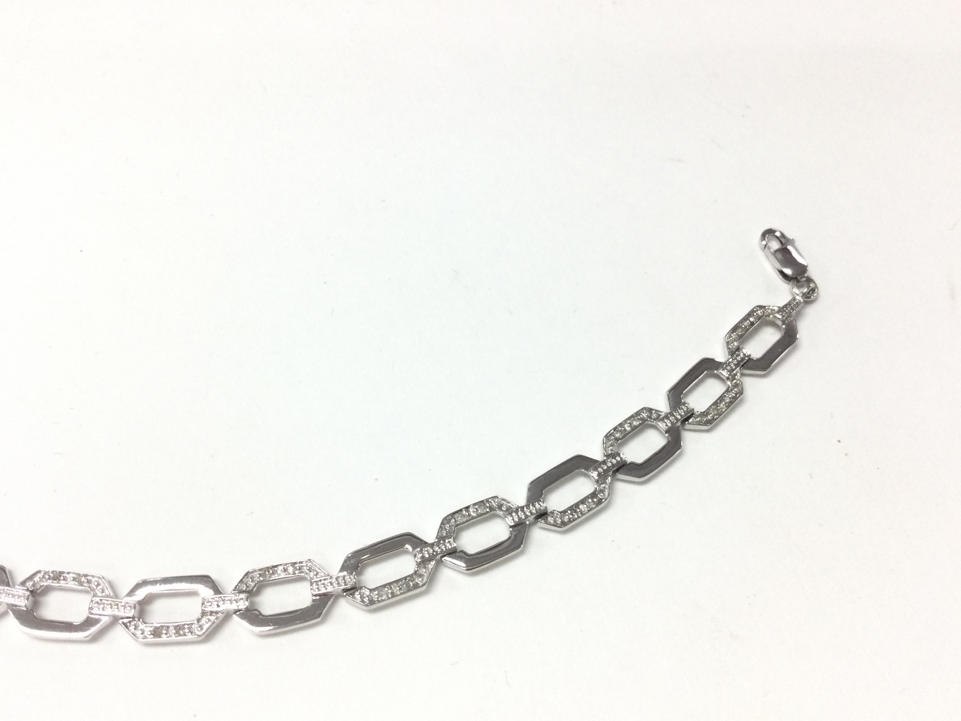 A 9ct white gold diamond set fancy line bracelet with lobster claw clasp. Diamonds approximately 0.20ct and 5.5g. Postage A