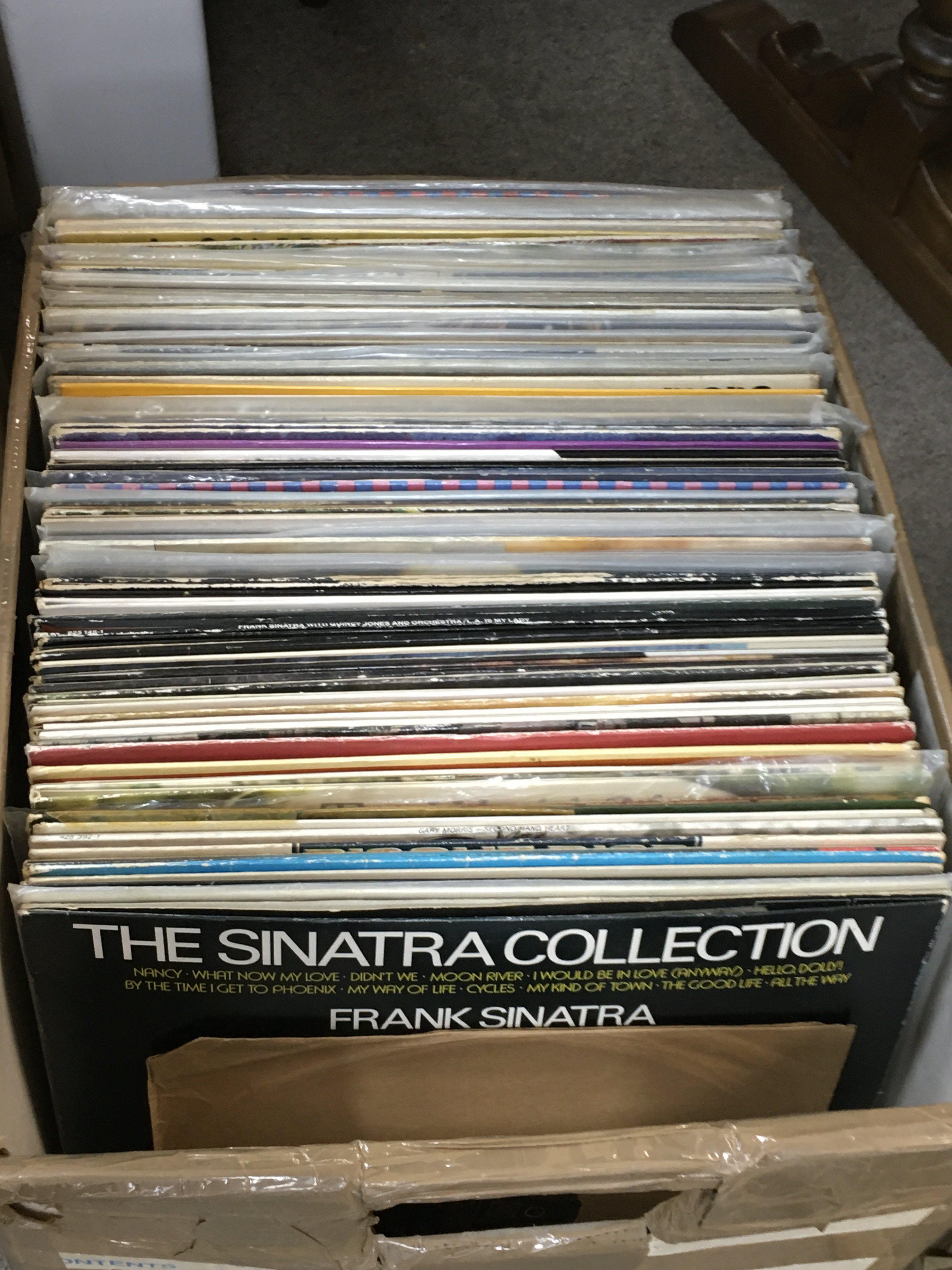 A box of Vinyl records including Frank Sinatra, Ella Fitzgerald etc
