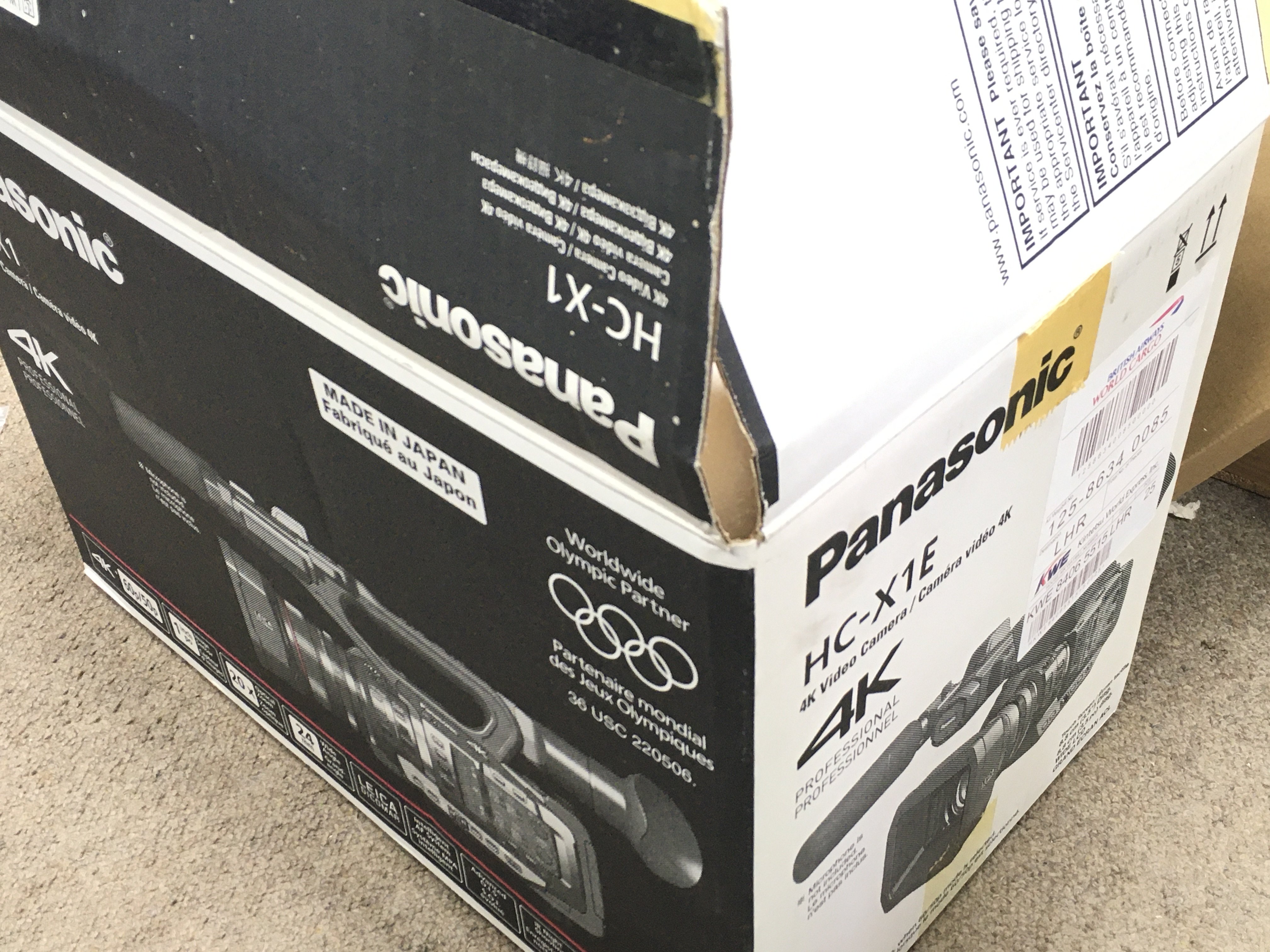 A boxed Panasonic HC-X1 4K video camera. Postage category C