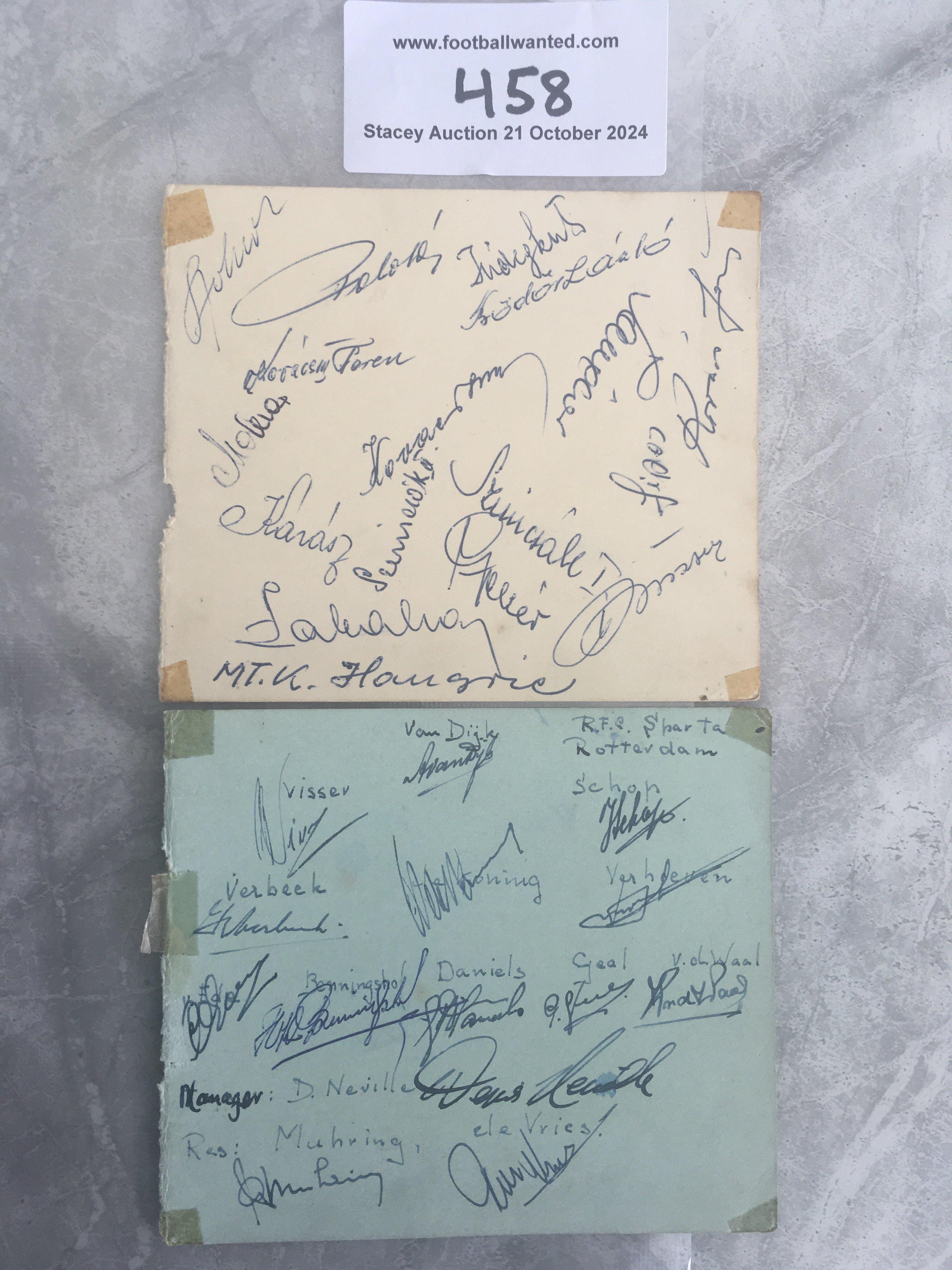 1956 Red Banner + Sparta Rotterdam Football Tour Autographs: Portsmouth opponents amongst others. Two separate individual autograph book pages with both squads signed. (2)