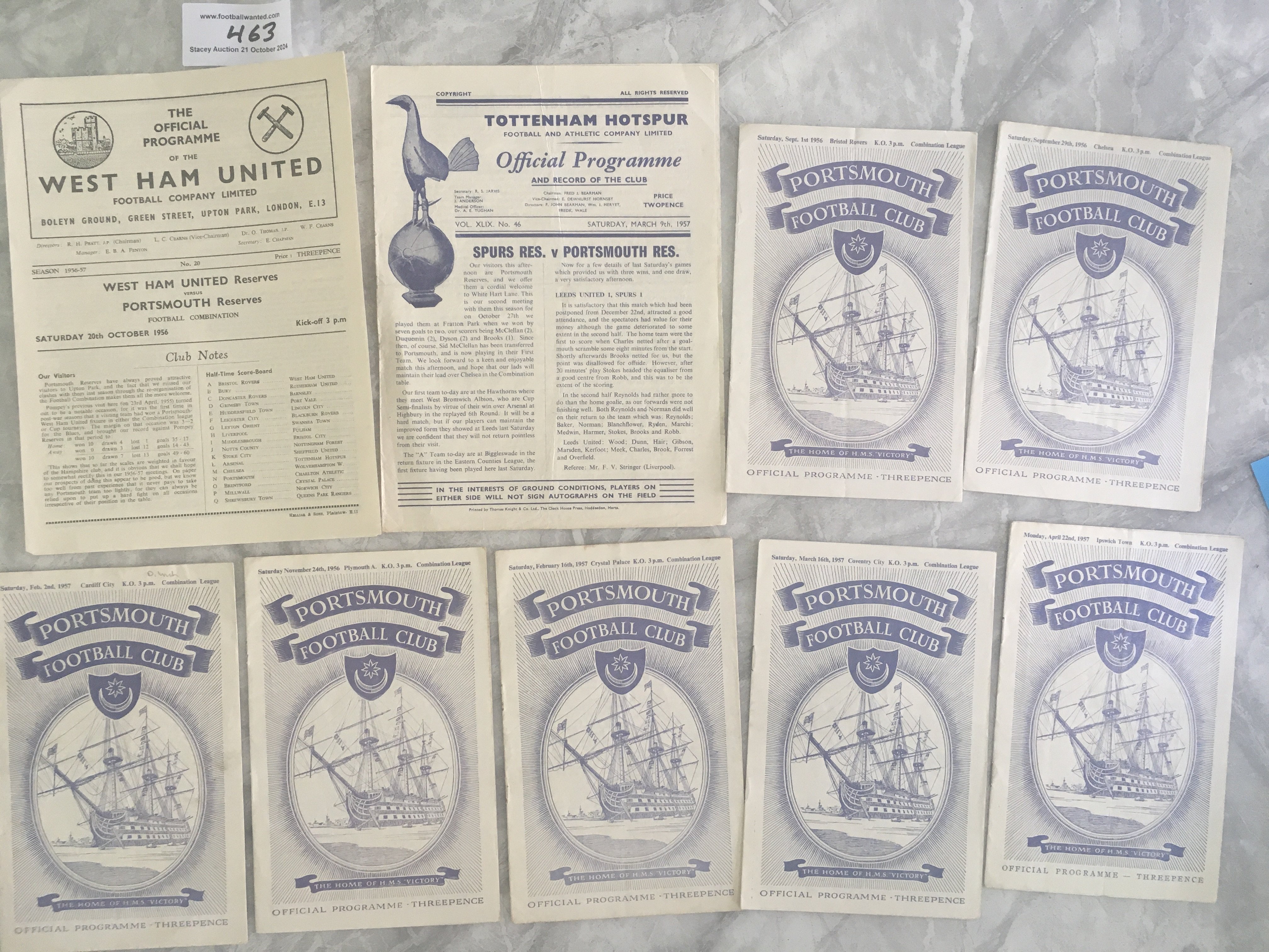 56/57 Portsmouth Reserve Football Programmes: Good condition private collection of homes and aways. (18)