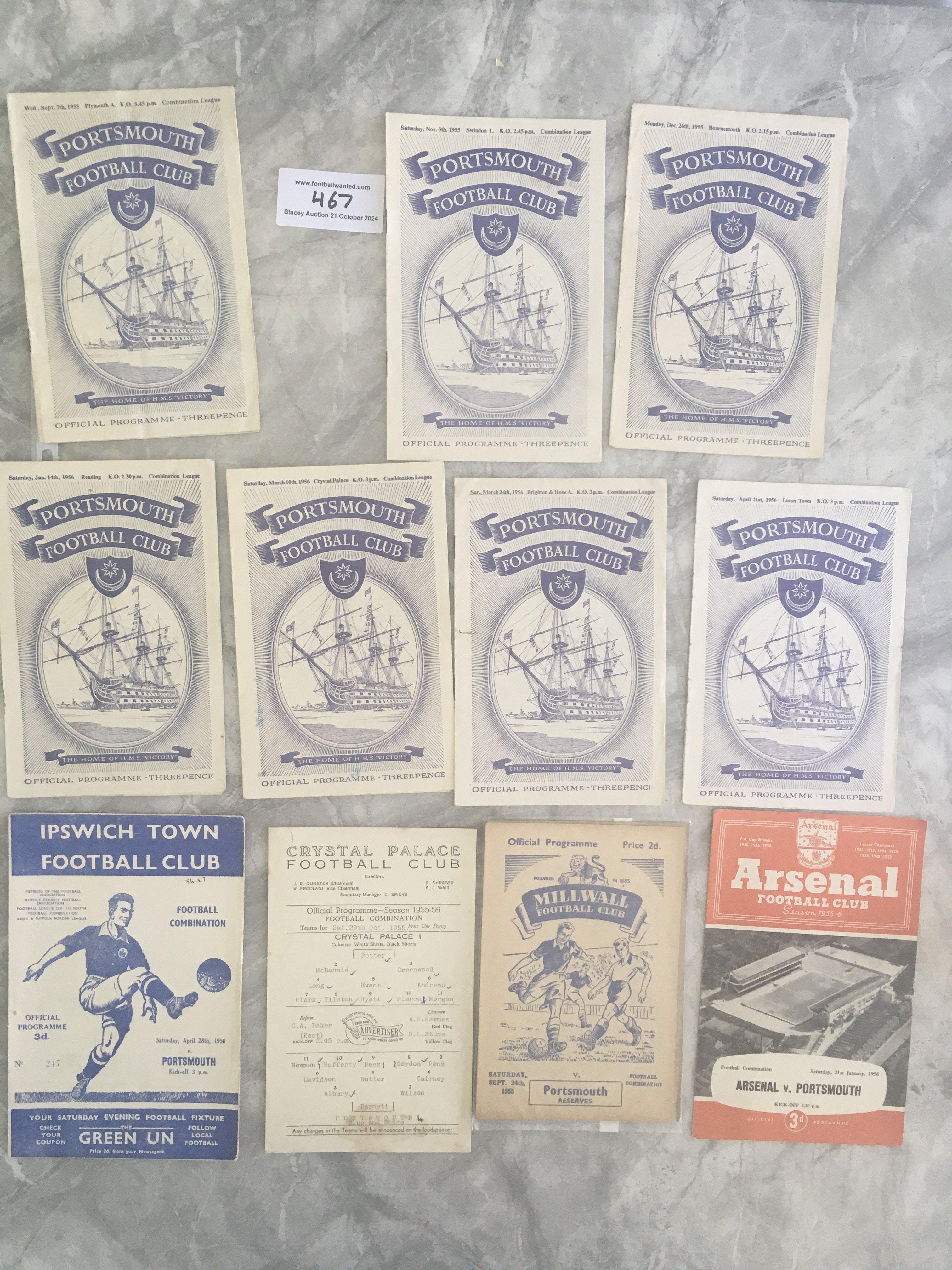 55/56 Portsmouth Reserve Football Programmes: 7 homes and 4 aways in good condition. (11)