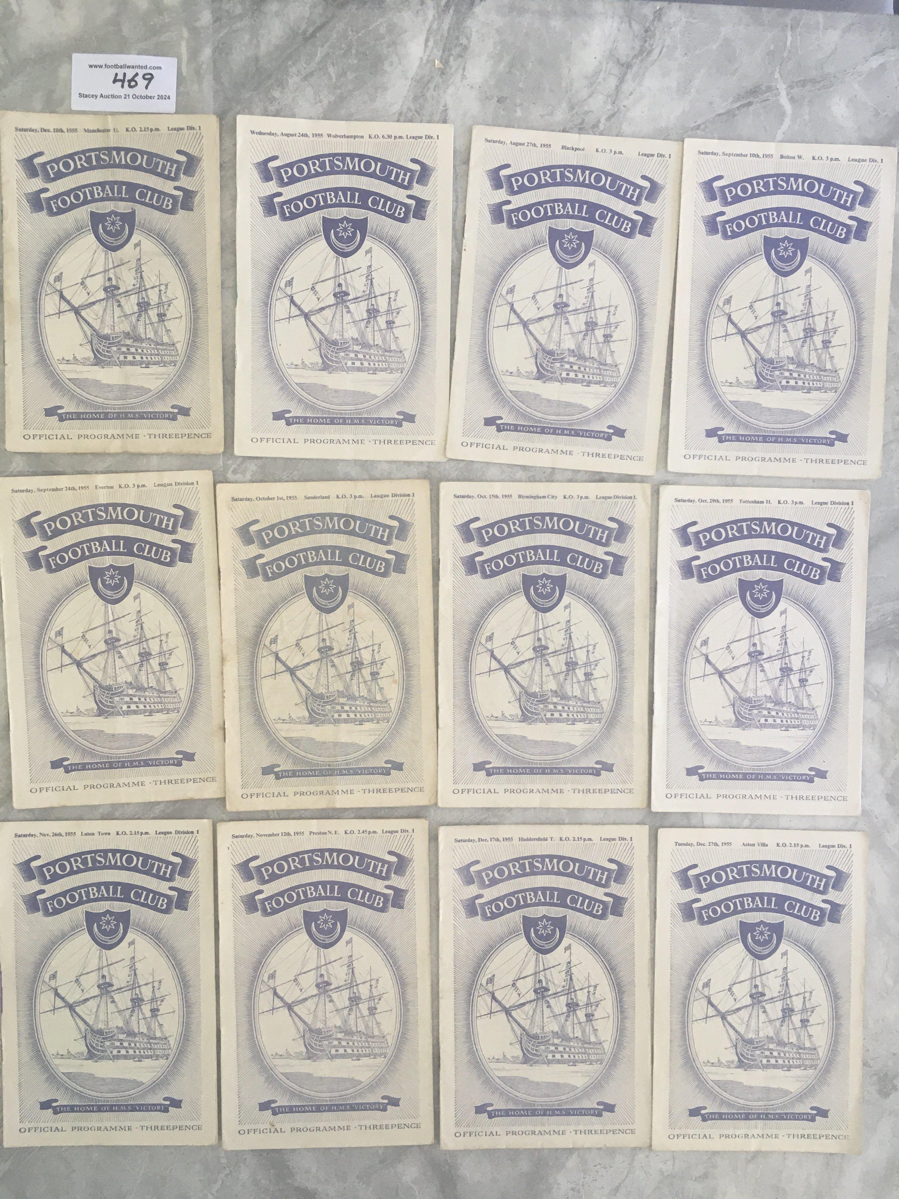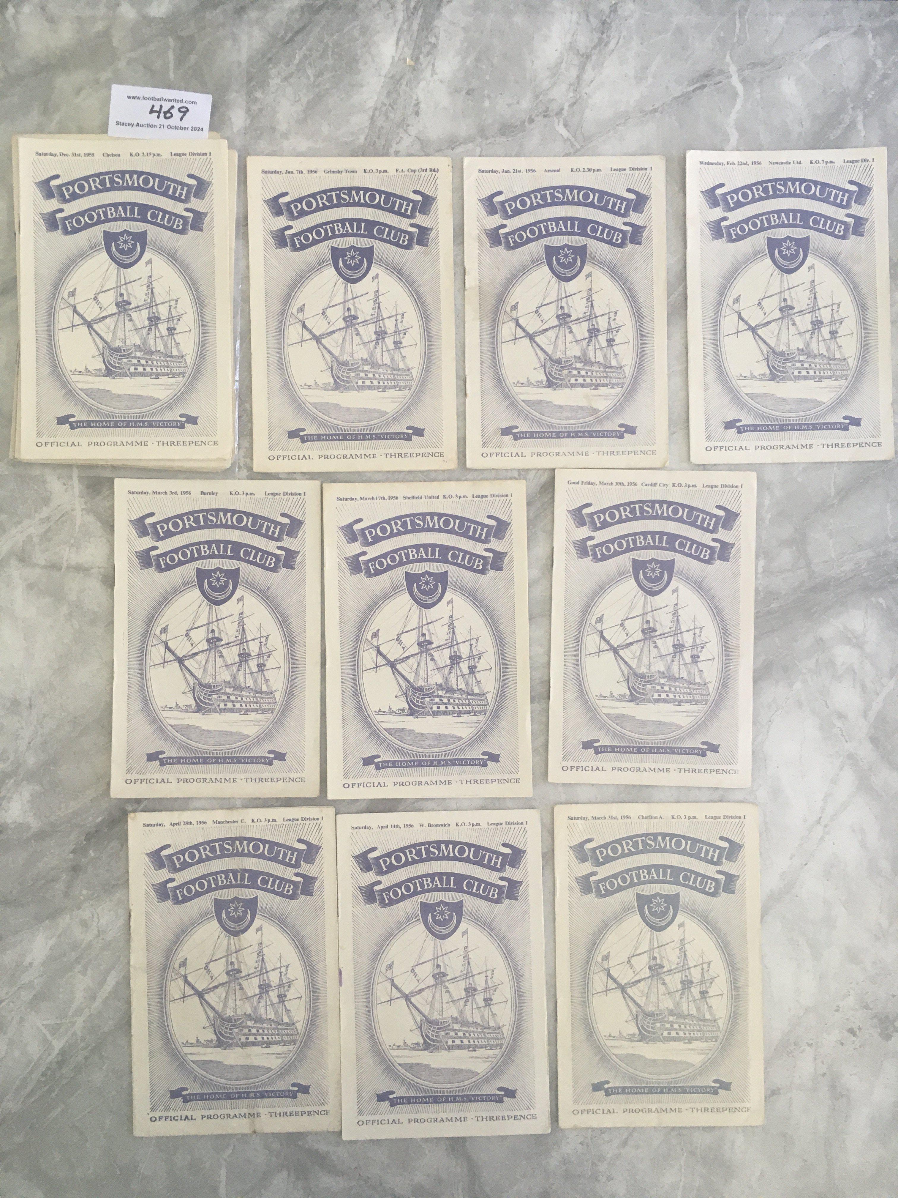 55/56 Portsmouth Complete Home Football Programmes: Good condition private collection of homes in the league and cup to include Manchester United. (22)
