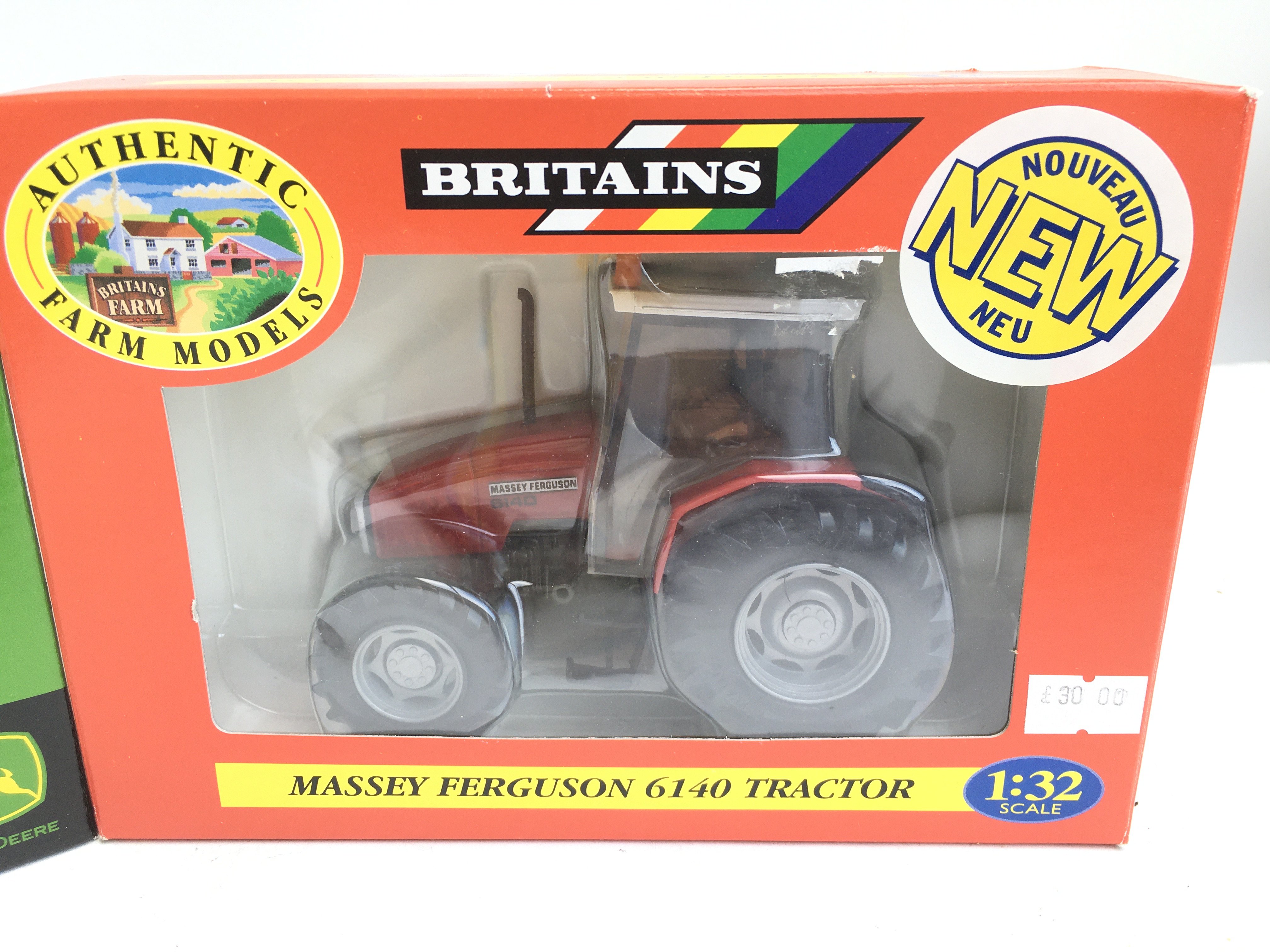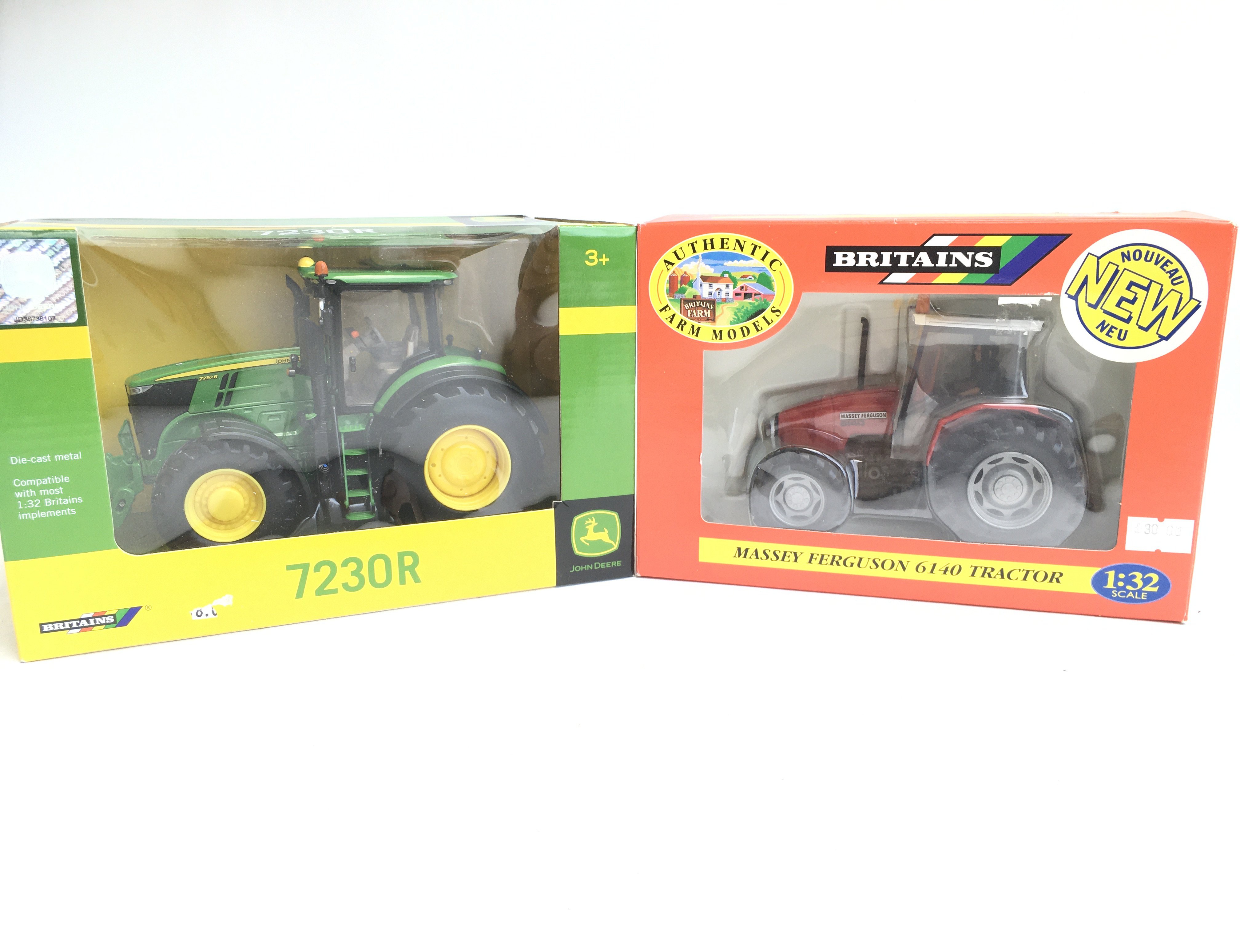 A Boxed Britains Massey Ferguson 6140 Tractor #09449 and a John Deere 7230R Tractor #43089A1.