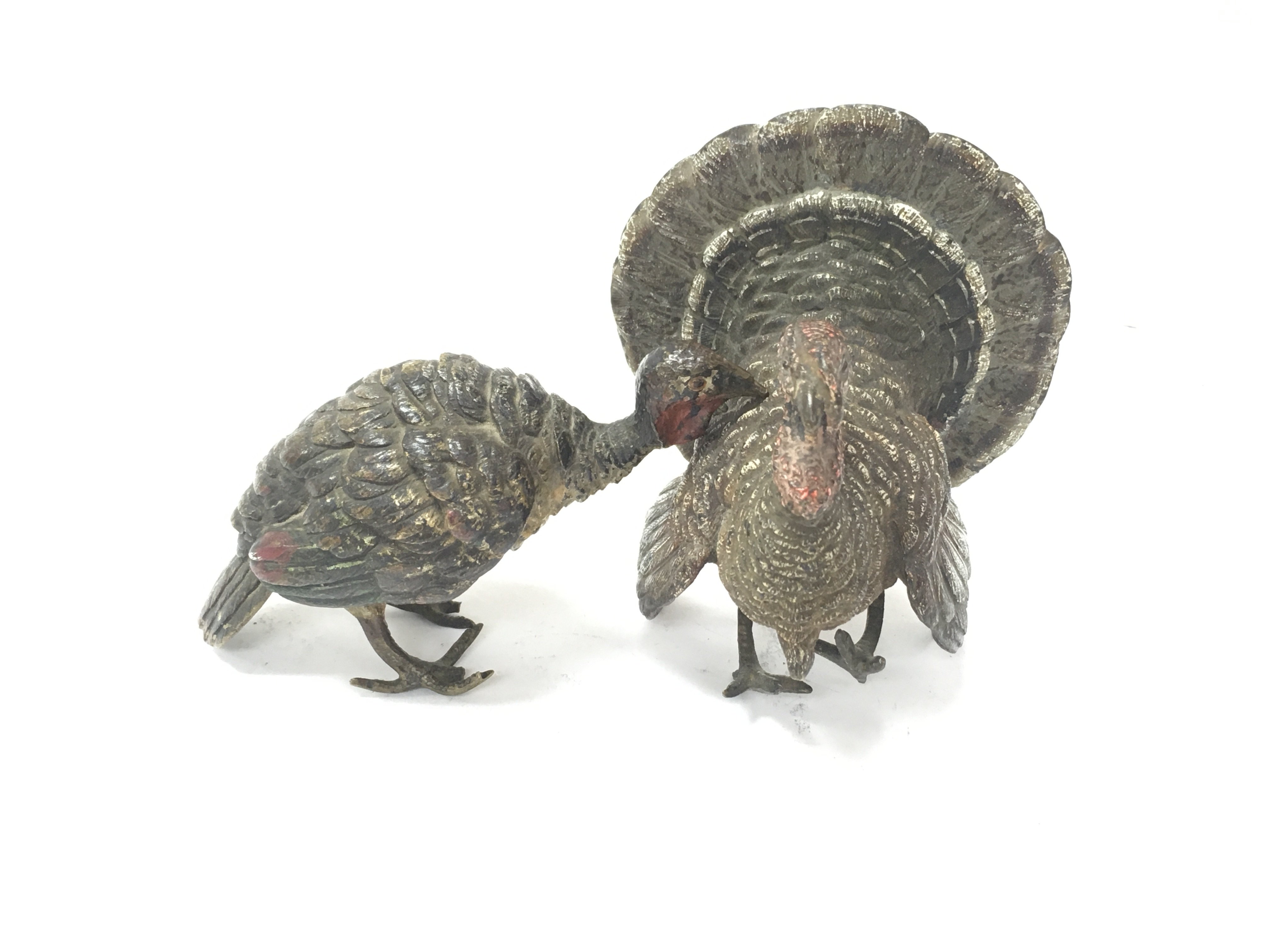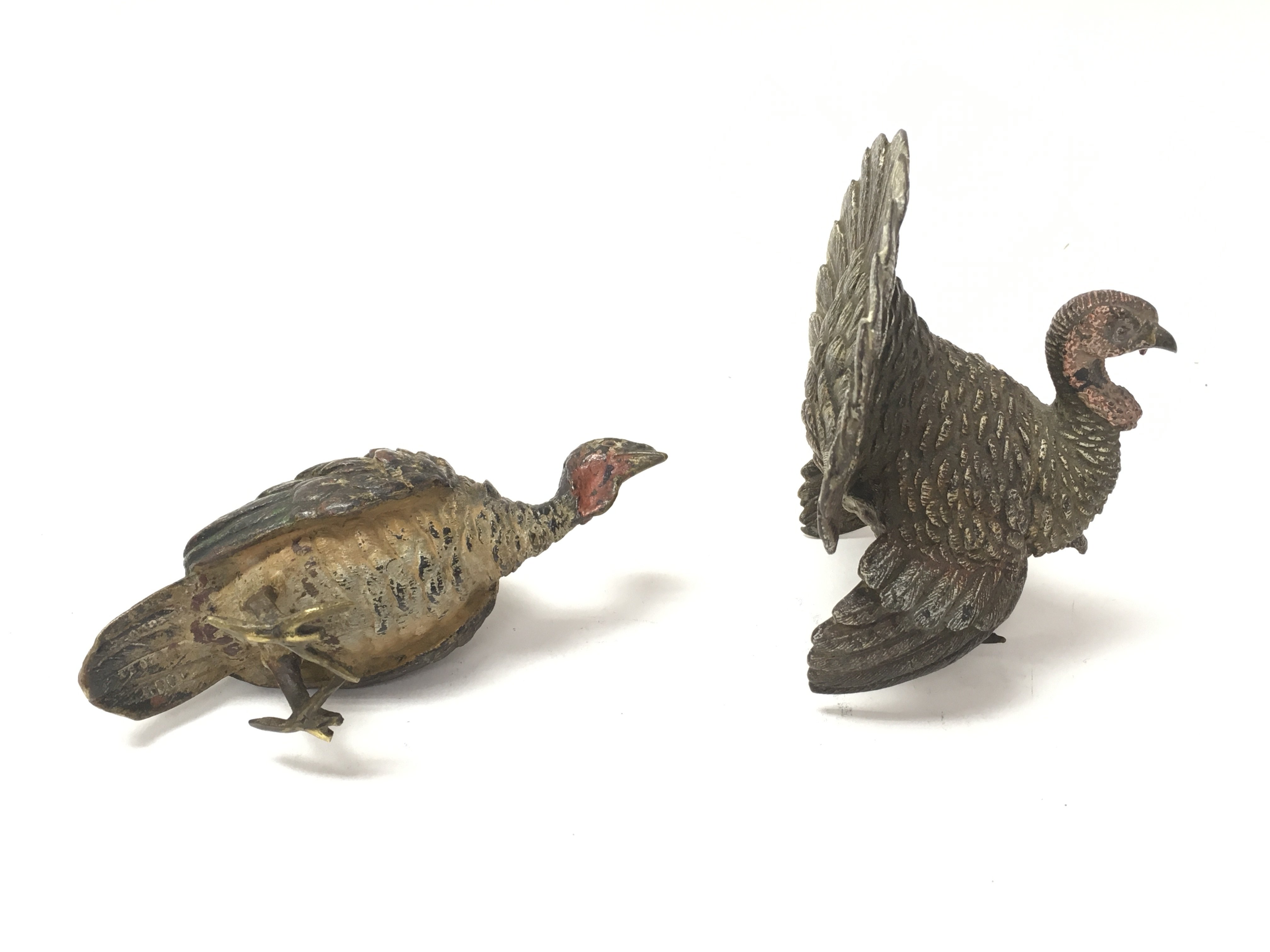 2 cold painted bronze turkeys by Bergman.Larger is 9cm high by 7cm.Postage B