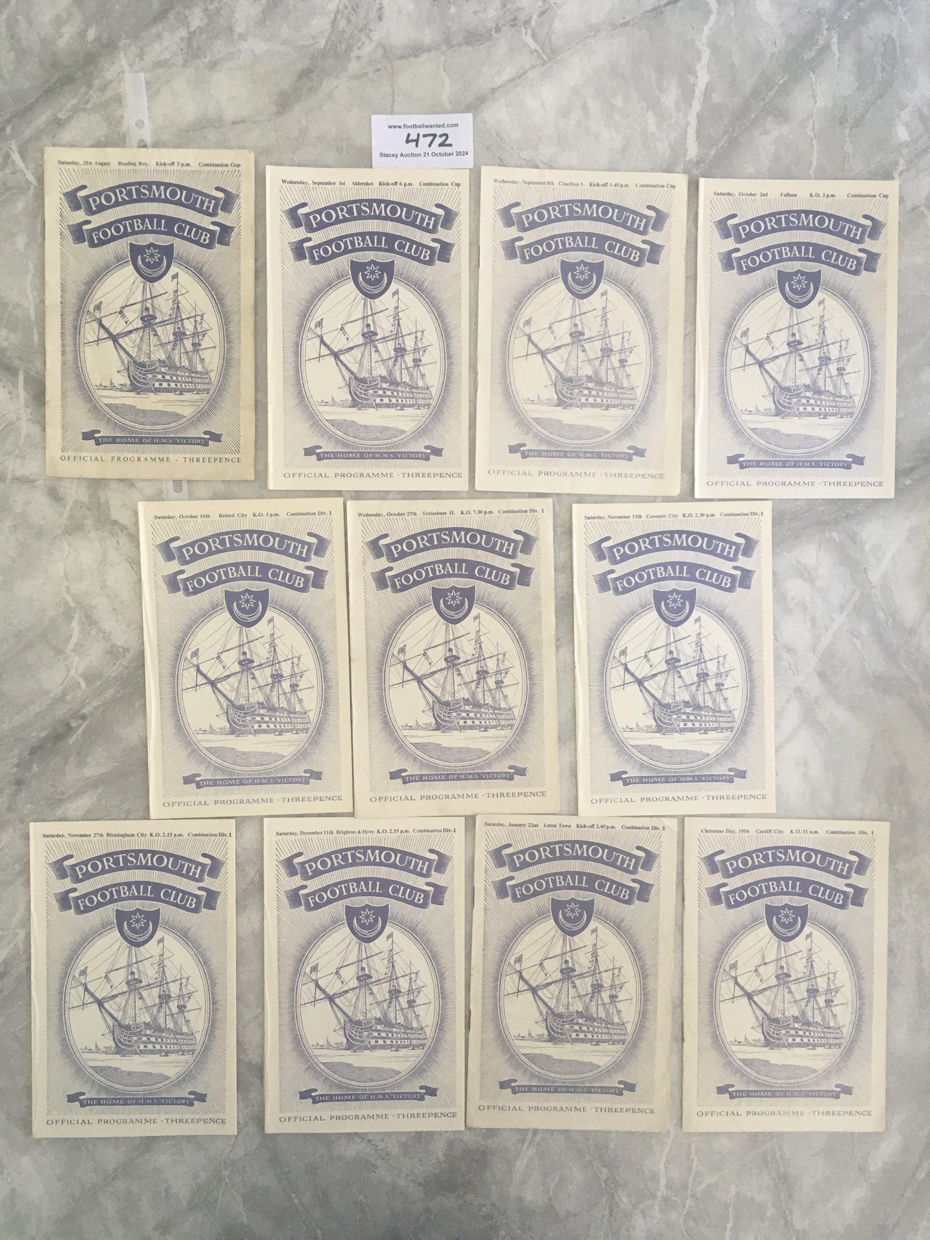 54/55 Portsmouth Home Reserve Football Programmes: Very good condition private collection of homes in the Combination league and cup. Includes Tottenham Brighton and Cardiff. (11)