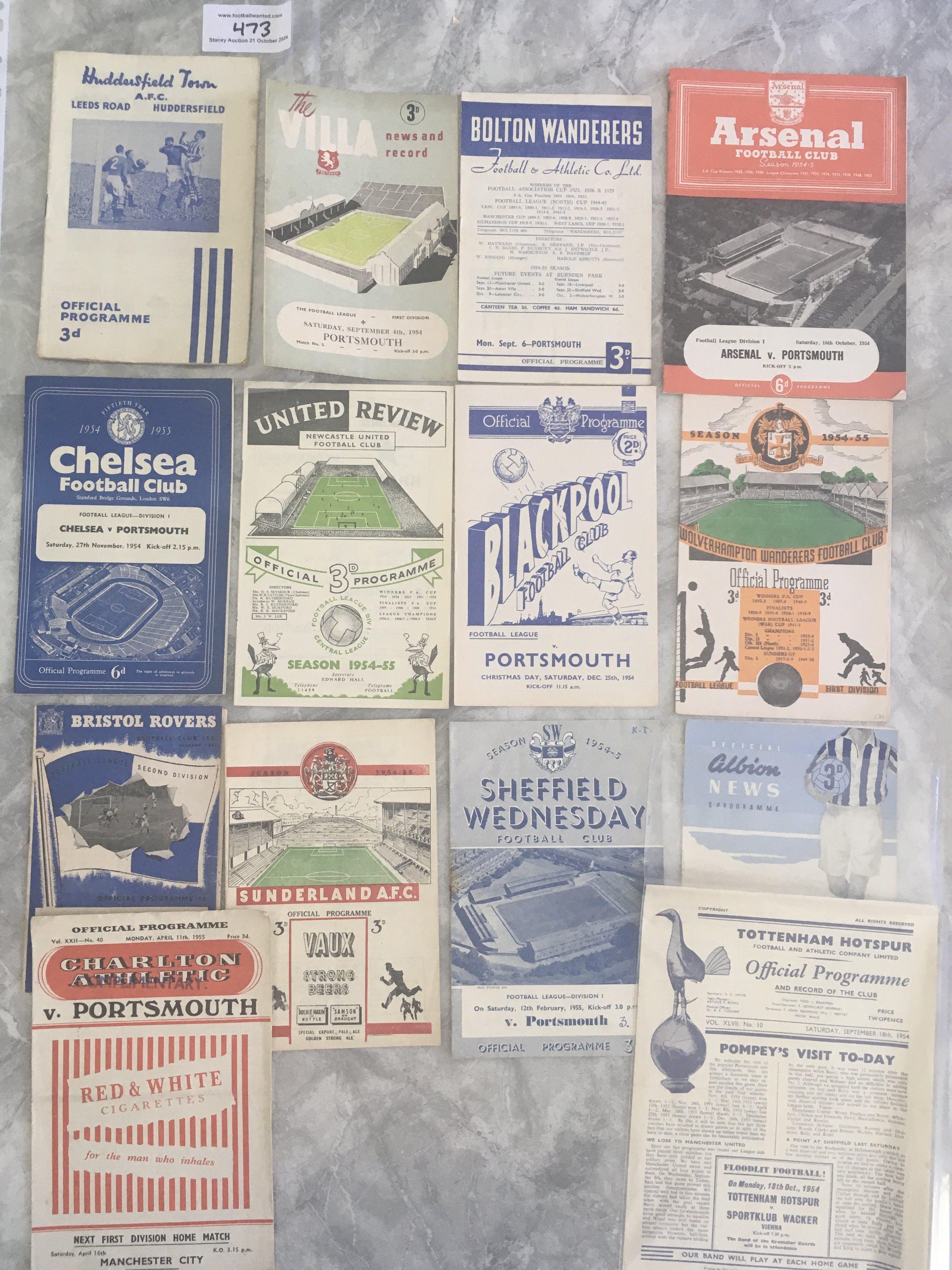 54/55 Portsmouth Away Football Programmes: Good condition private collection of aways in the league and cup to include Blackpool Sunderland Newcastle and Bolton. Couple have number to cover. (14)
