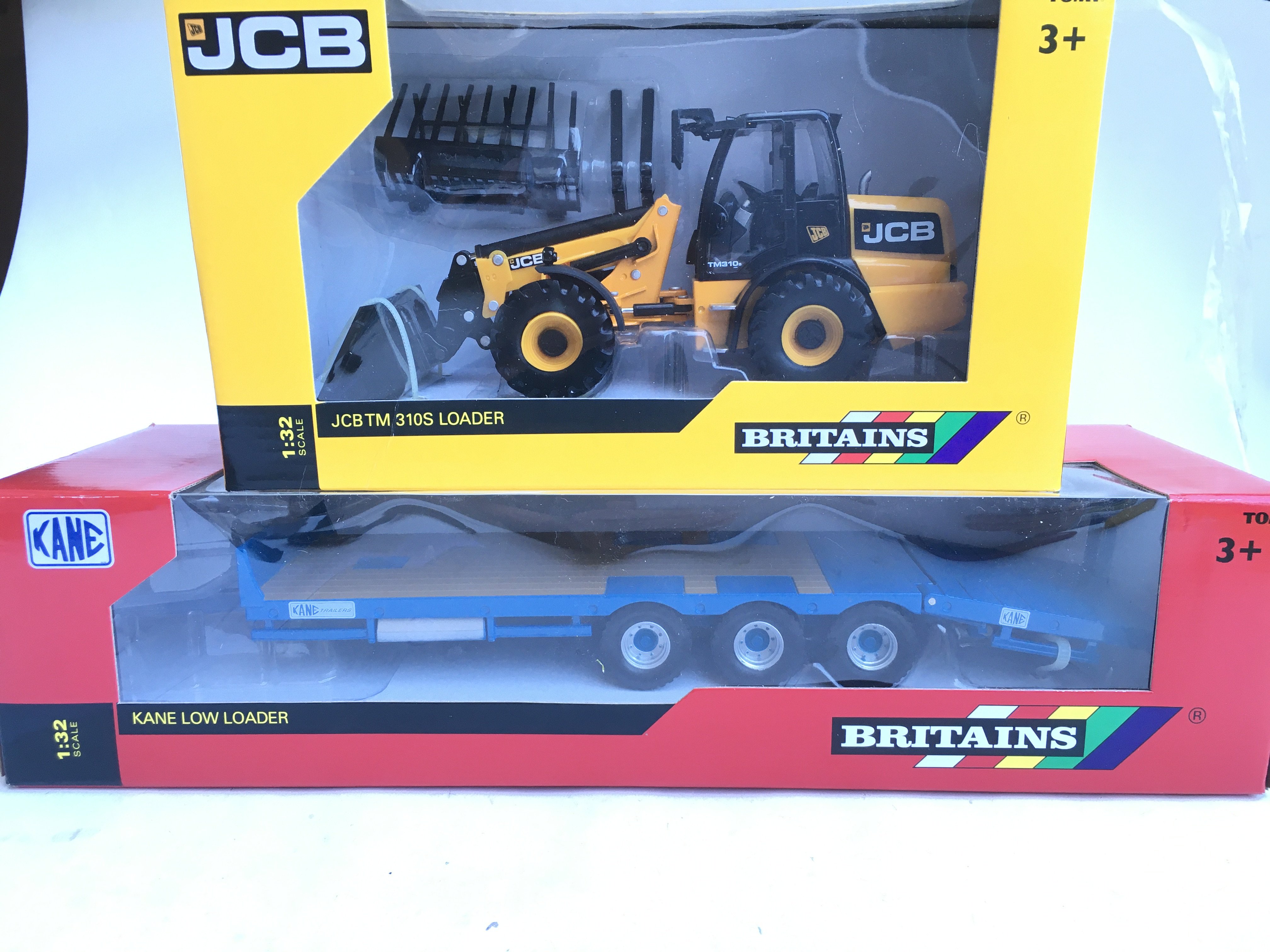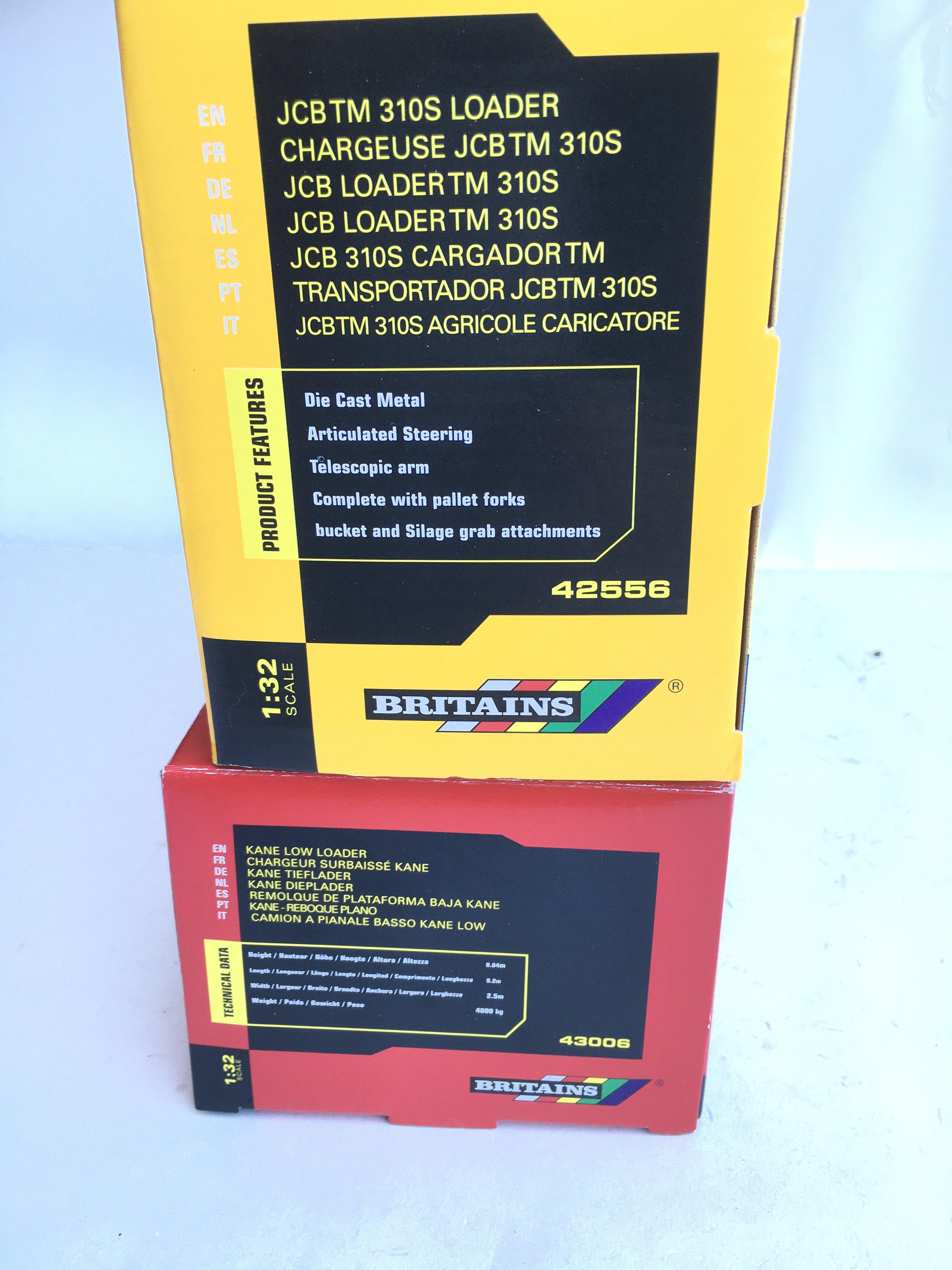 A Boxed Britains JCB TM 310S Loader #42556 and a Kane Low Loader #43006.