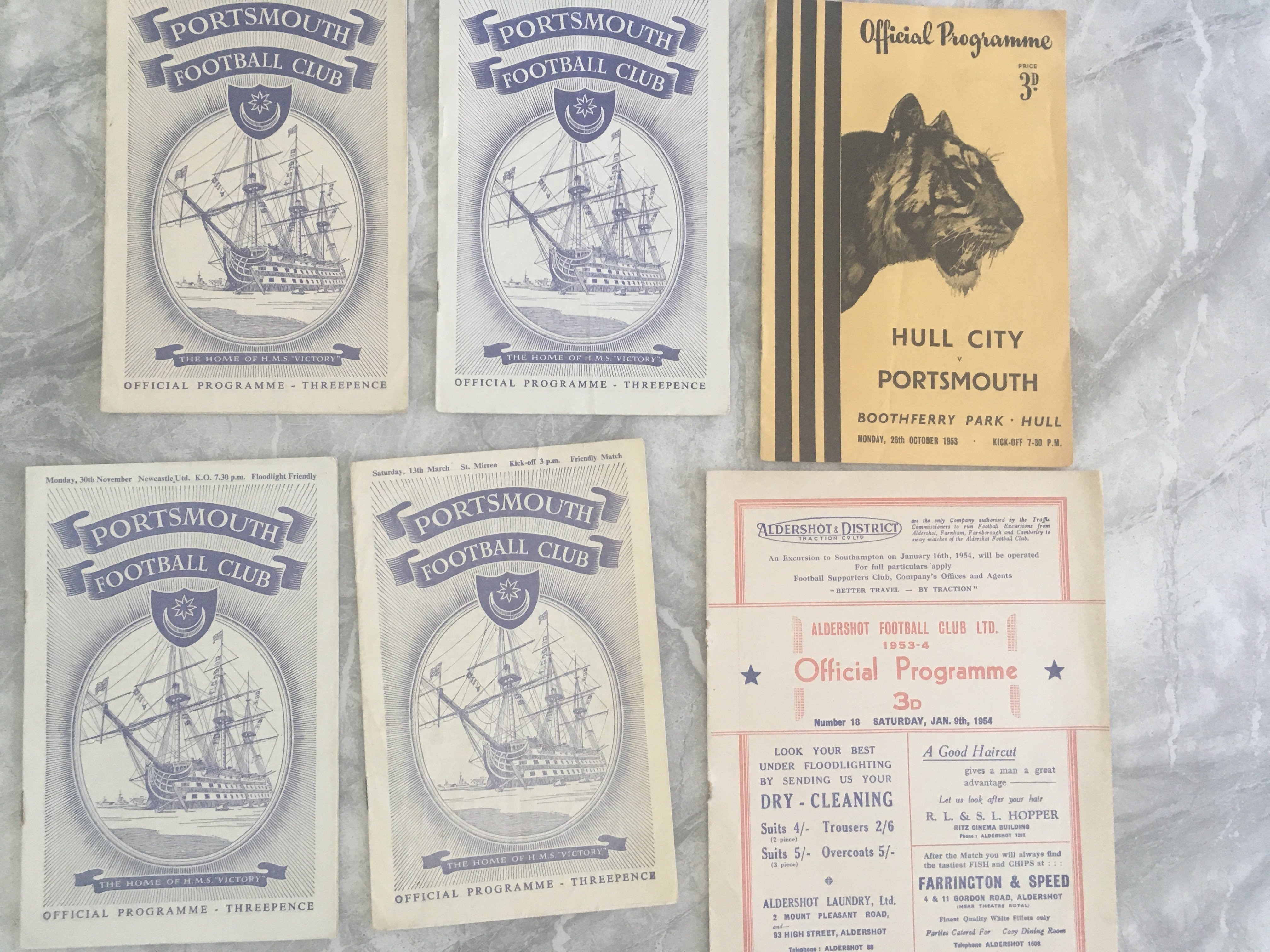 53/54 Portsmouth Friendly Football Programmes: Good condition private collection of homes v Pegasus Newcastle St Mirren and Hearts with aways at Hull and Aldershot. (6)