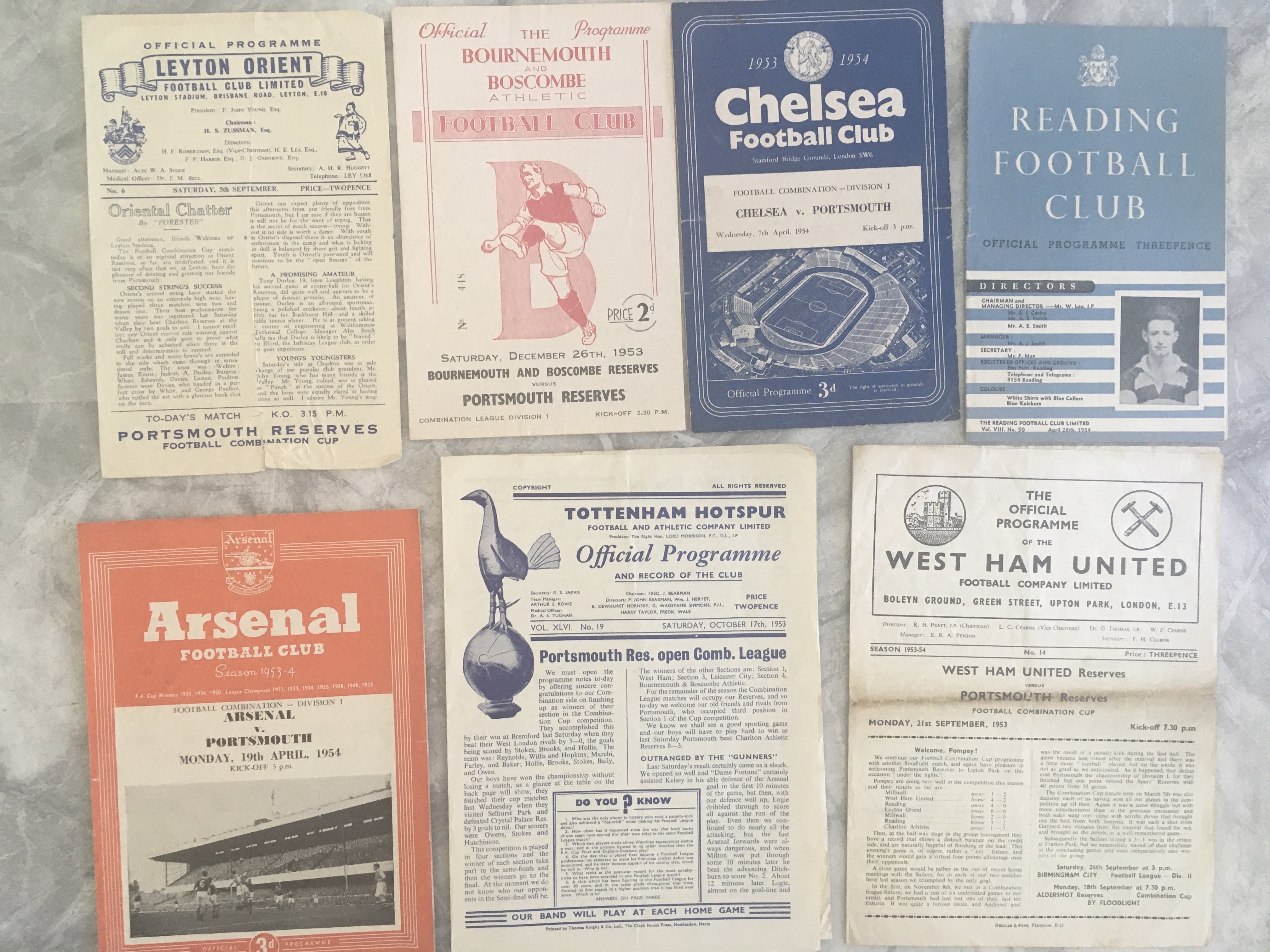 53/54 Portsmouth Away Reserve Football Programmes: Good condition private collection of aways to include Bournemouth and Chelsea. Majority good. (7)