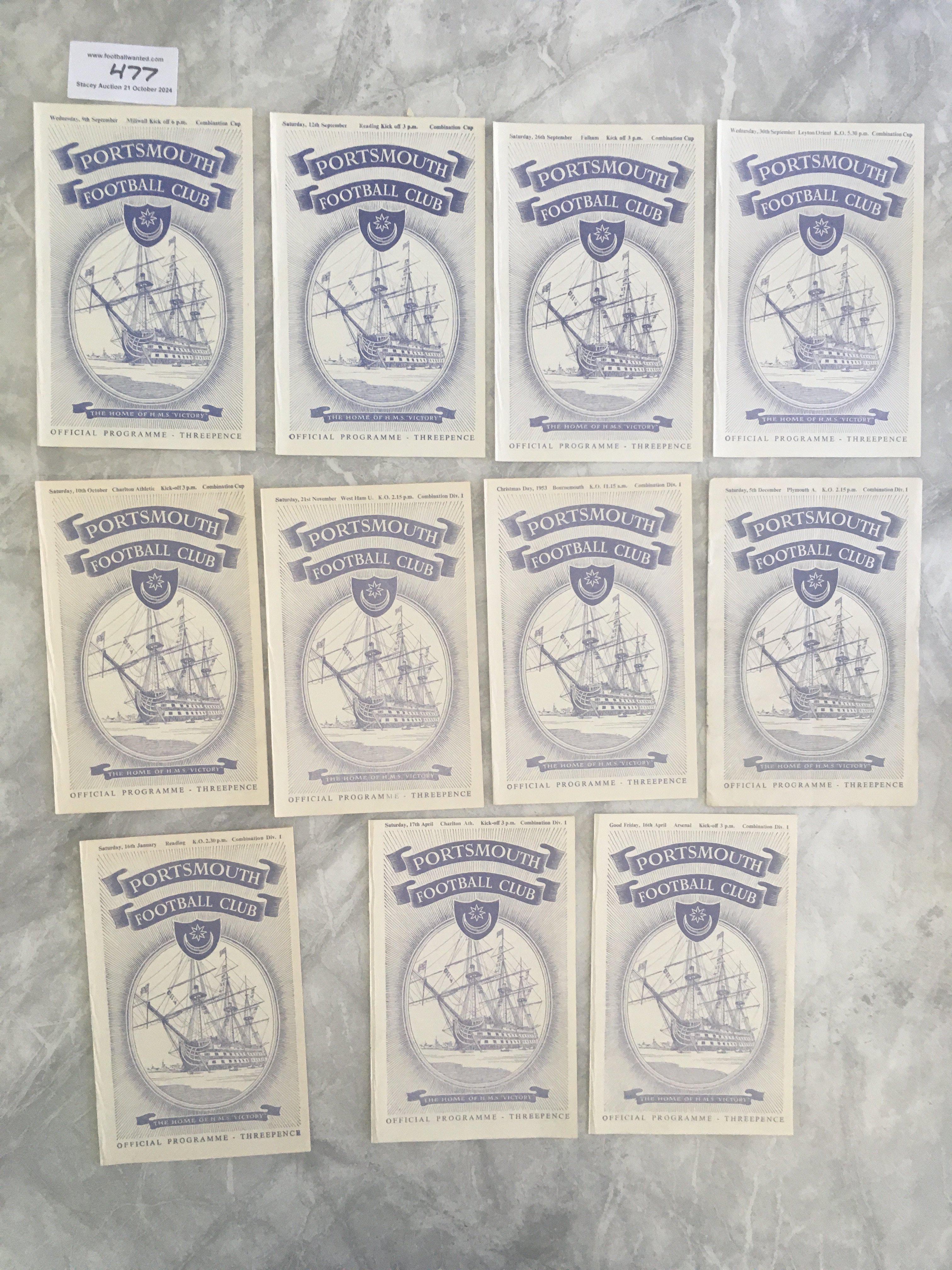 53/54 Portsmouth Away Reserve Football Programmes: Excellent condition ex bound with covers private collection of homes to include Bournemouth West Ham and Arsenal. (11)