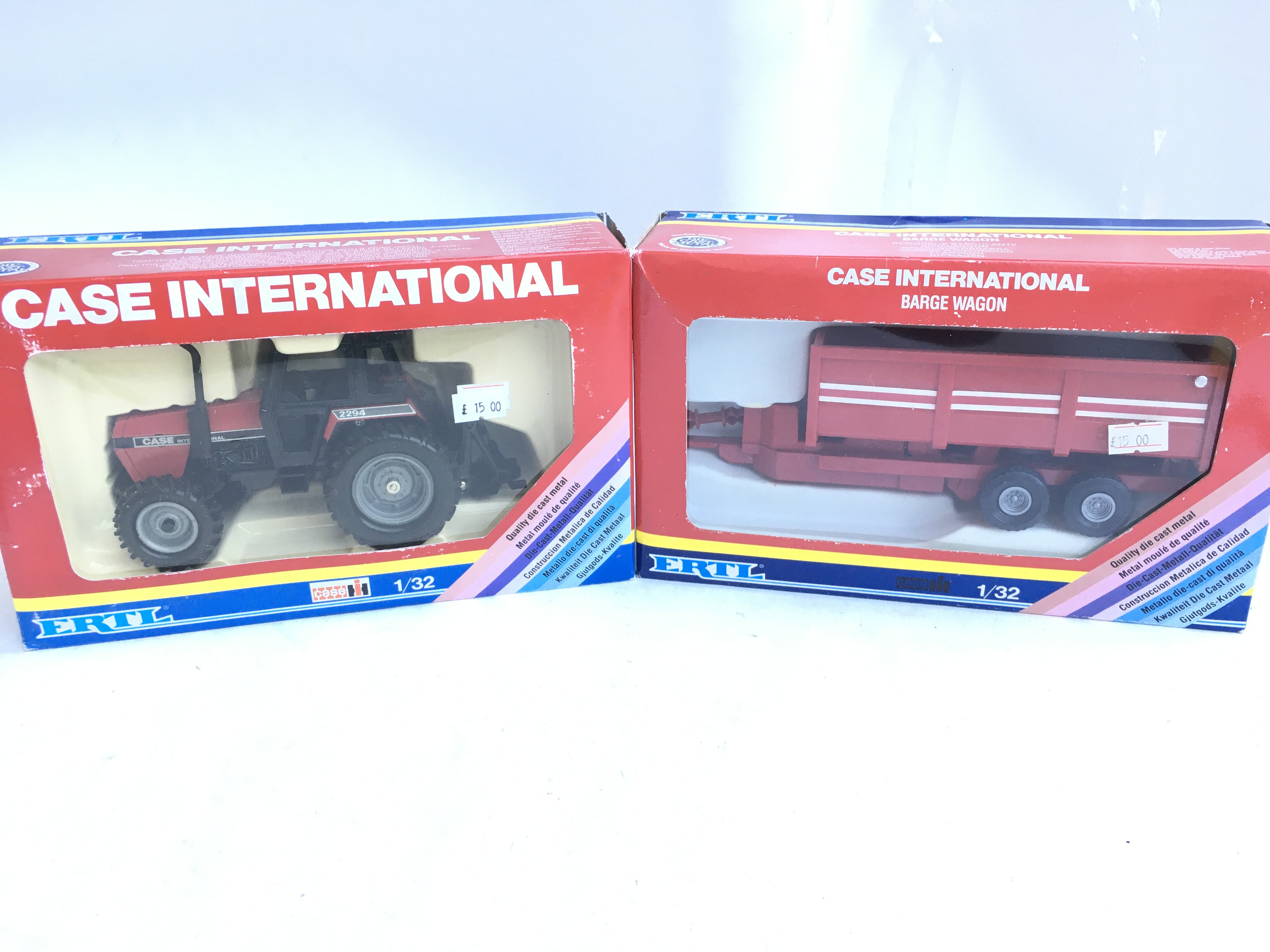 A Boxed Ertl Case International Tractor and Barge Wagon #223. 1:32 Scale.