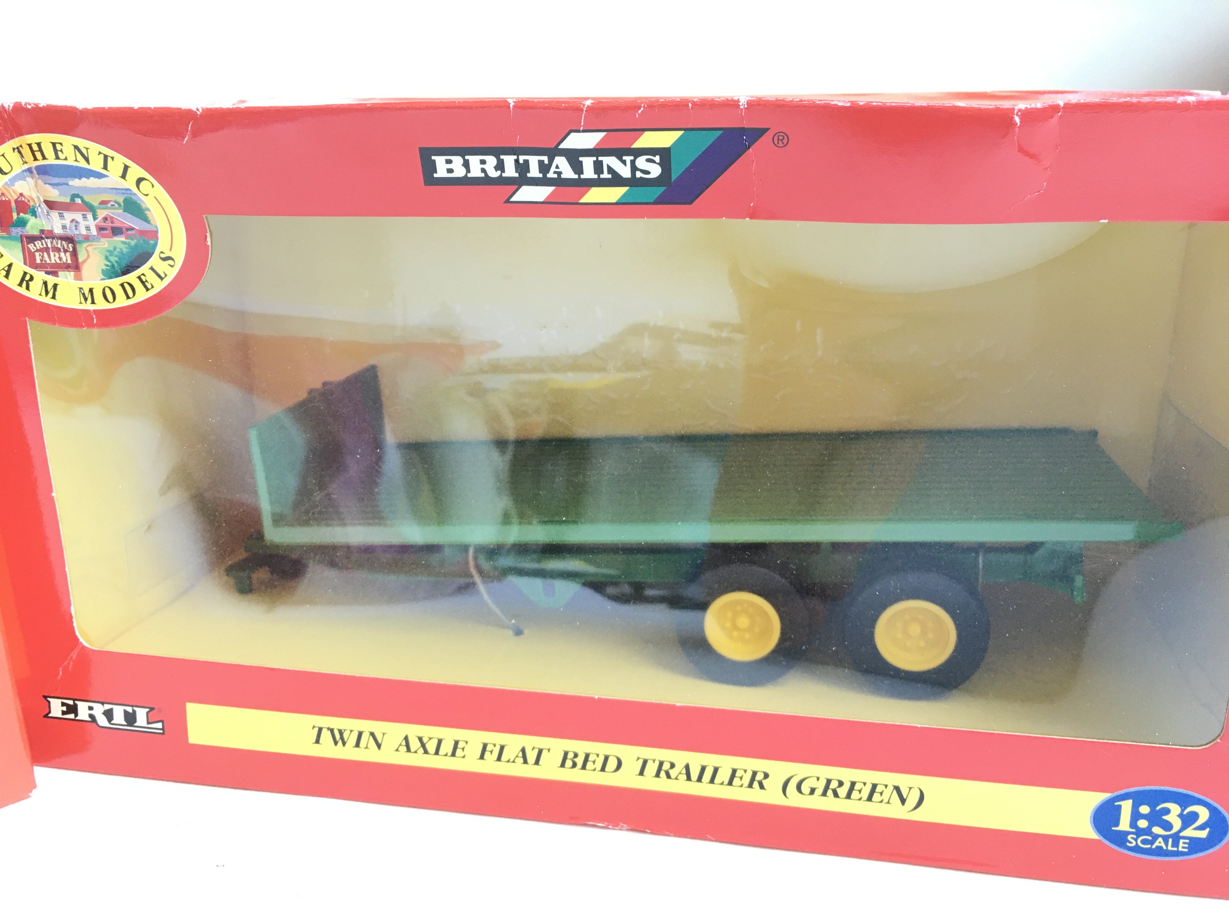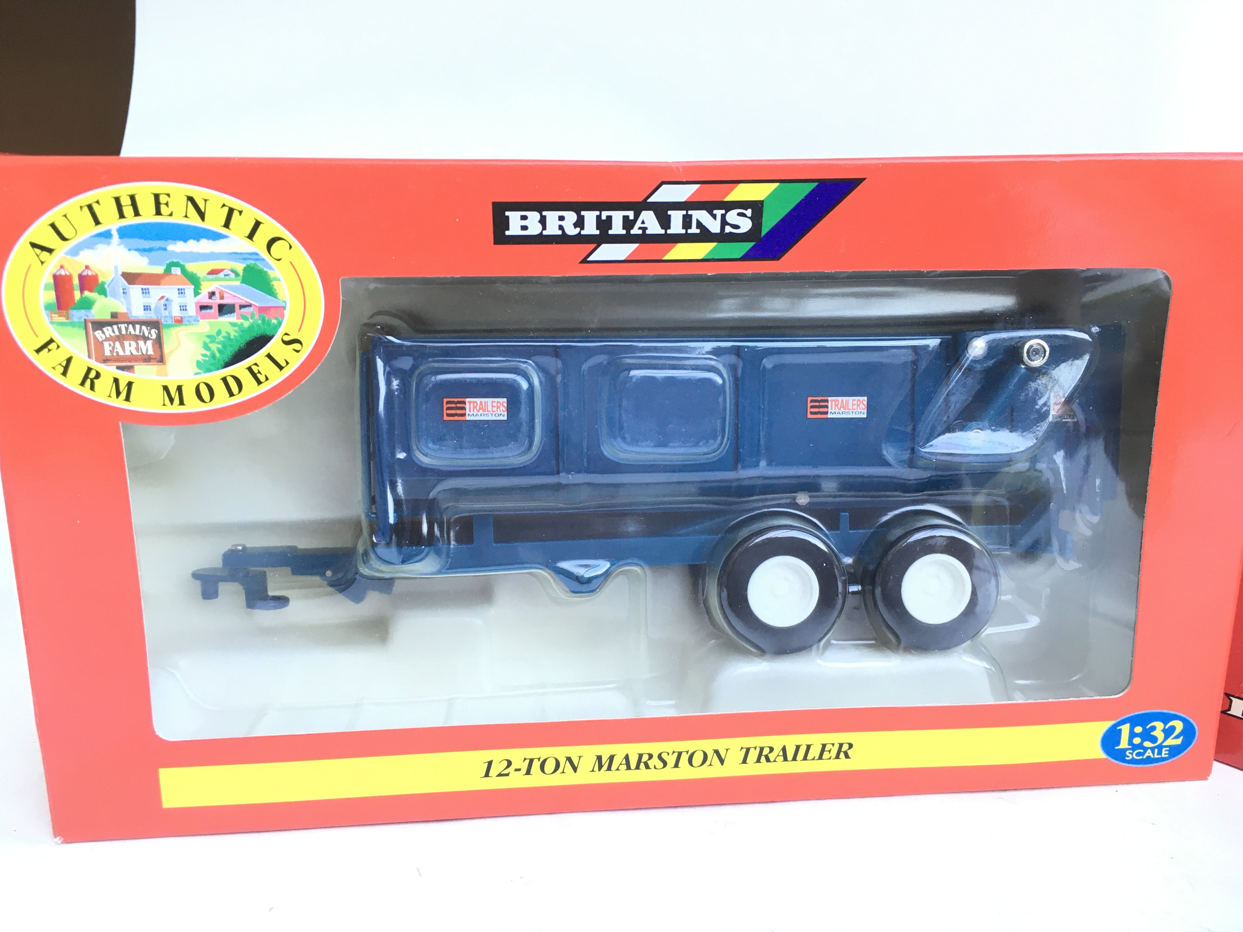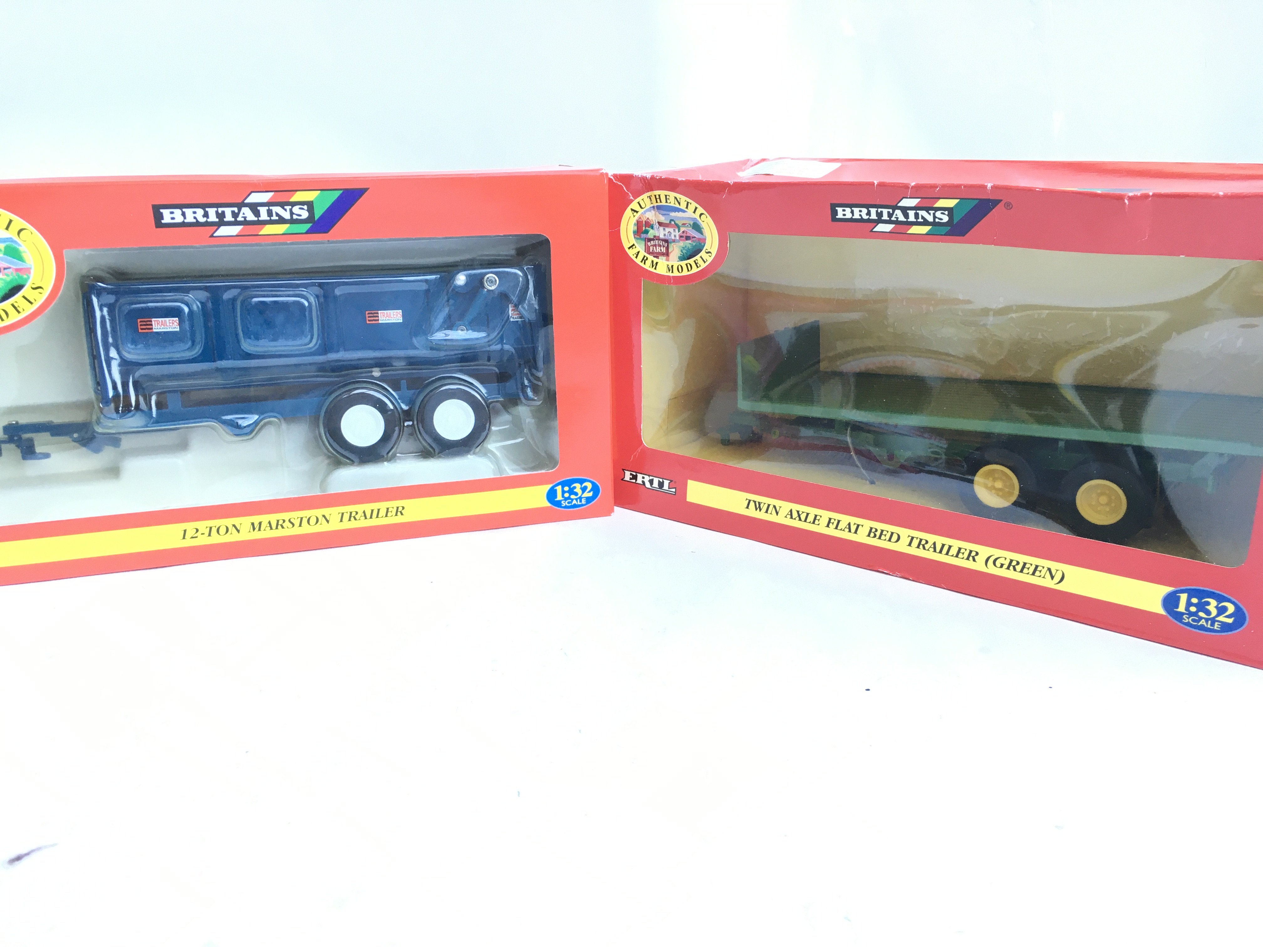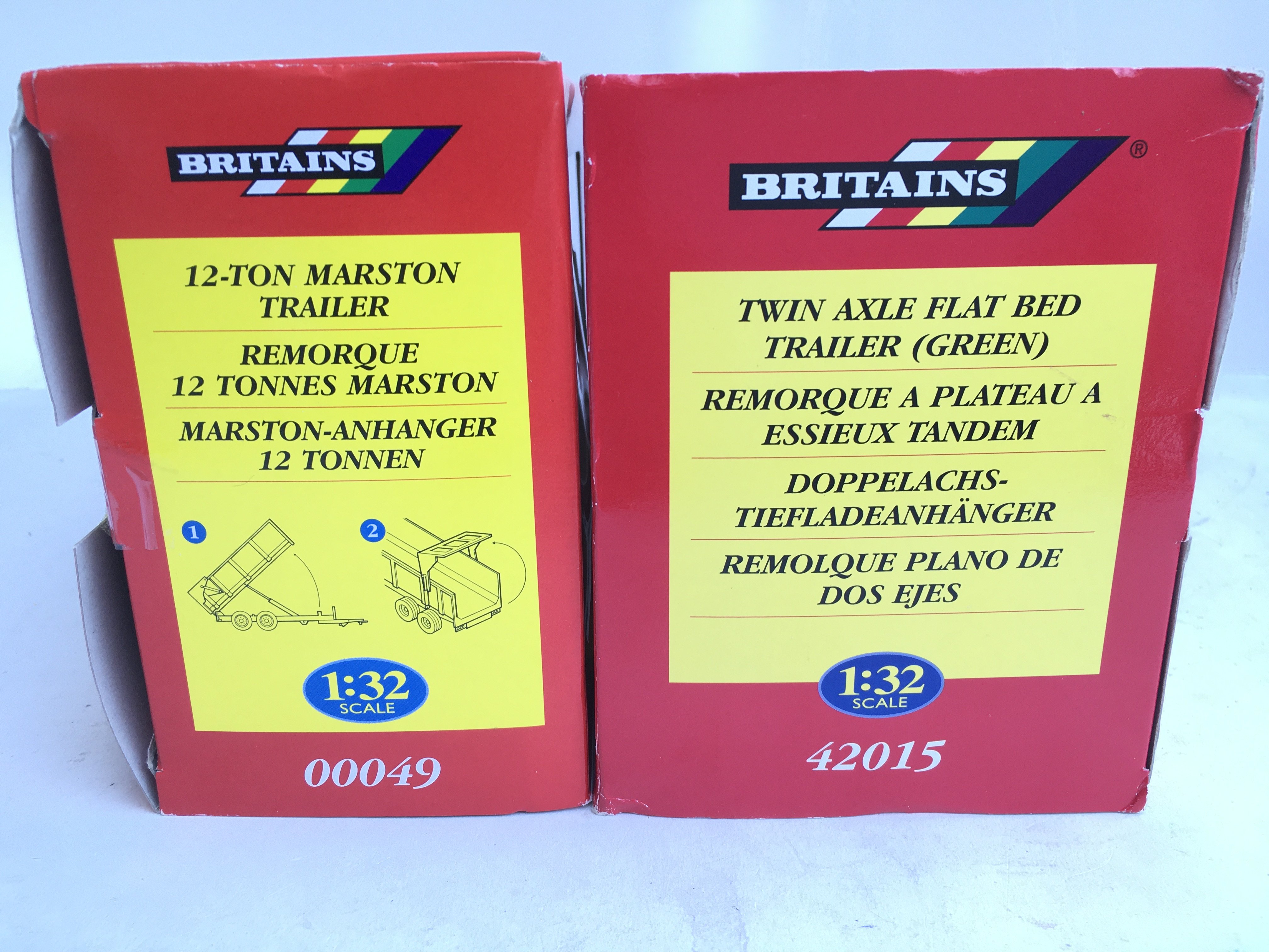 A Boxed Britains 12-Ton Marston Trailer #00049 and a Twin Axle Flat Bed Trailer #42015.
