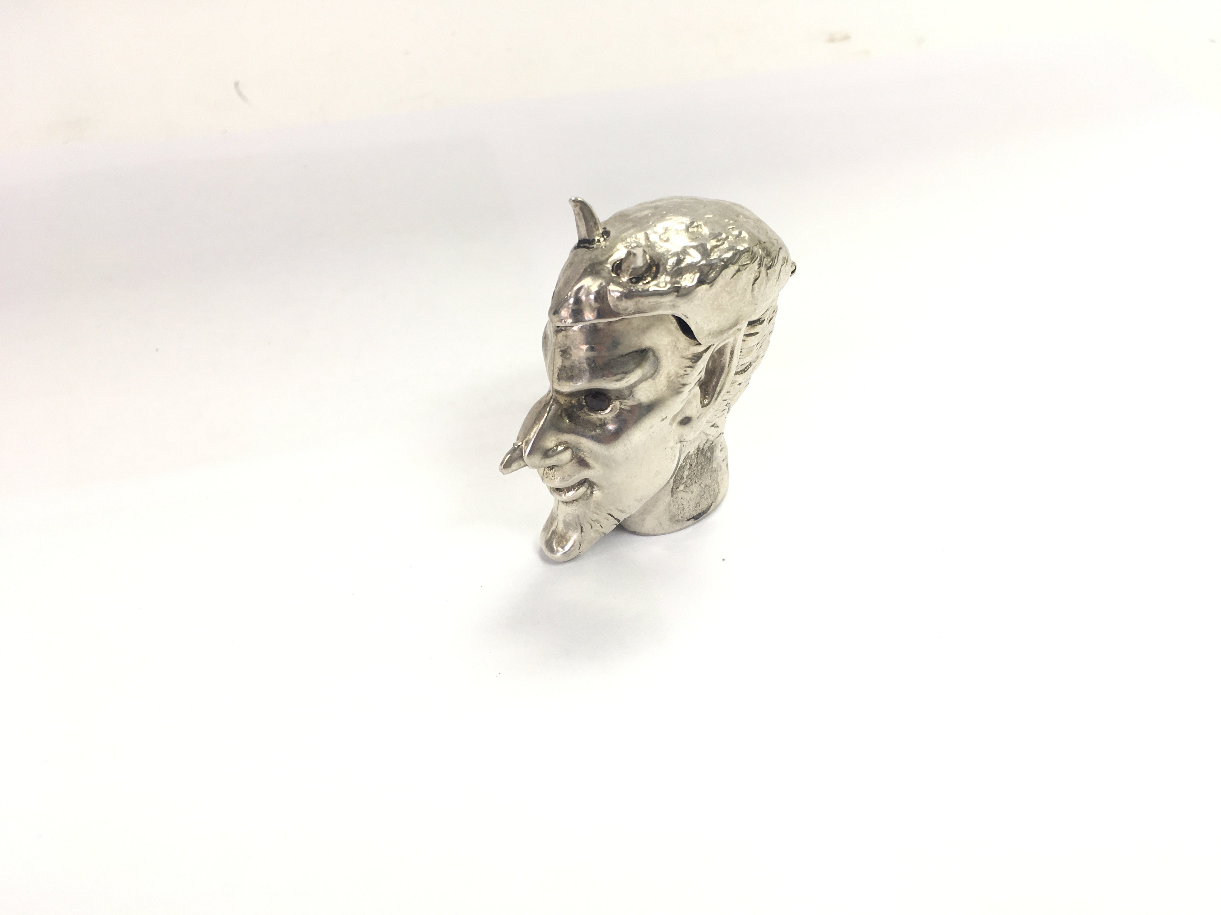A silver Vesta in the form of lucifers head. Approx 31.85 grams.