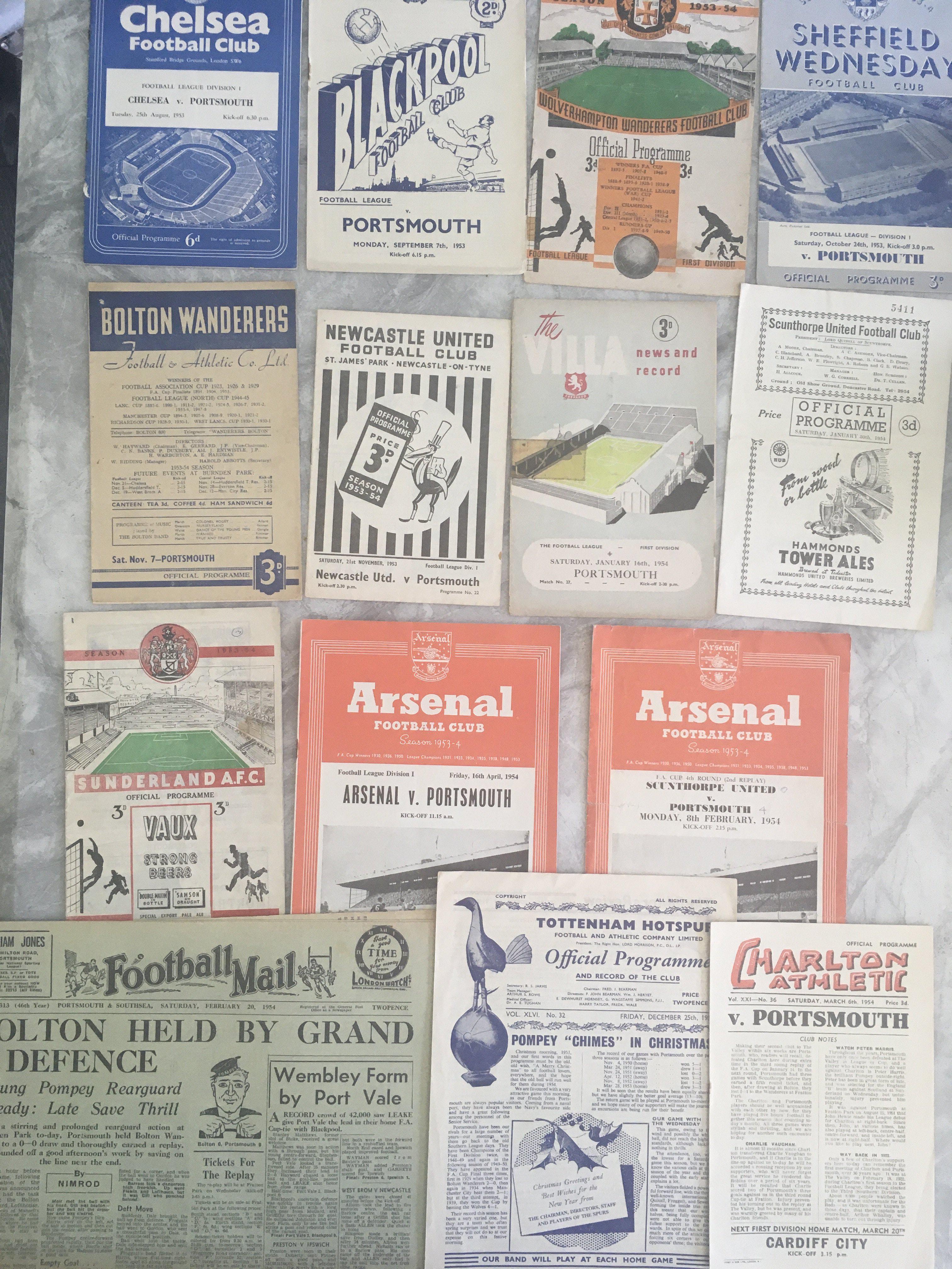 53/54 Portsmouth Away Football Programmes: Good condition ex bound private collection of aways to include Sunderland Bolton and Scunthorpe.Couple have number to cover. (13)