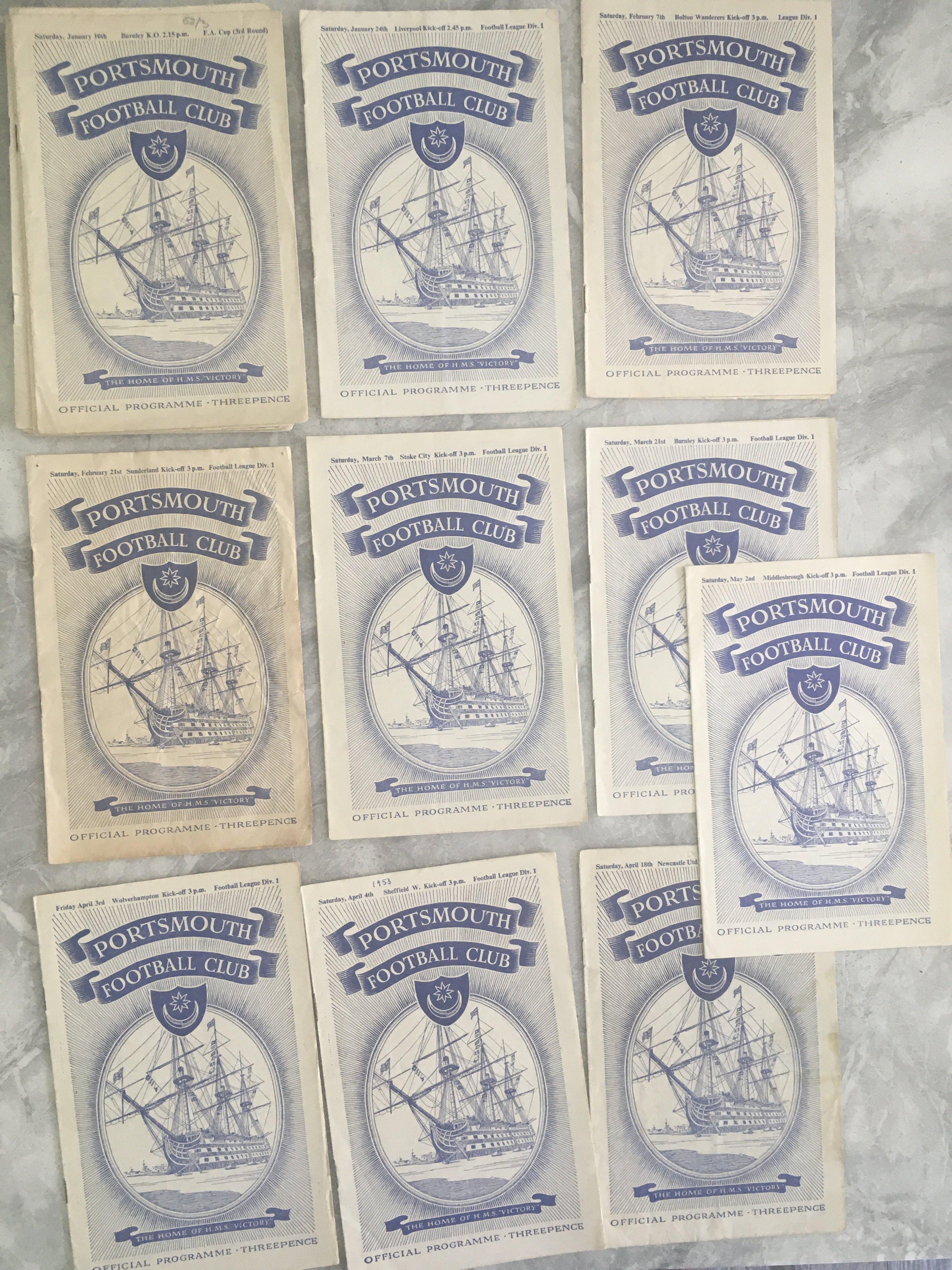 52/53 Portsmouth Complete Home Football Programmes: Good condition collection of homes to include Manchester United Chelsea Liverpool and Sunderland. Couple have number to cover. (22)