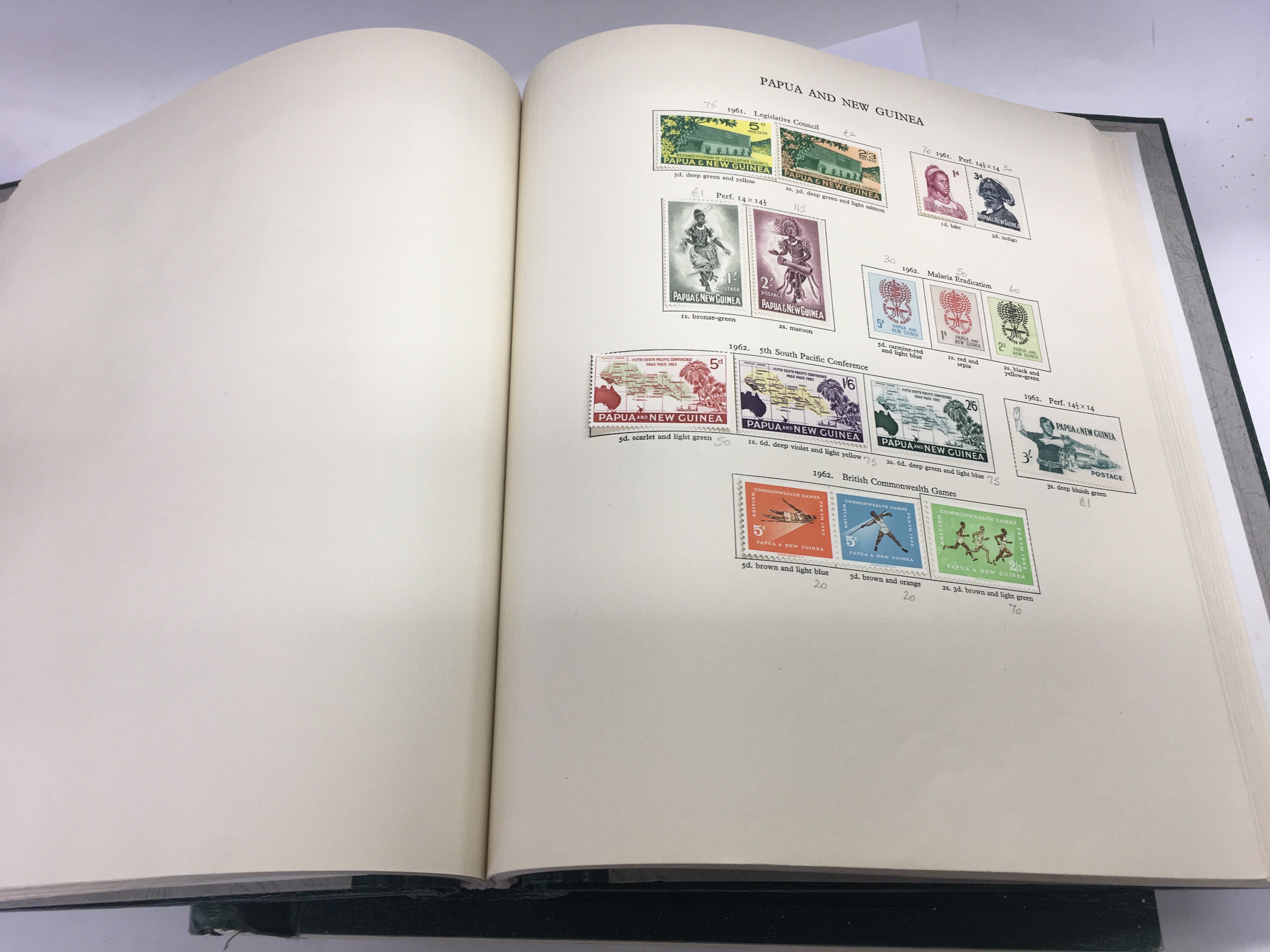 A large collection of mounted mint Queen Elizabeth commonwealth postage stamps from 1952-1962, housed in 2 new age albums.