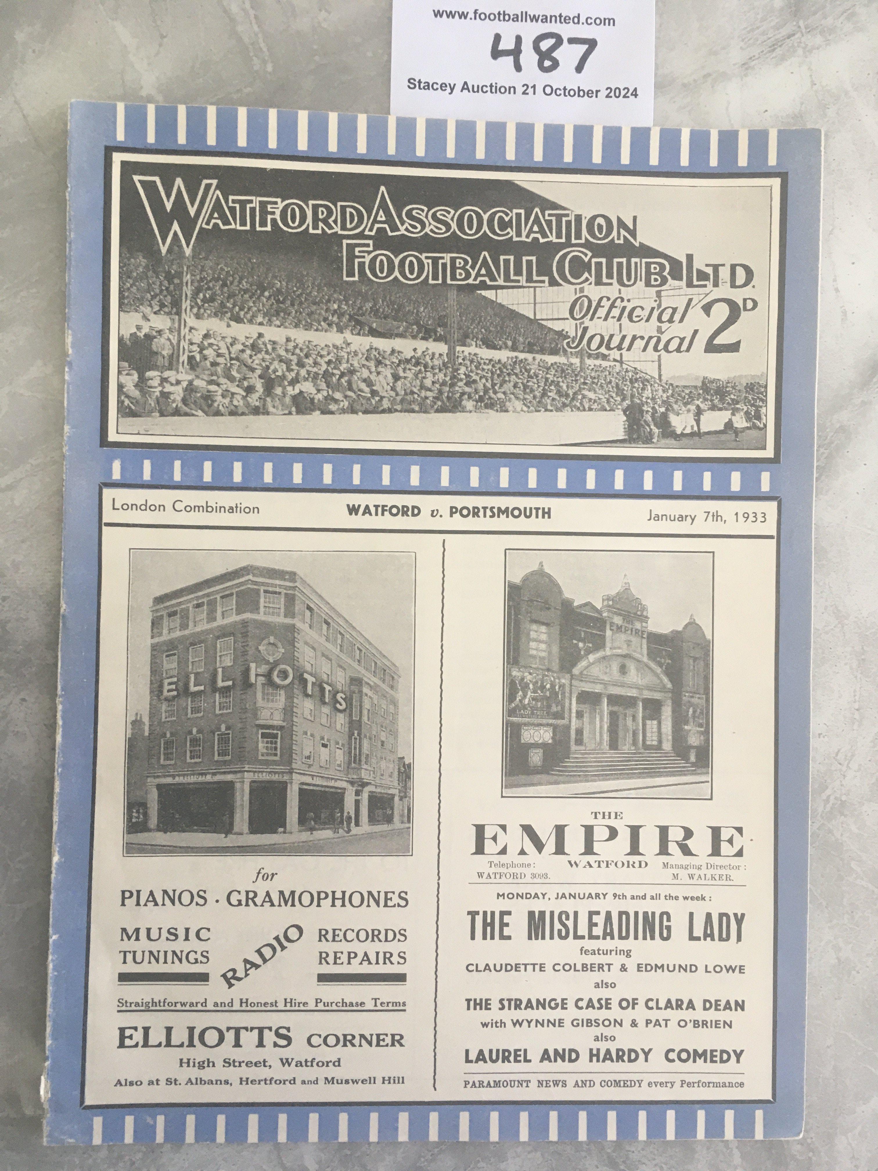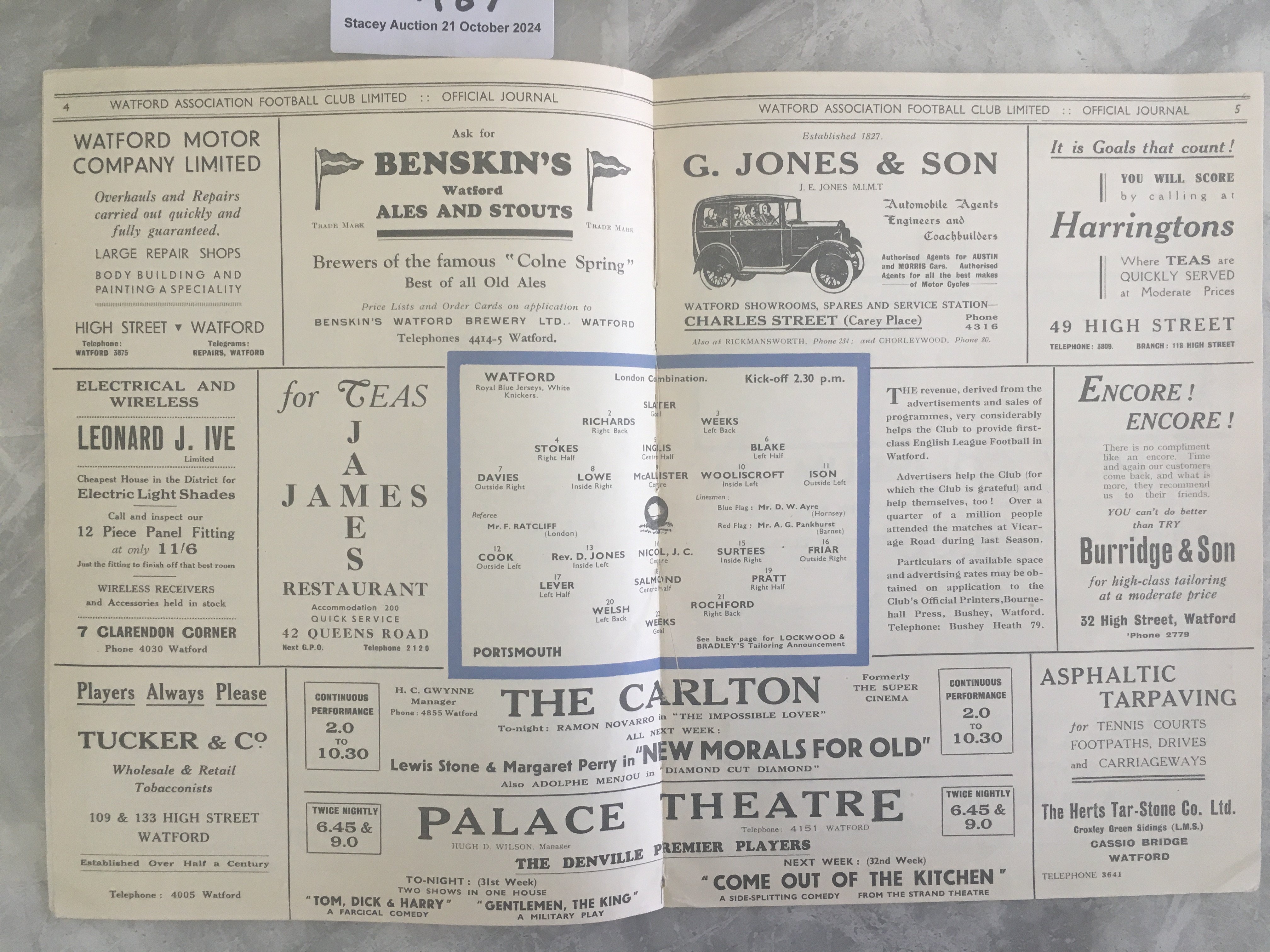 32/33 Watford Reserves v Portsmouth Football Programme: Excellent condition ex bound with covers.