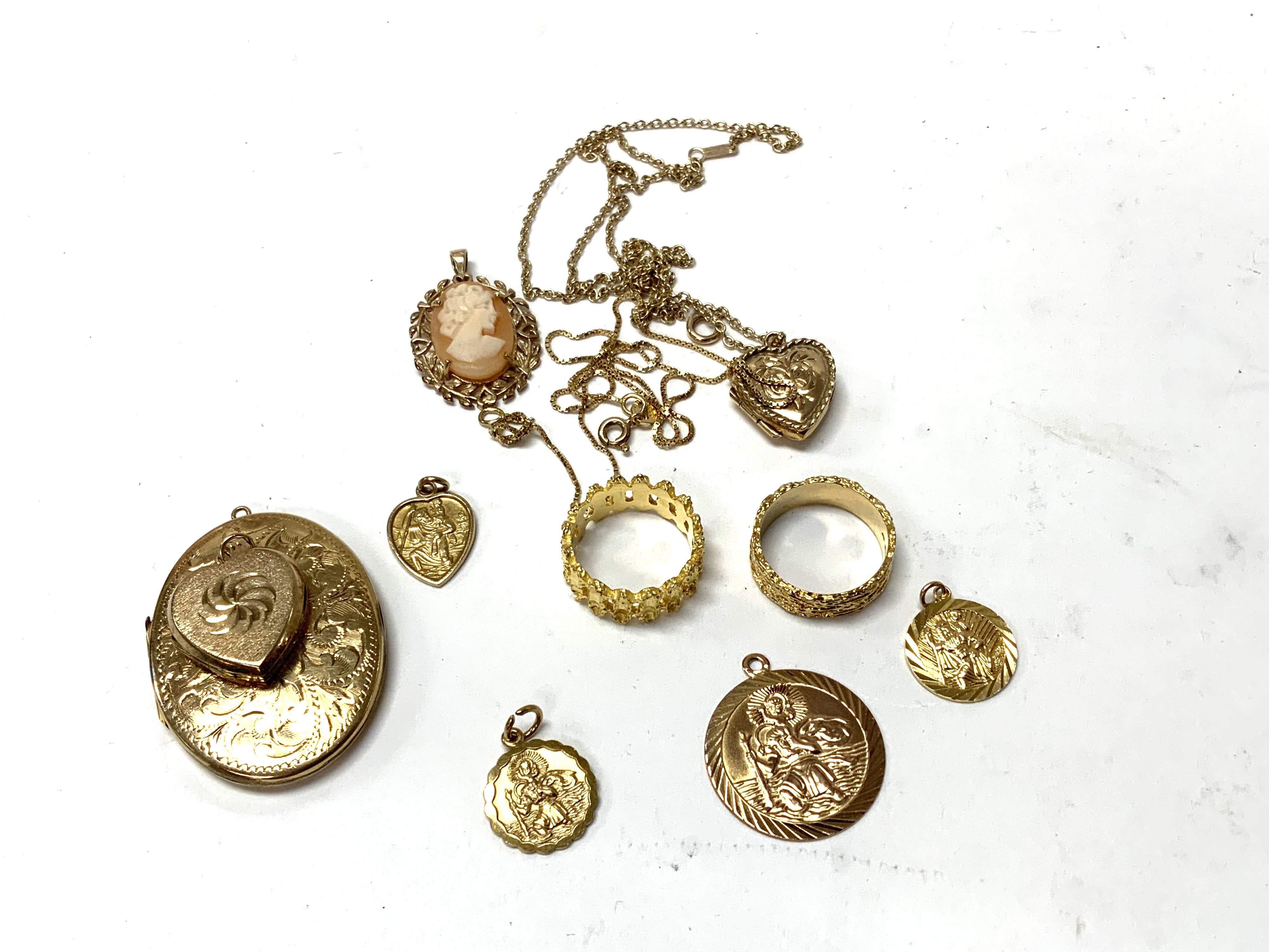 Mixed 9ct gold including 2 gold back and front lockets (gold weight 30) . Postage category A.