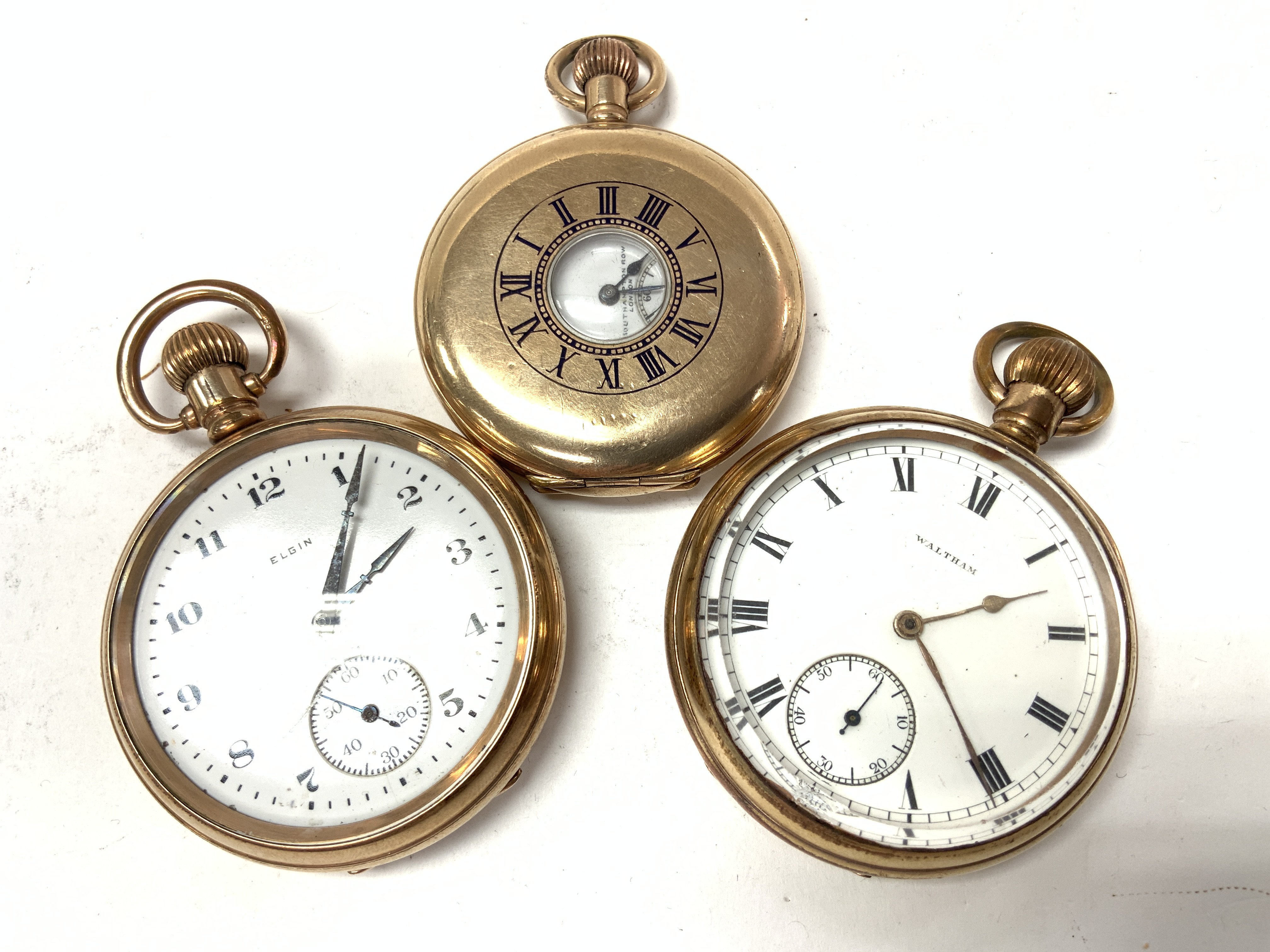 3 gold plated pocket watches including half hunter example. Postage category A.
