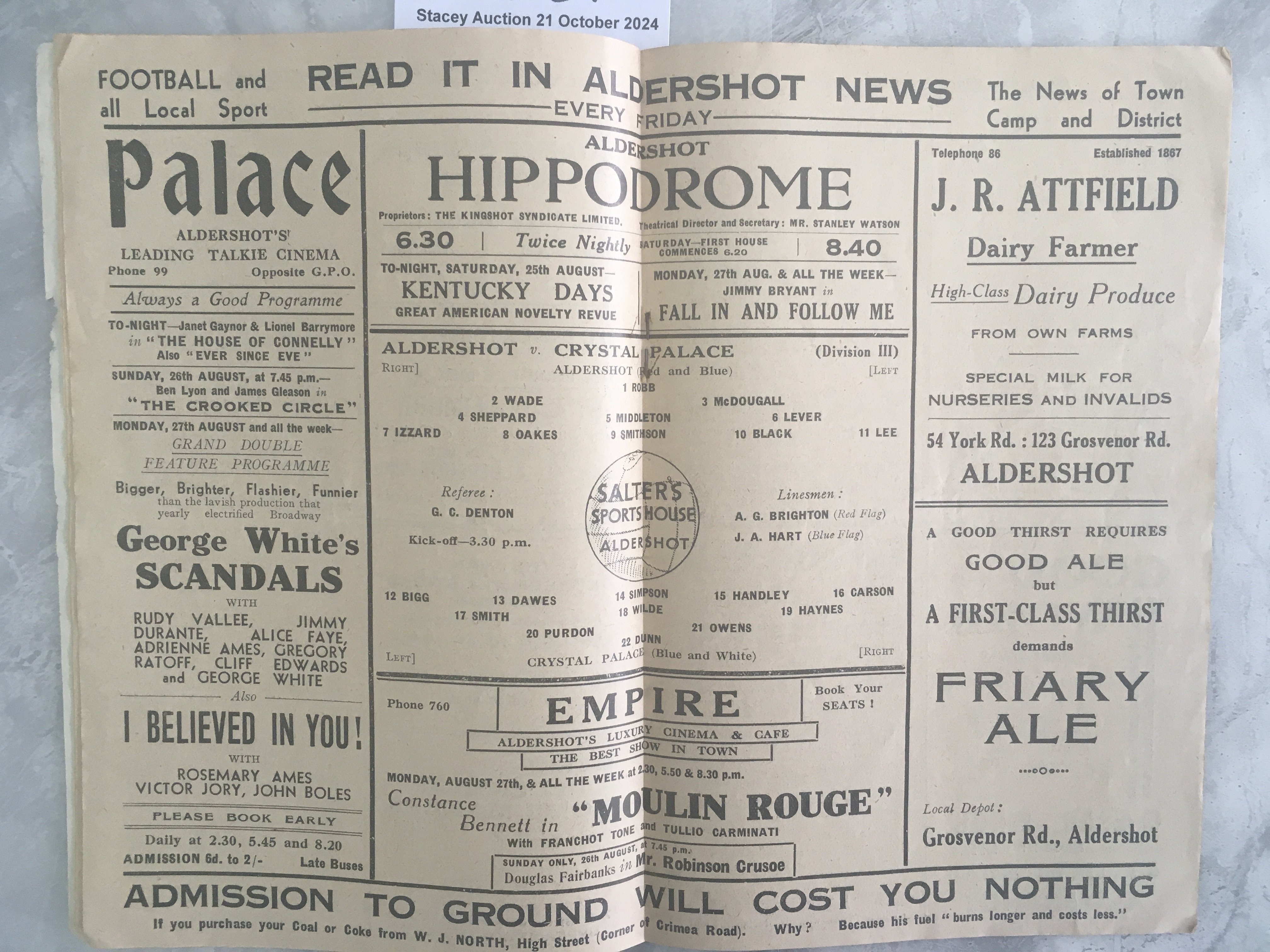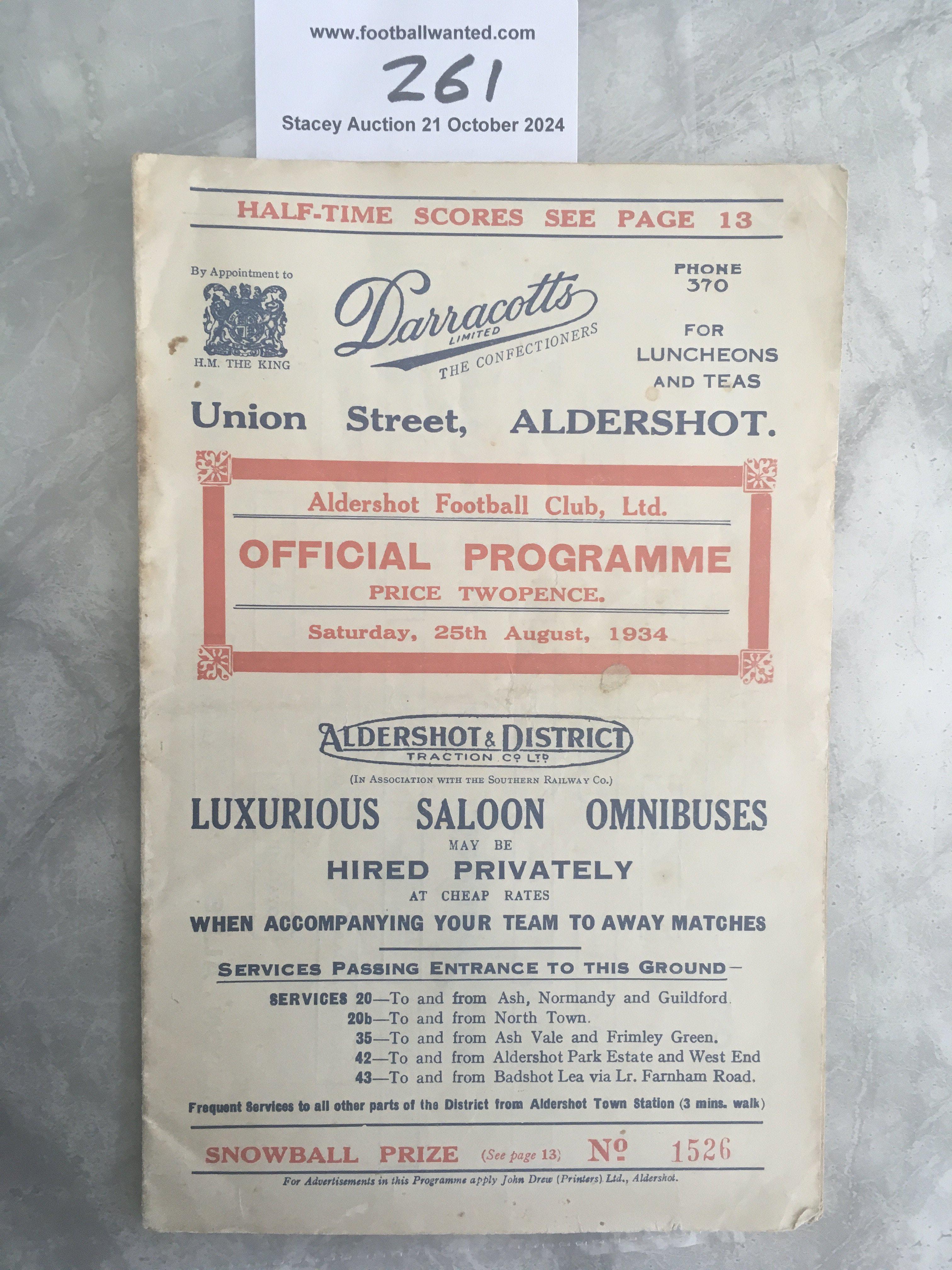 34/35 Aldershot v Crystal Palace Football Programme: Good condition division 3 south match with no team changes.