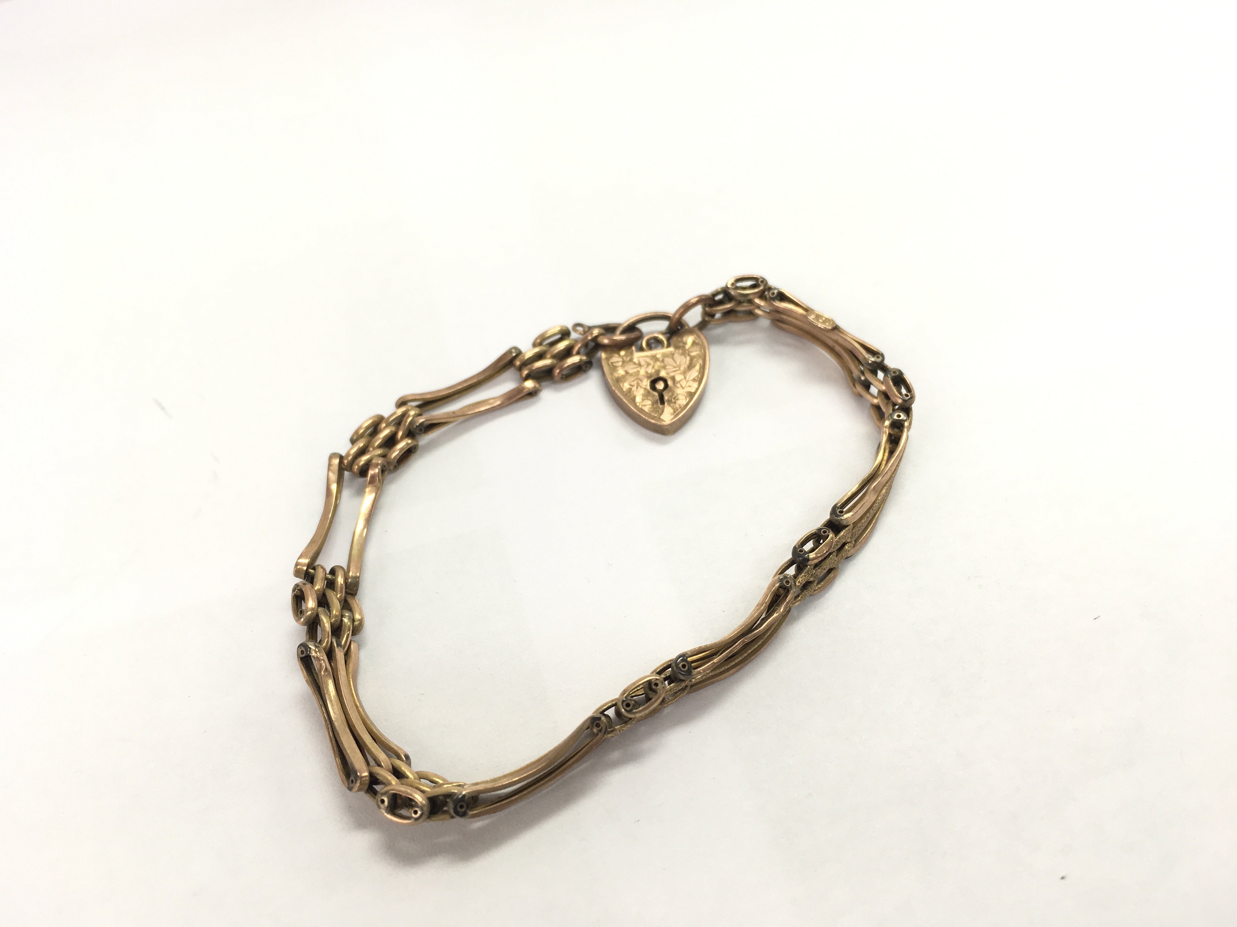 A 9ct gold gate bracelet with a heart clasp, Approx weight 4.80 grams.