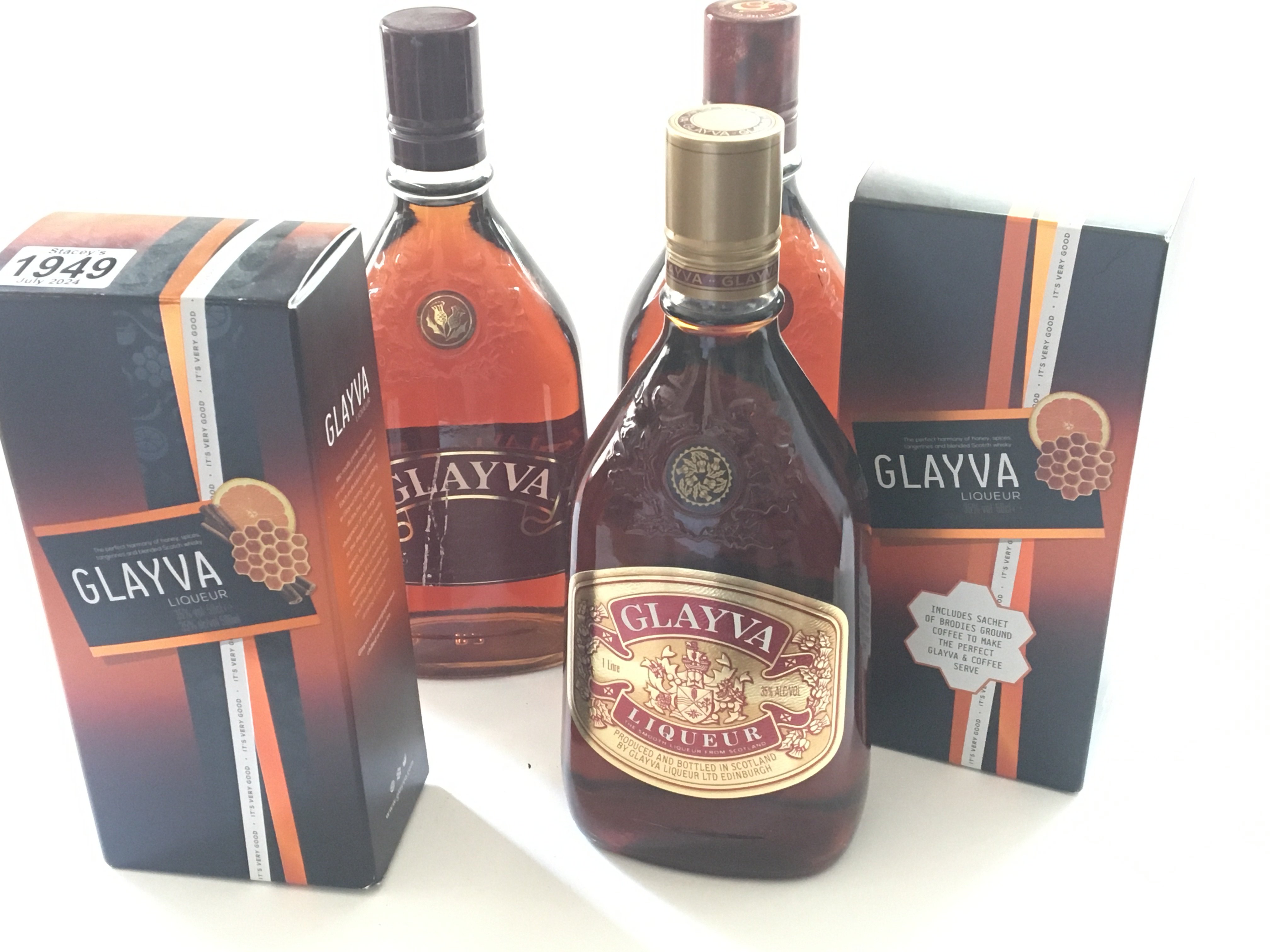 Five bottles of Glayva Scottish whisky Liquor two boxed 500ml bottles a d three one litre boxes. (5)