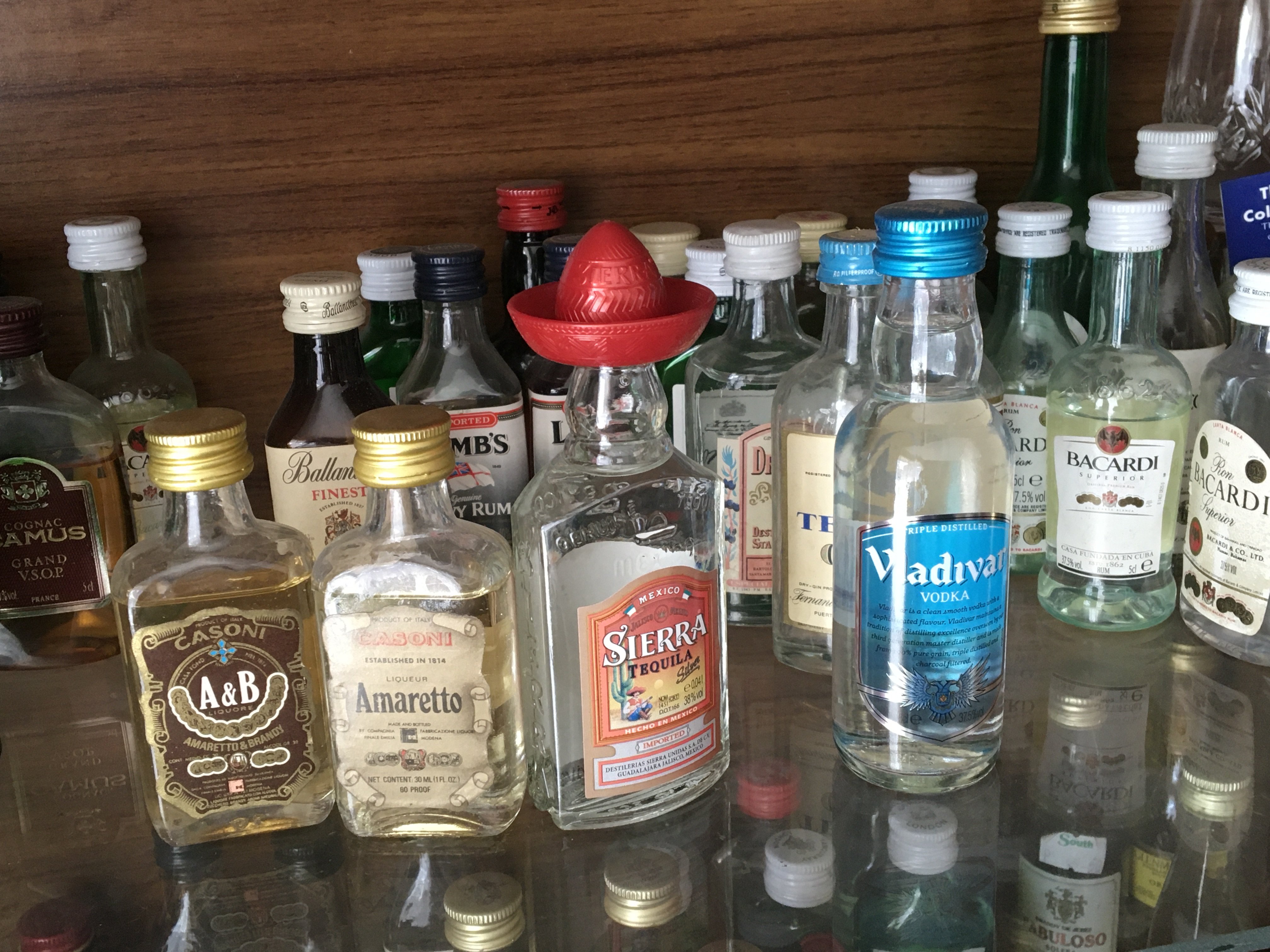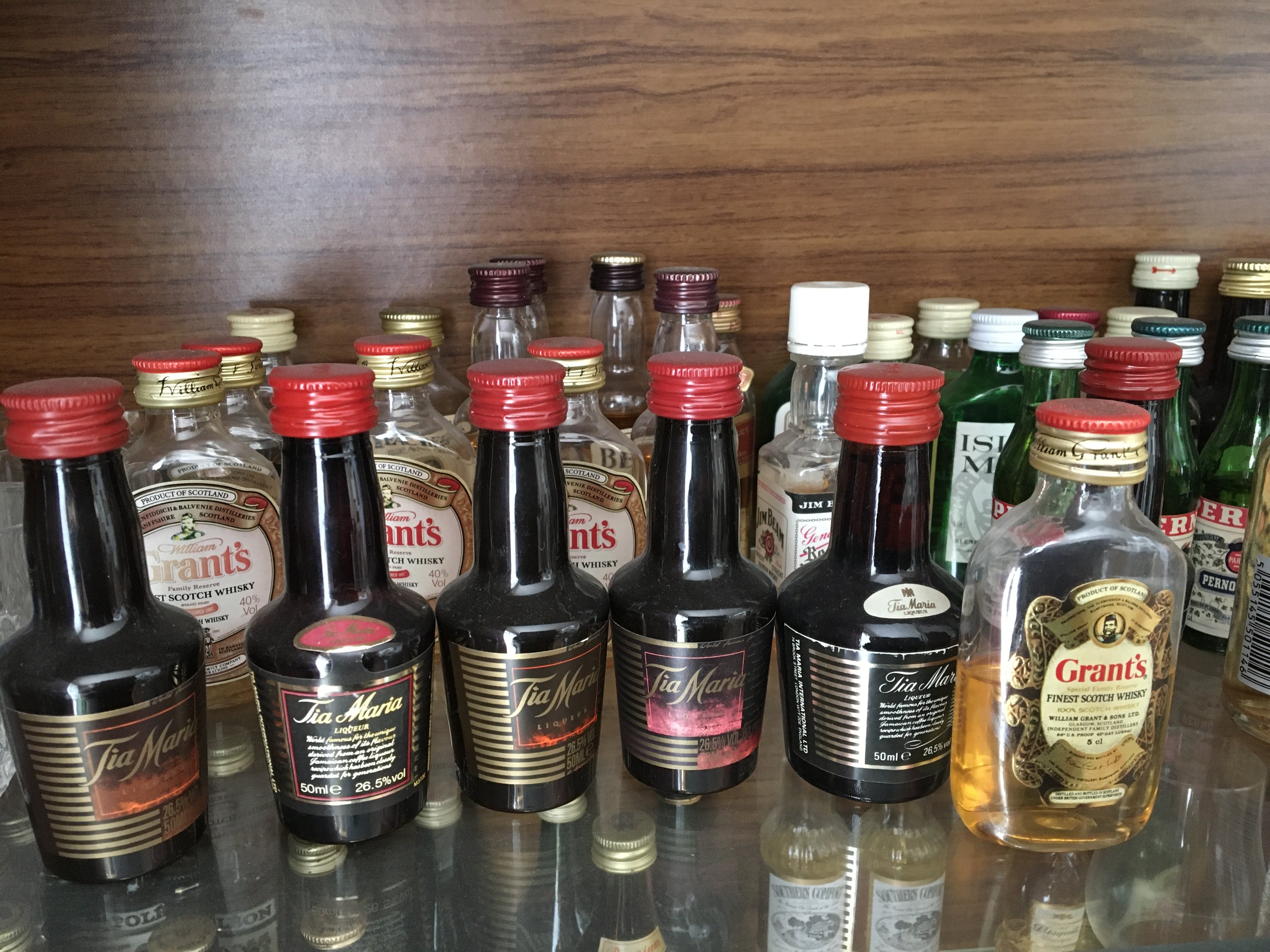 A collection of miniature spirits including some whisky Brandy and many others. Some lower levels
