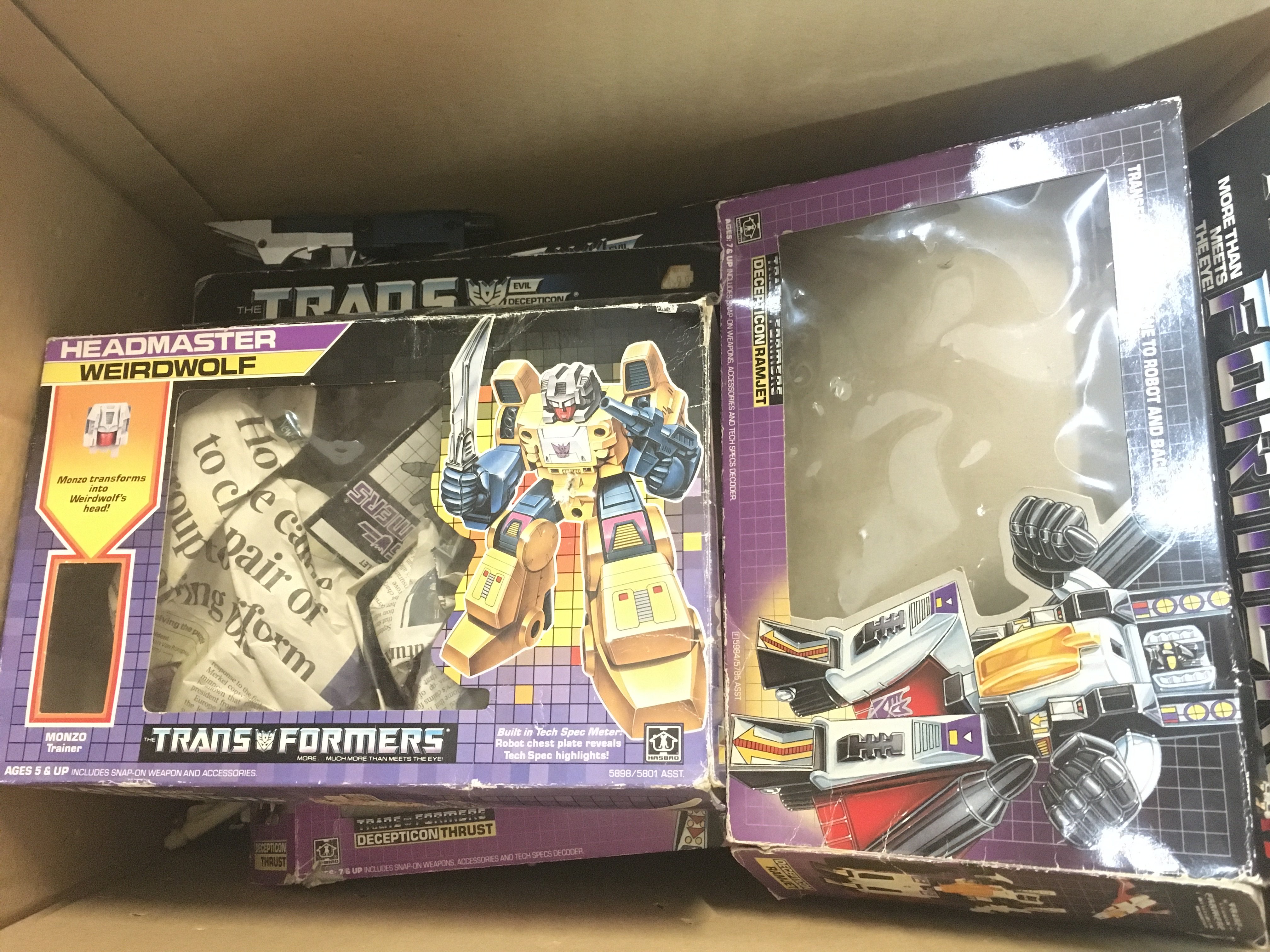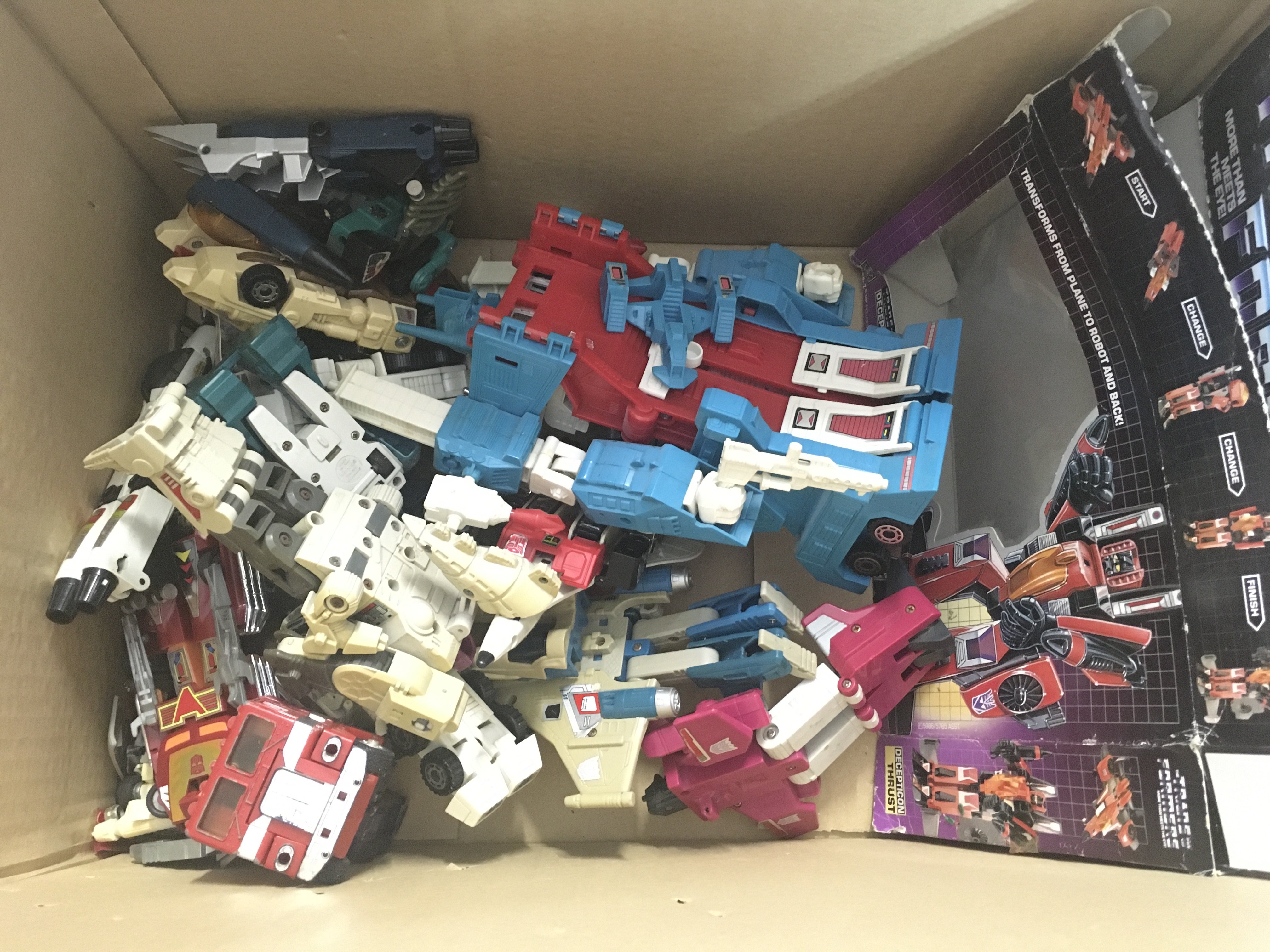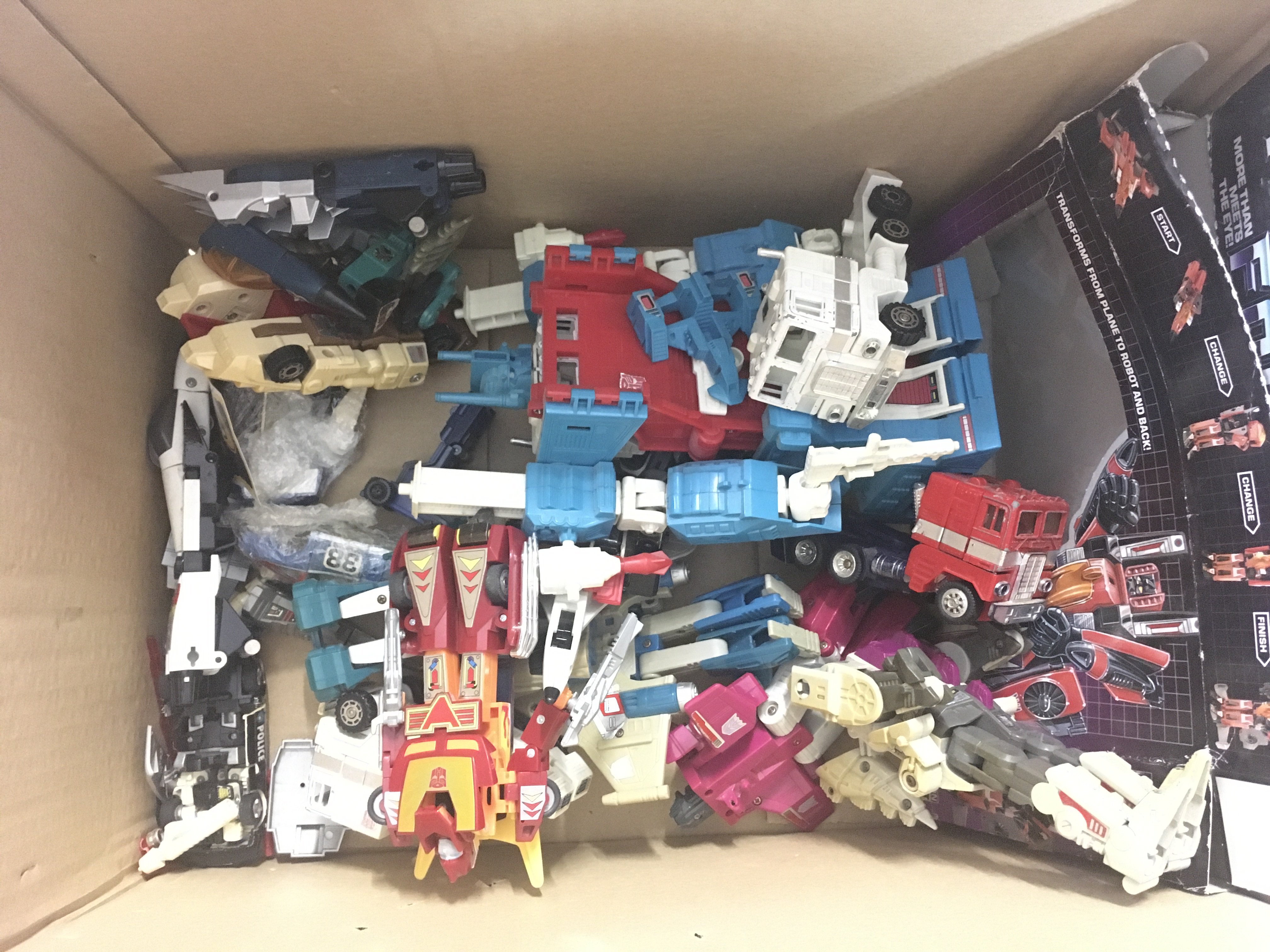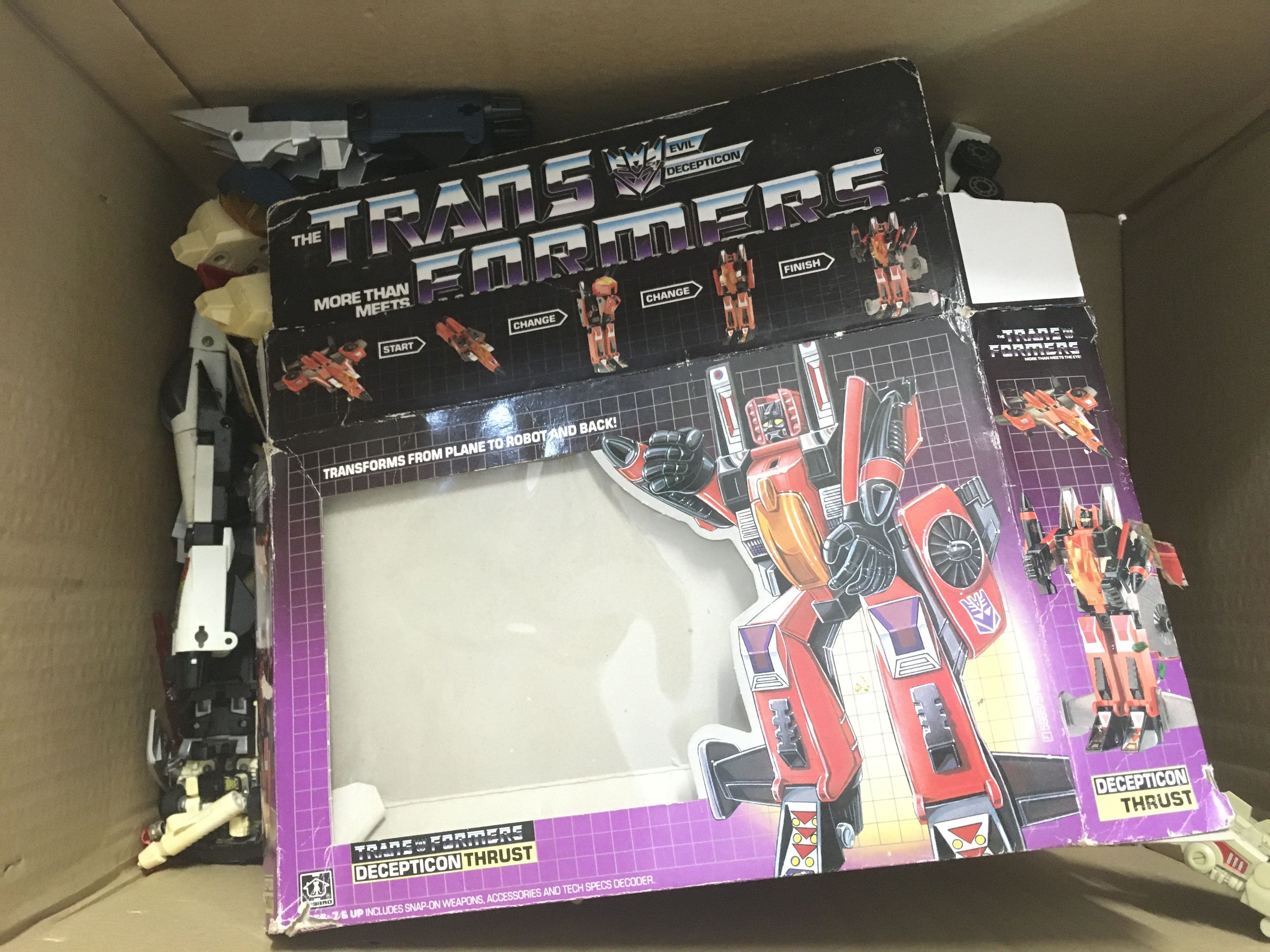 A Box Containing G1 Transformers and Empty Boxes.