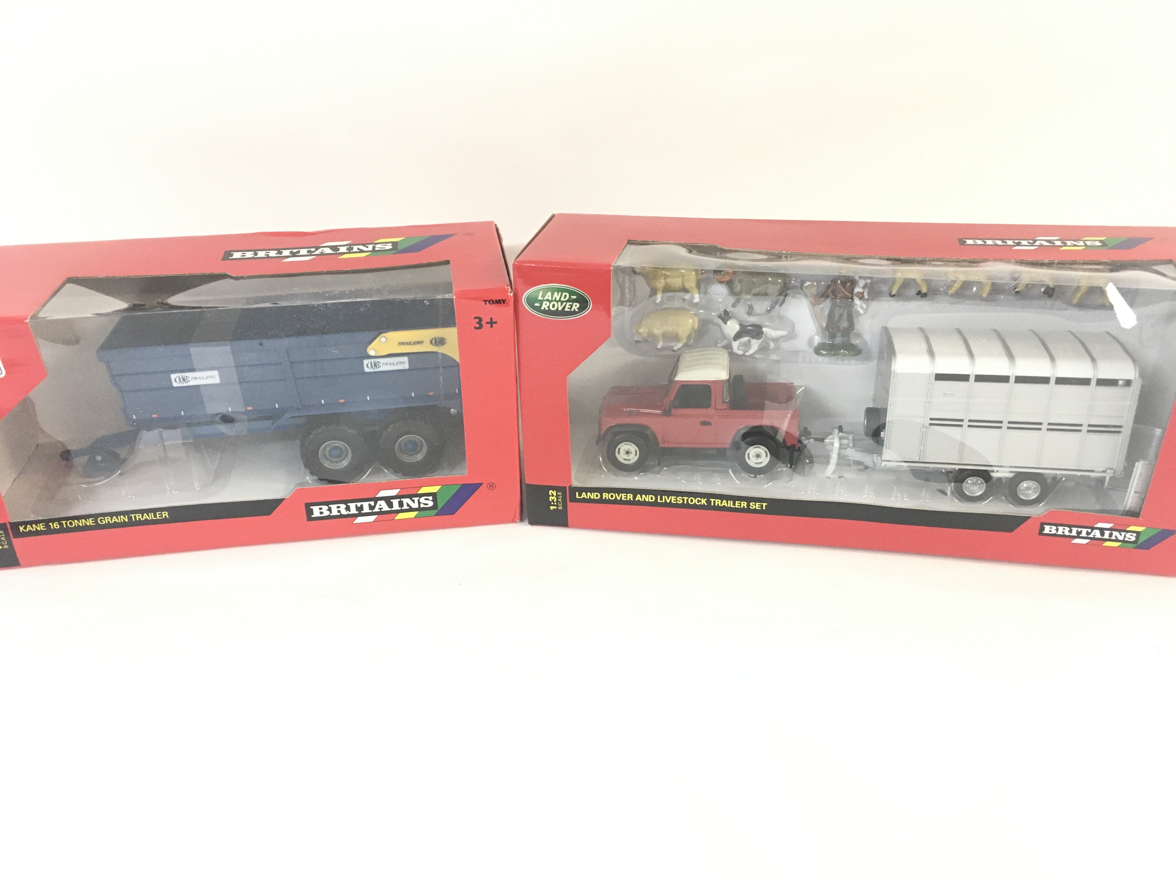 A Boxed Britains Kane 16 Tonne Grain Trailer #42701. And A Land Rover And Livestock Trailer Set #43138A1.