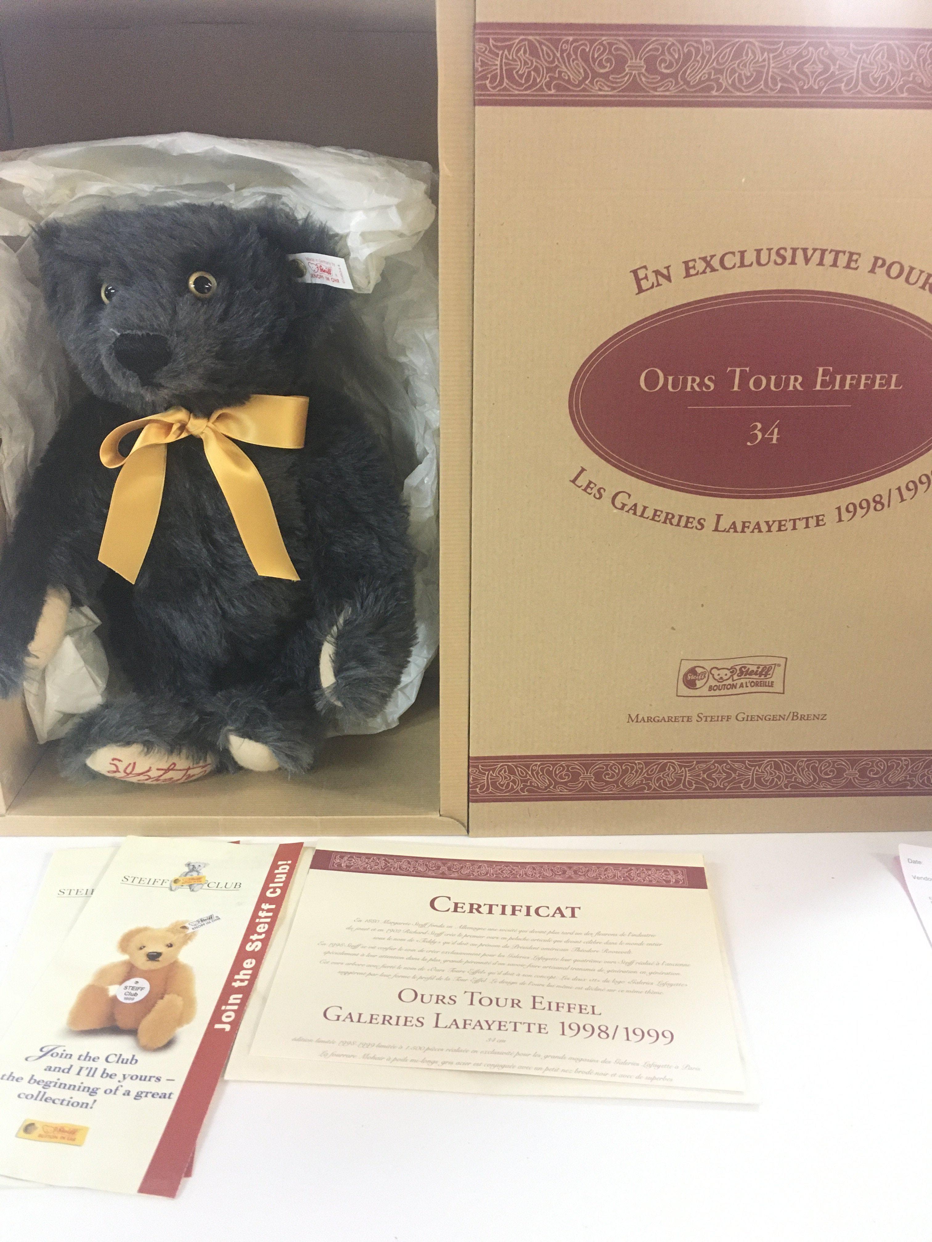 WITHDRAWN - A Boxed Steiff Eiffel Tower Teddy Bear 198/1999 limited Edition.