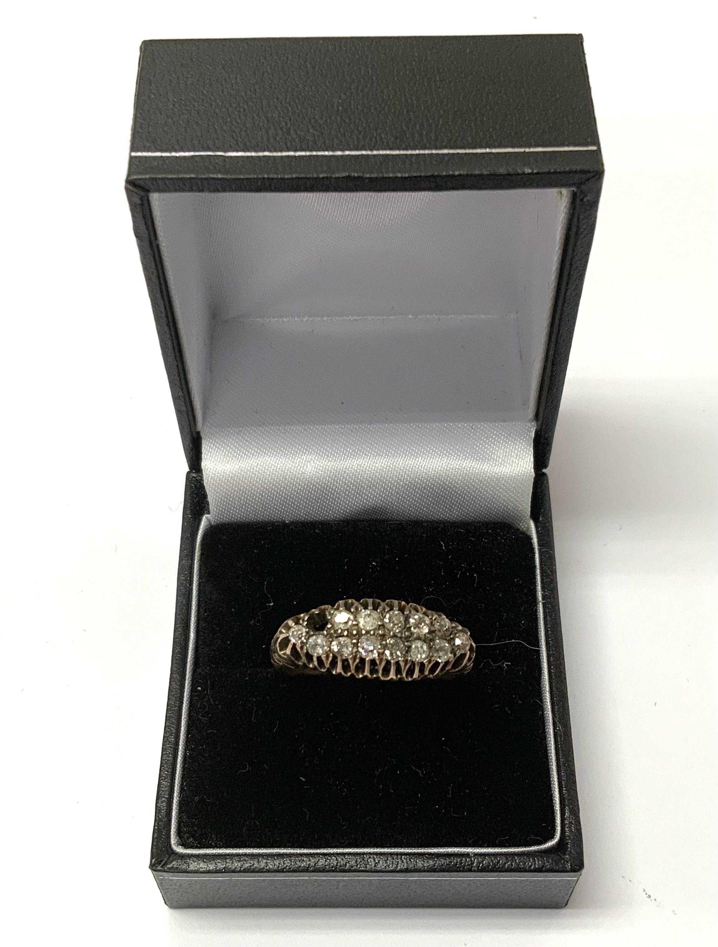 A 9ct gold ring set with multiple diamonds approx. 0.40ct. (Size S), 1 stone missing (A)