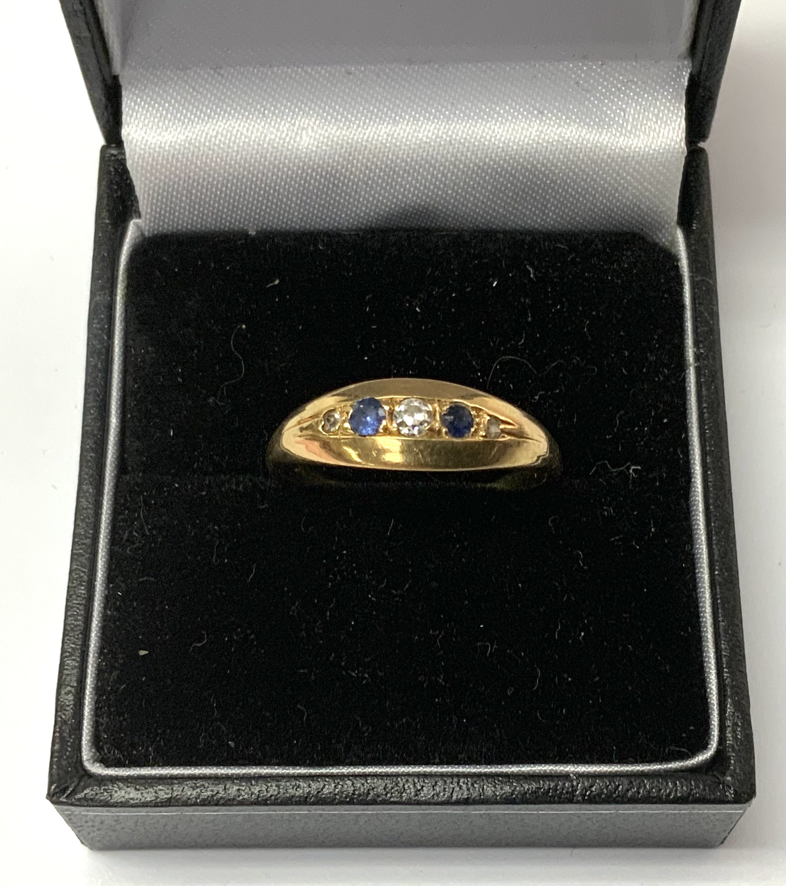 18ct sapphire and diamond ring, Size P. (A)